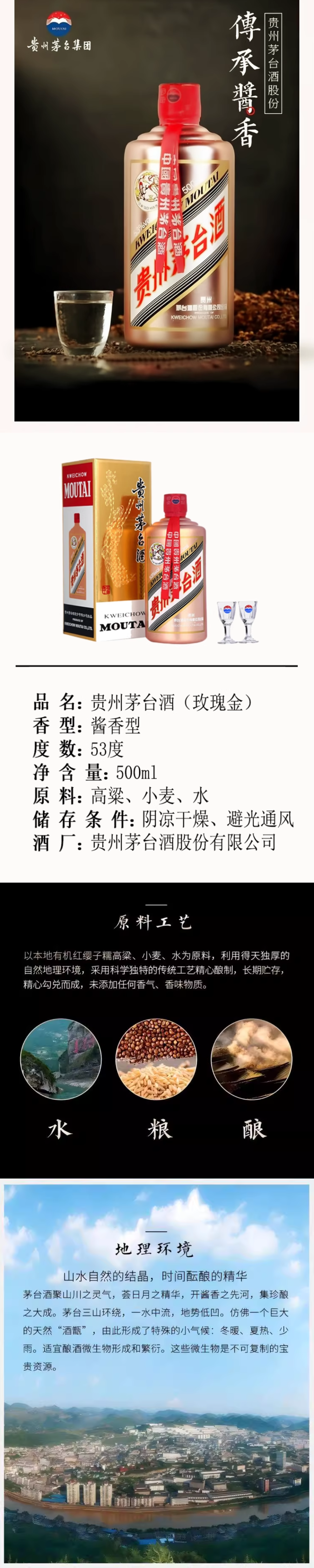 贵州 53度500ml 飞天茅台玫瑰金 酱香型