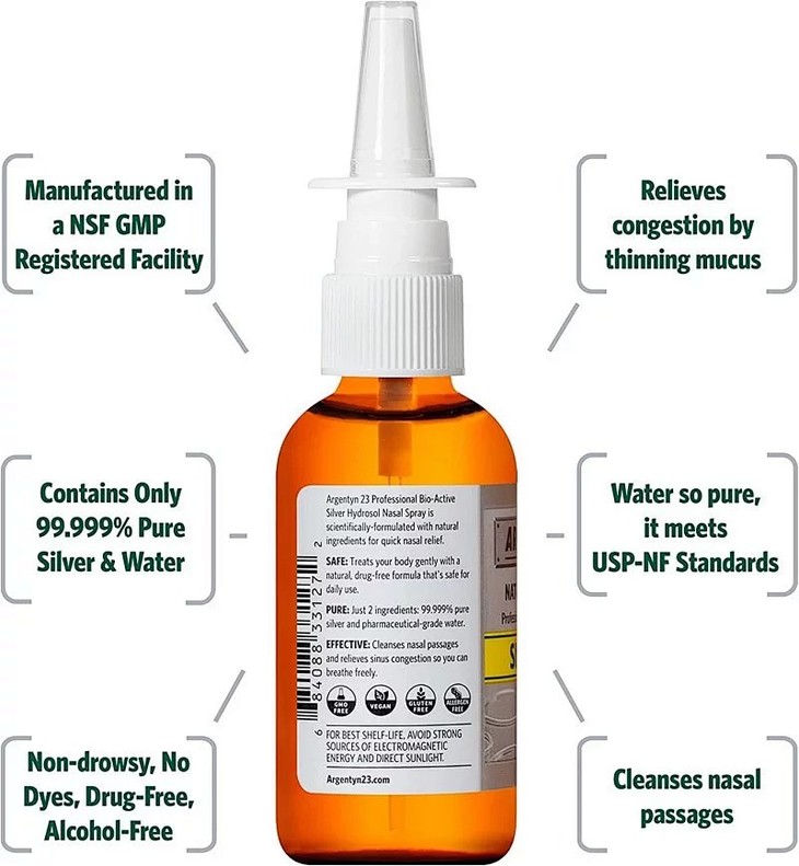 Sinus Relief 胶体纳米银喷剂使用“溶胶”是永久分布在水结构中的矿物的名称。