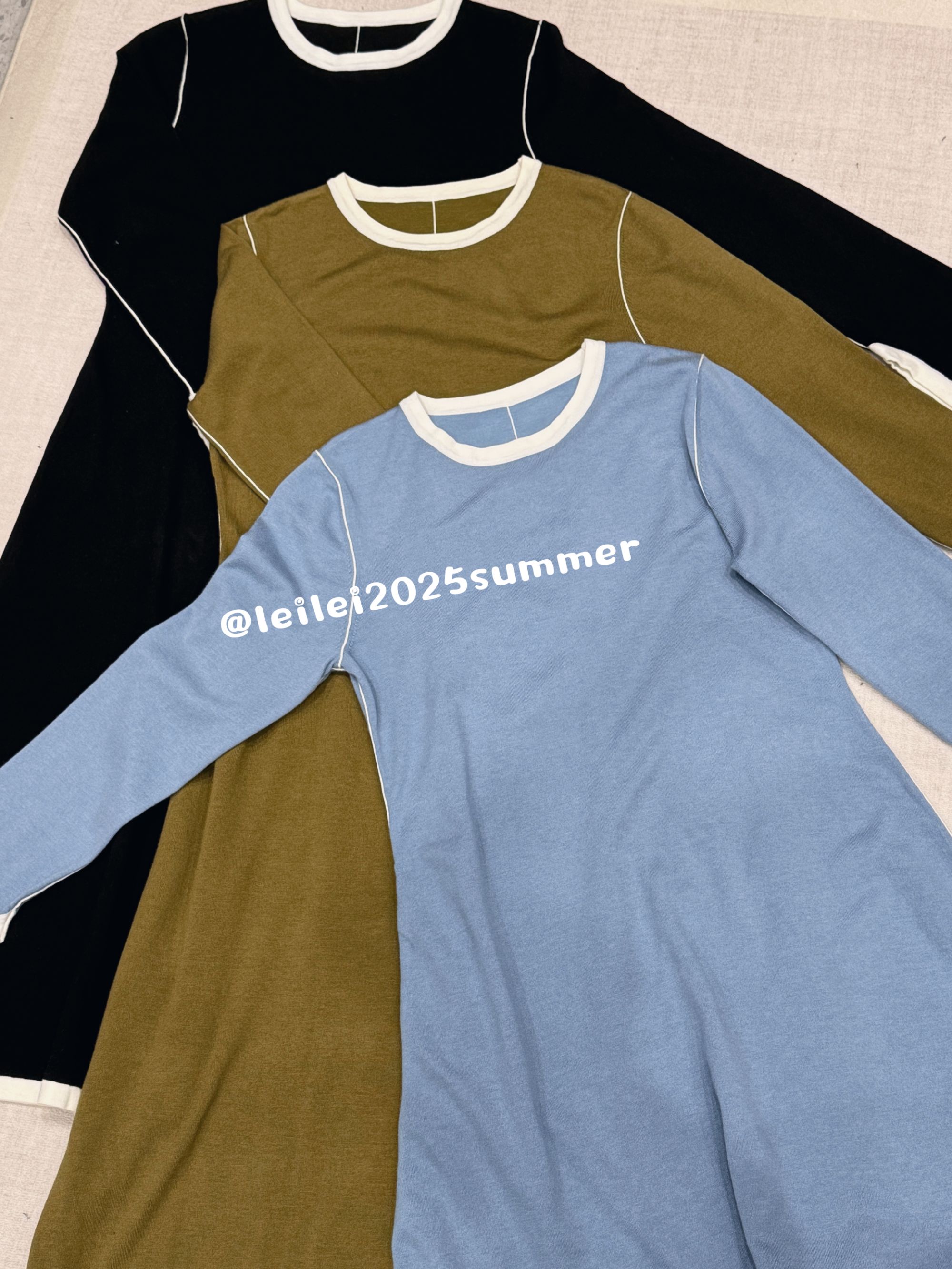 晶咕 简约圆领撞色显瘦宽松长袖针织连衣裙