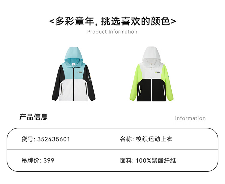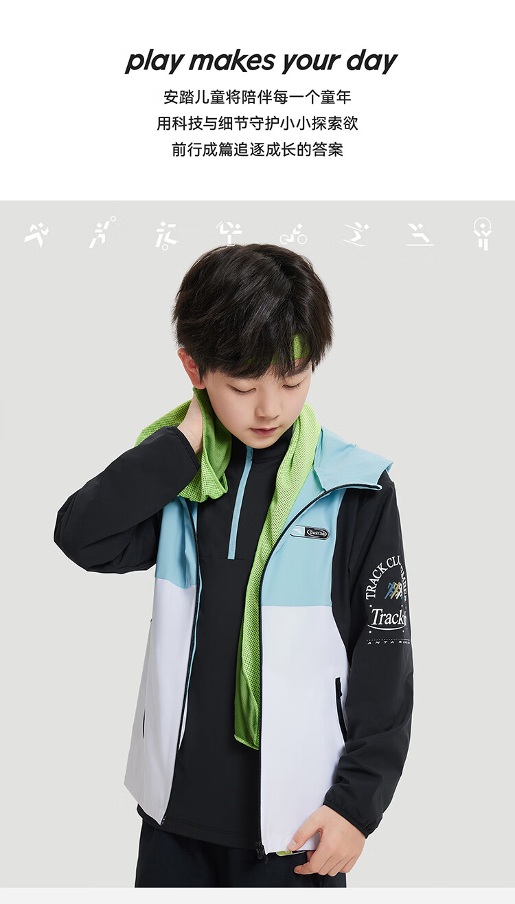 安踏儿童外套男大童跑步系列梭织运动上衣352435601