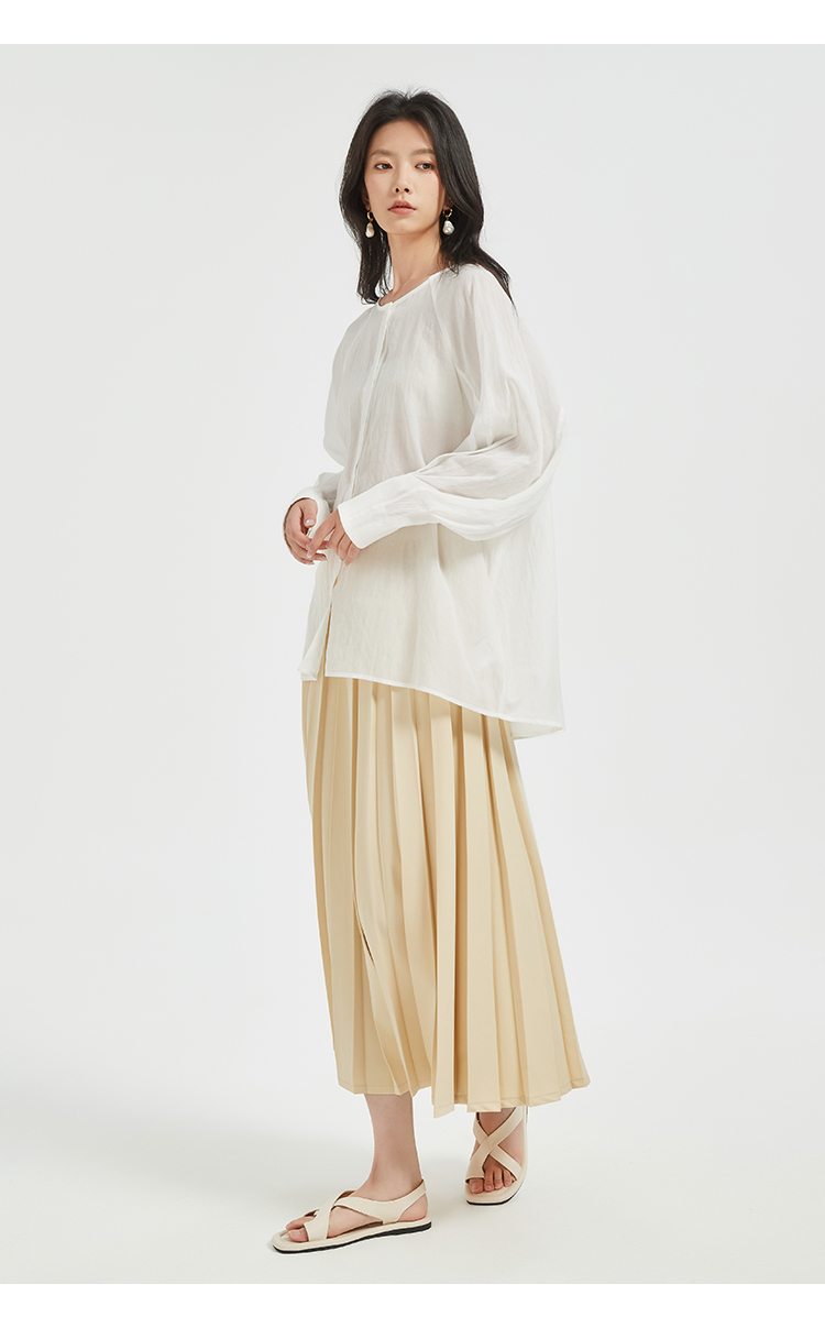 273049905打褶立领桑蚕丝上衣