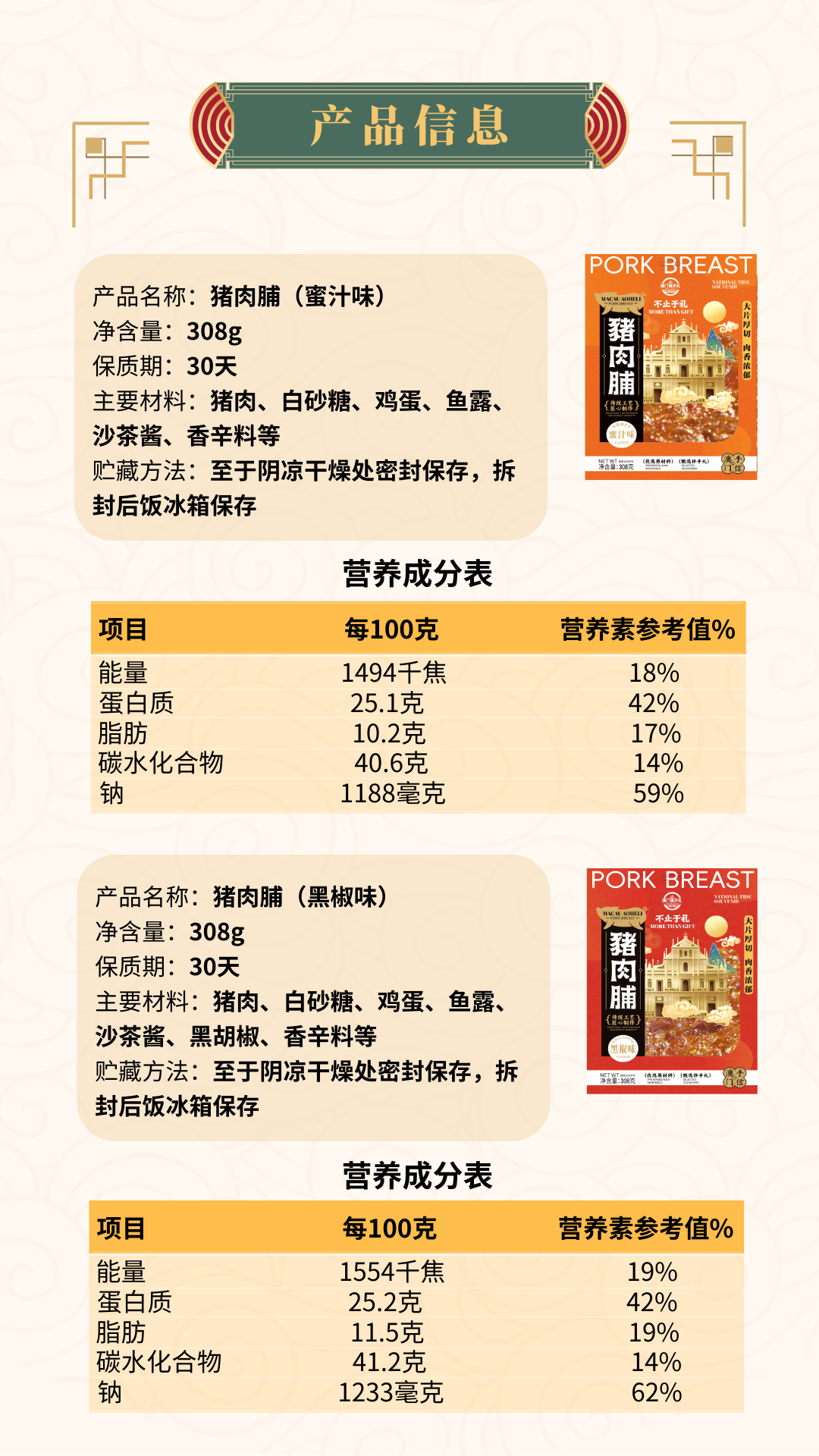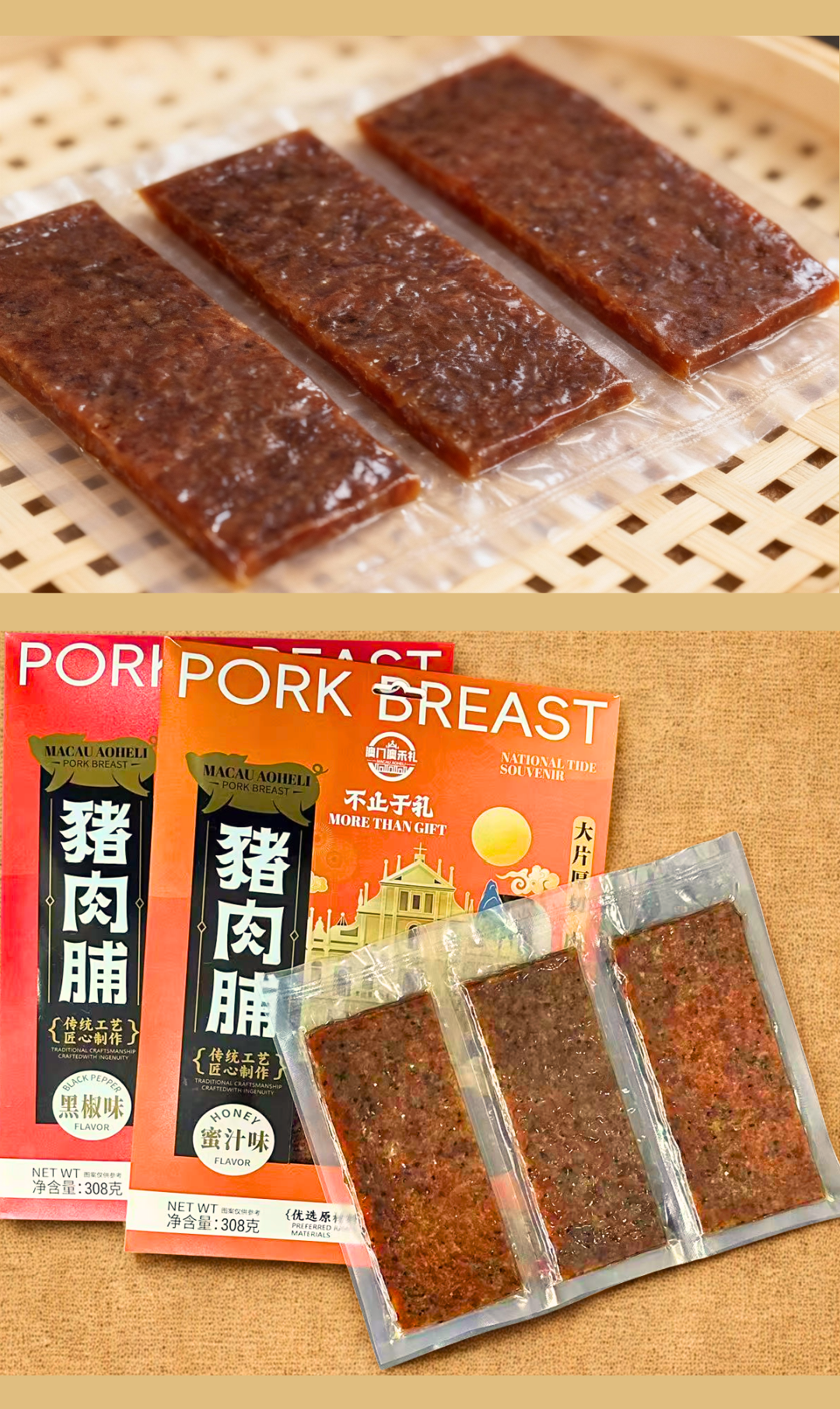 【澳禾礼】澳门六六大顺礼包【厚切猪肉脯308g蜜汁味+厚切猪肉脯308g黑椒味+鸡仔饼210g+巴旦木可可脆130g+杏仁饼280g+花生太妃糖180g】传统糕点点心零食下午茶节日送礼大礼包澳门手信