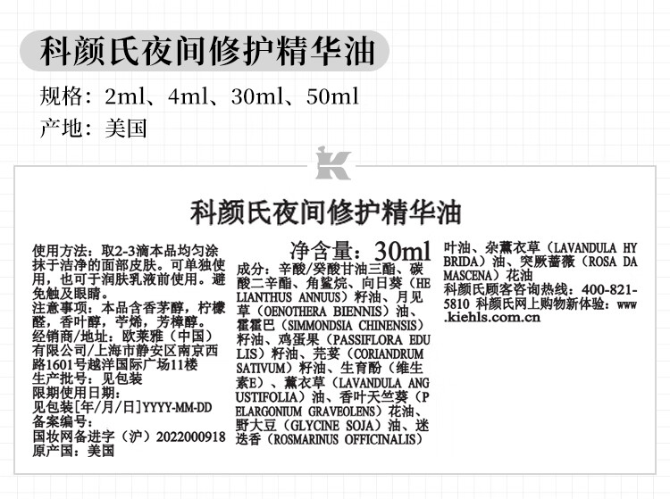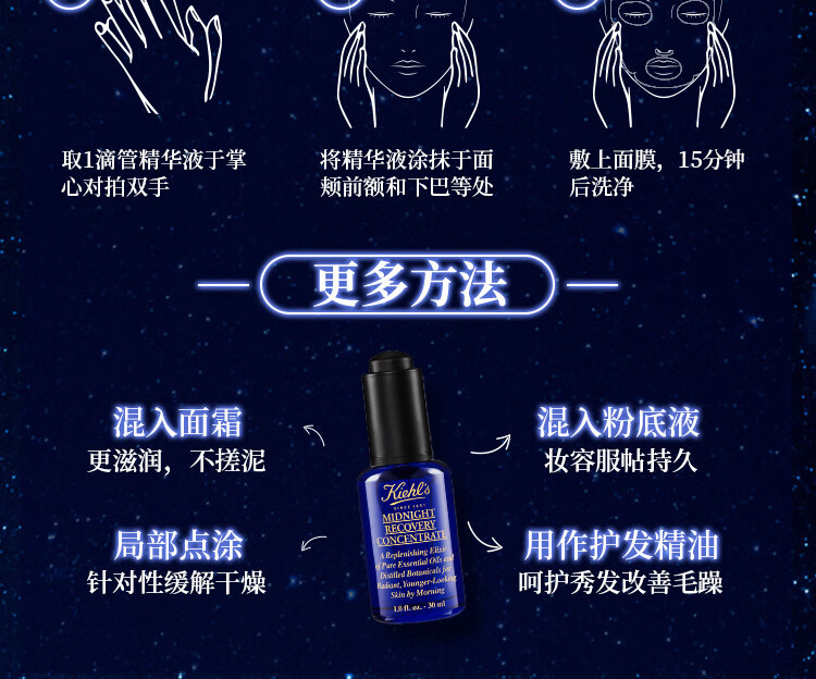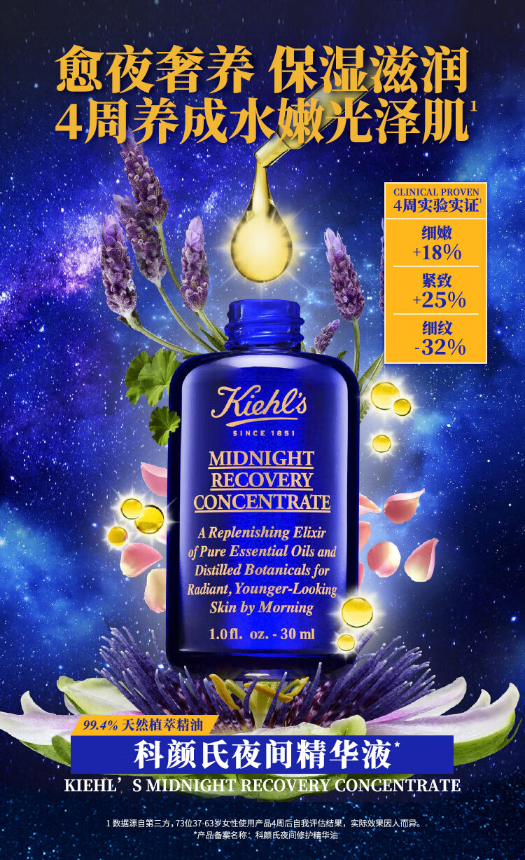 科颜氏(Kiehl's)夜间修护精华液30ml 熬夜救星保湿修护护肤品生日礼物女送爱人 心选到家