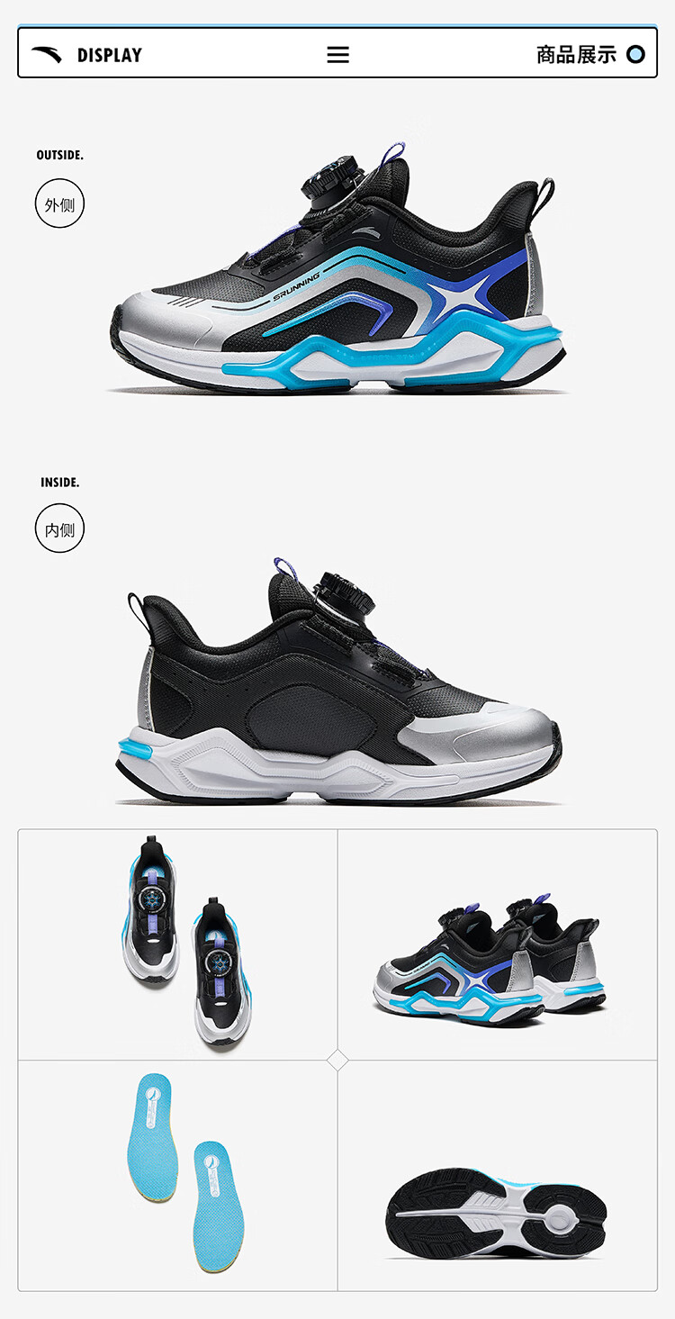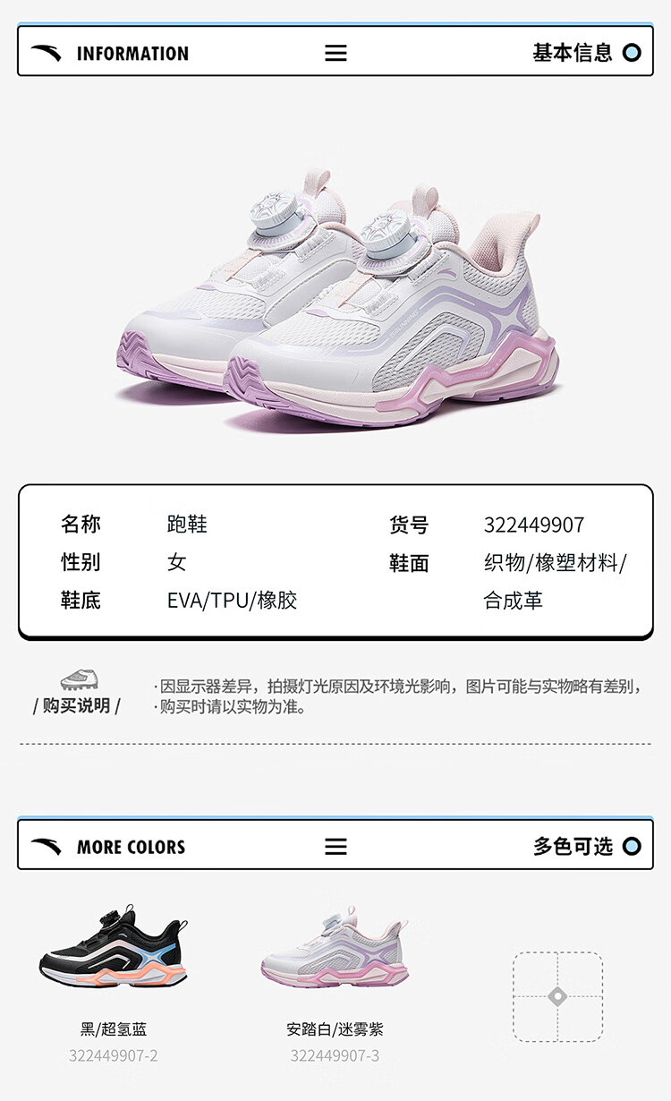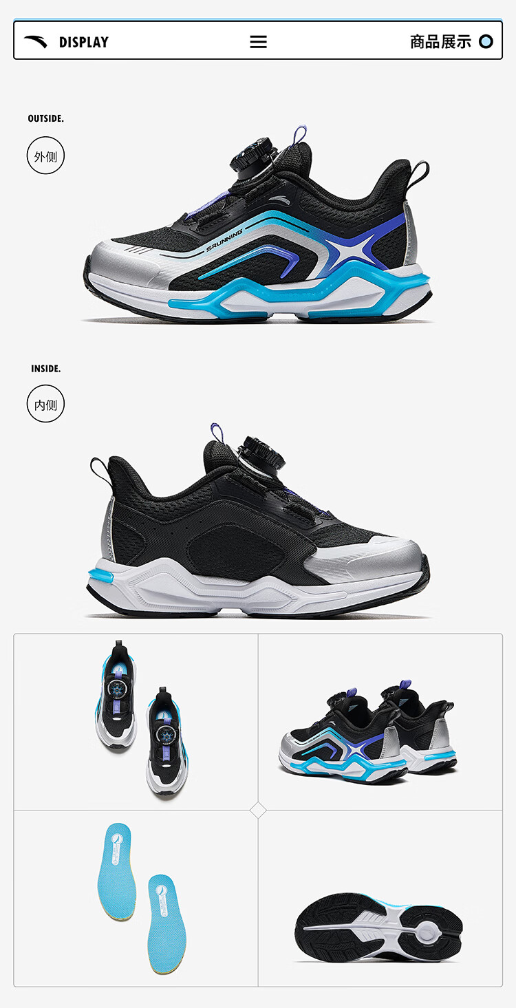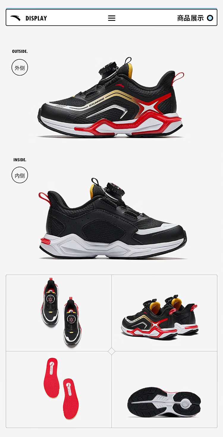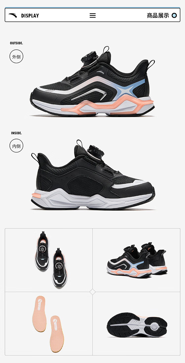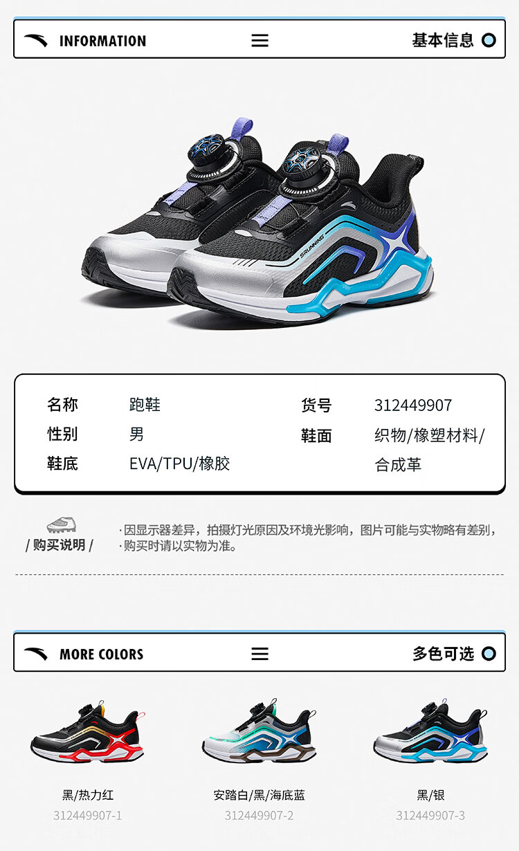安踏儿童运动鞋男小童犟弹科技跑步系列旋钮扣低帮弓速跑鞋312449907