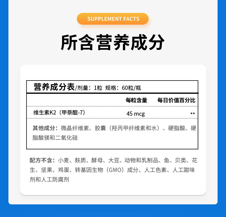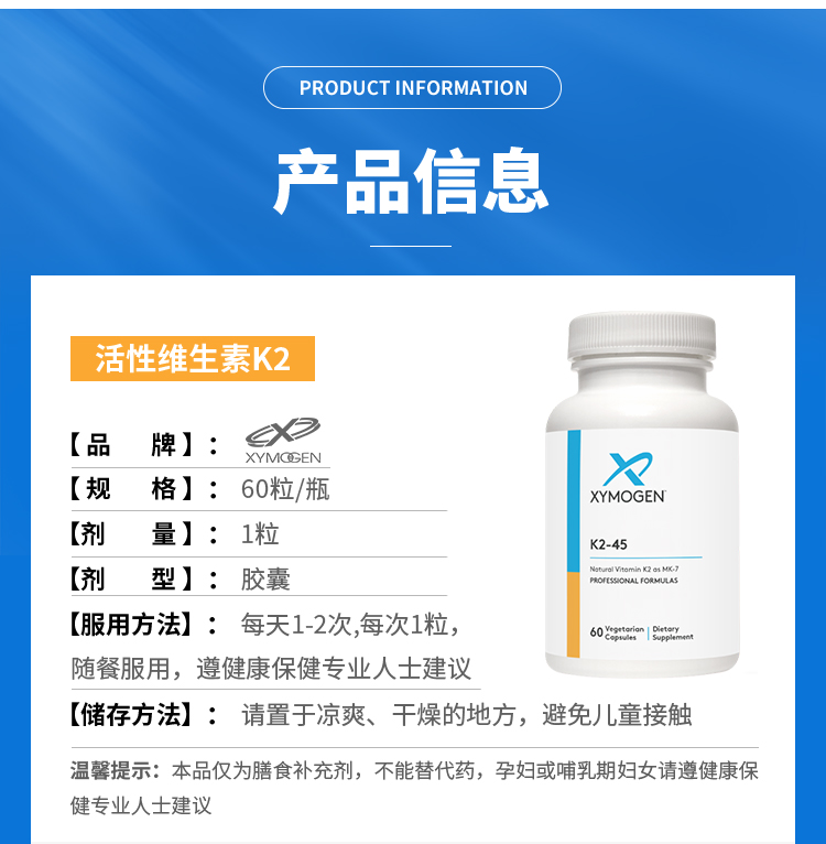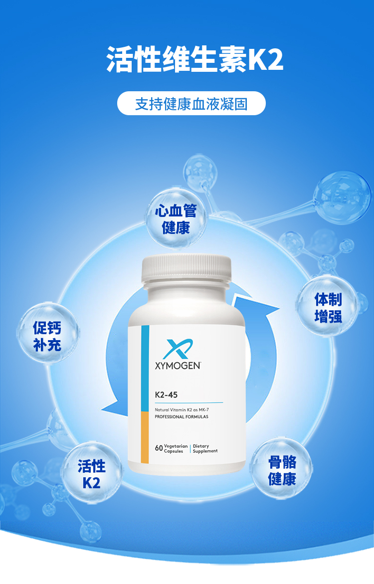 【效期至27年6月】活性维生素 K2 胶囊 XYMOGEN K2-45 60粒/瓶