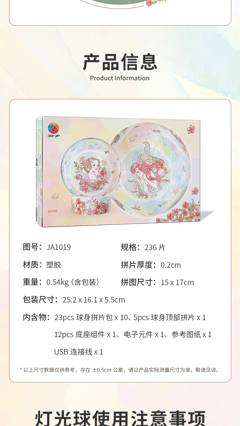 236片6寸 灯光球塑料拼图JA1019 公主系列-夜之花语