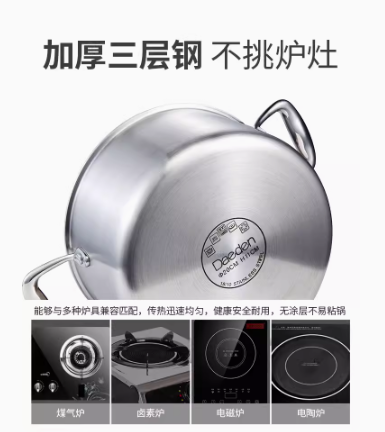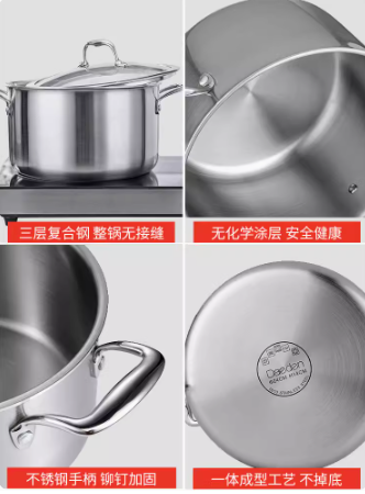 戴德不锈钢汤锅家用煮锅加厚炖锅煮粥泡面锅蒸煮燃气电磁炉双耳锅