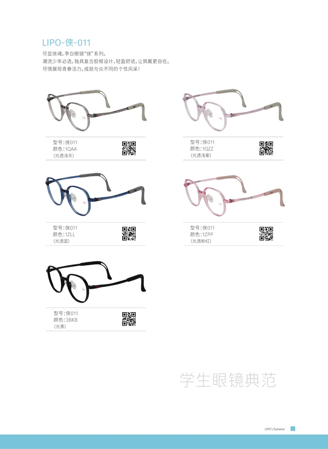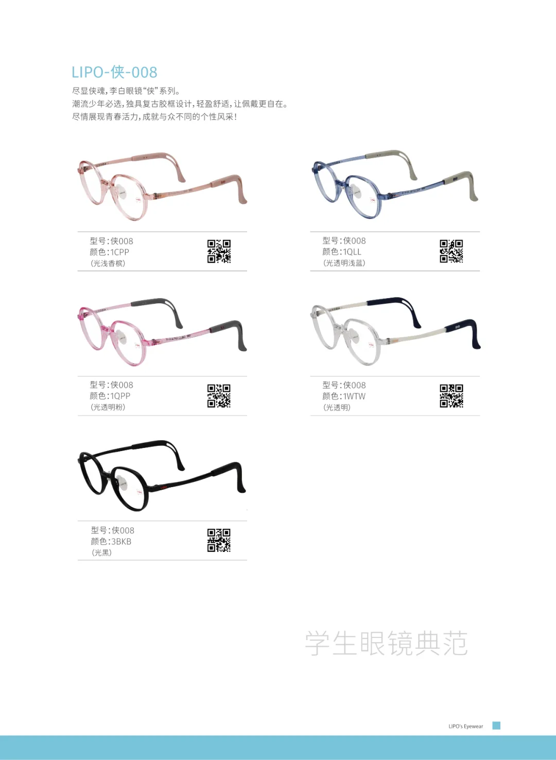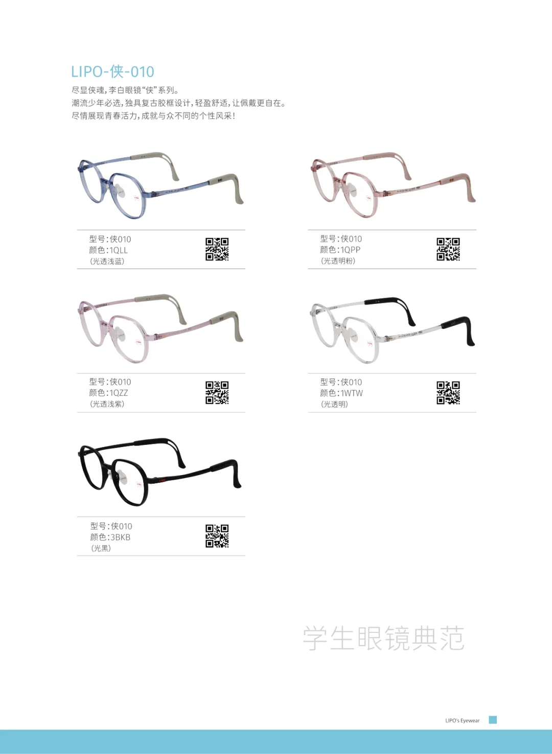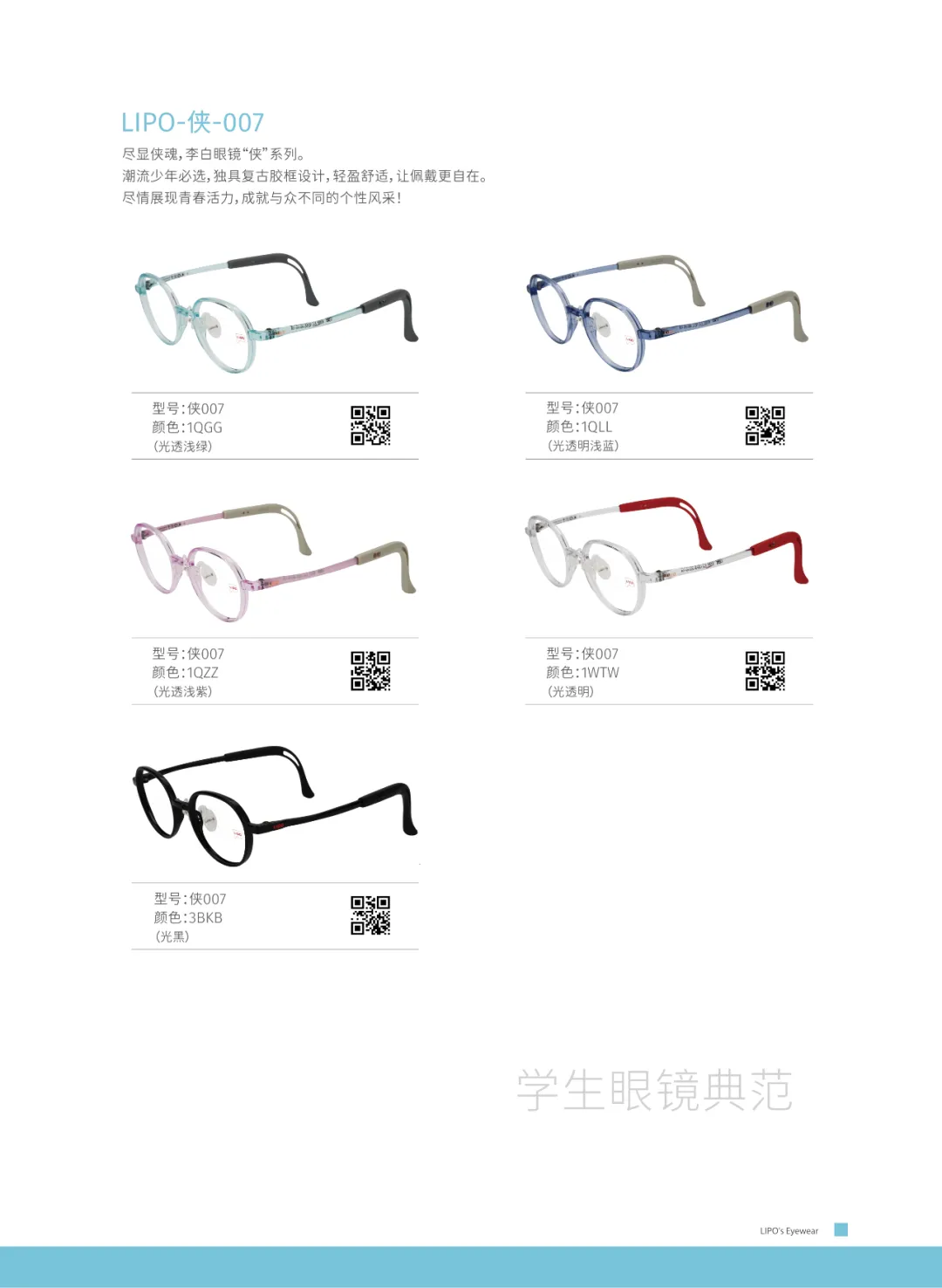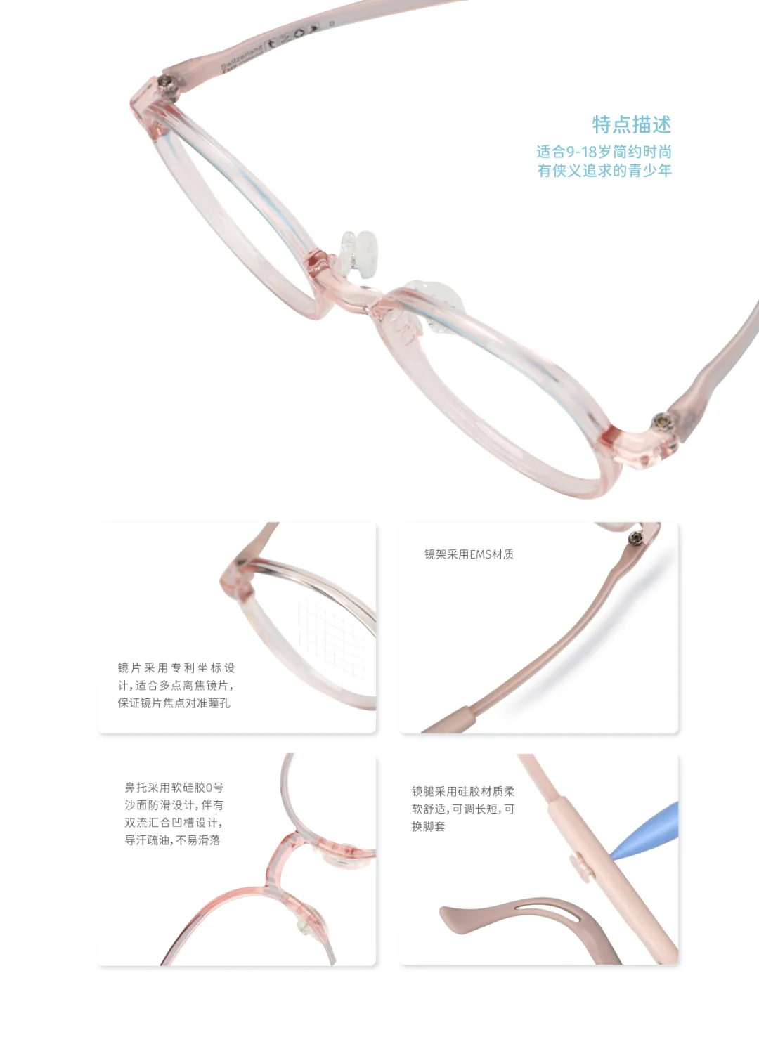 李白镜架-侠系列弹性铰链,适合热爱运动儿童少年抗冲击专业配镜款