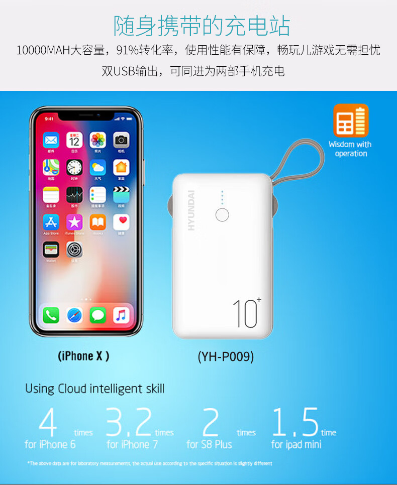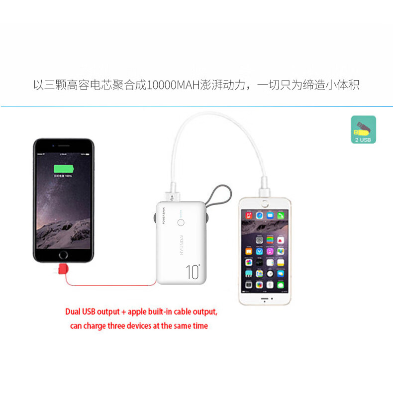 现代HYUNDAI 便携挂绳带一拖三数据线移动电源 YH-P009