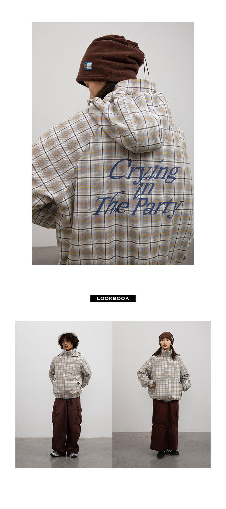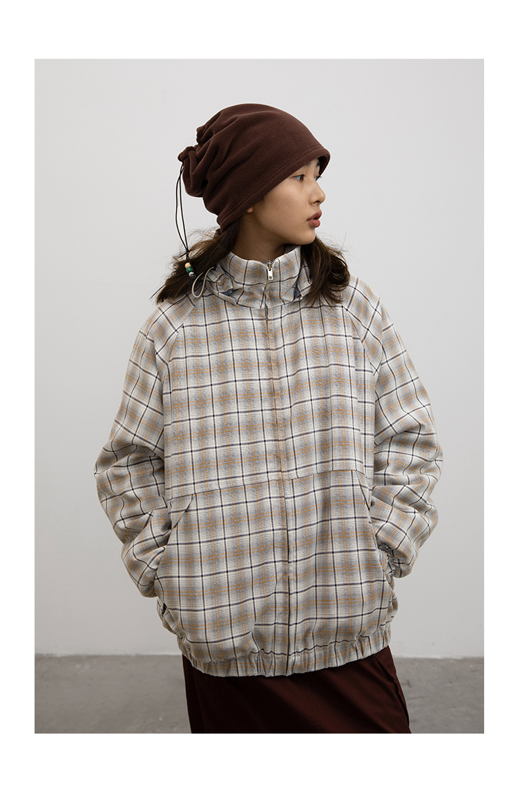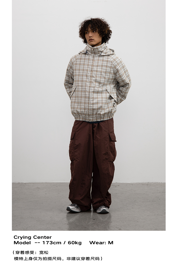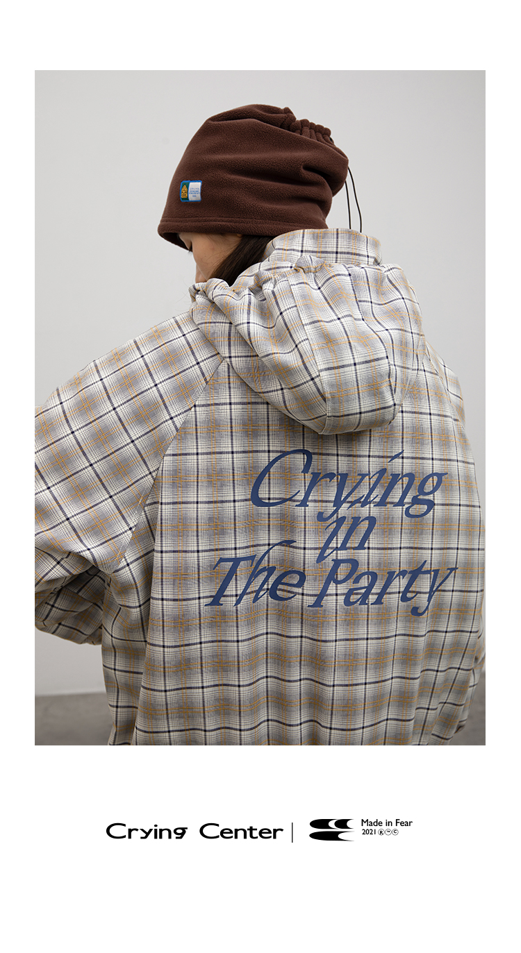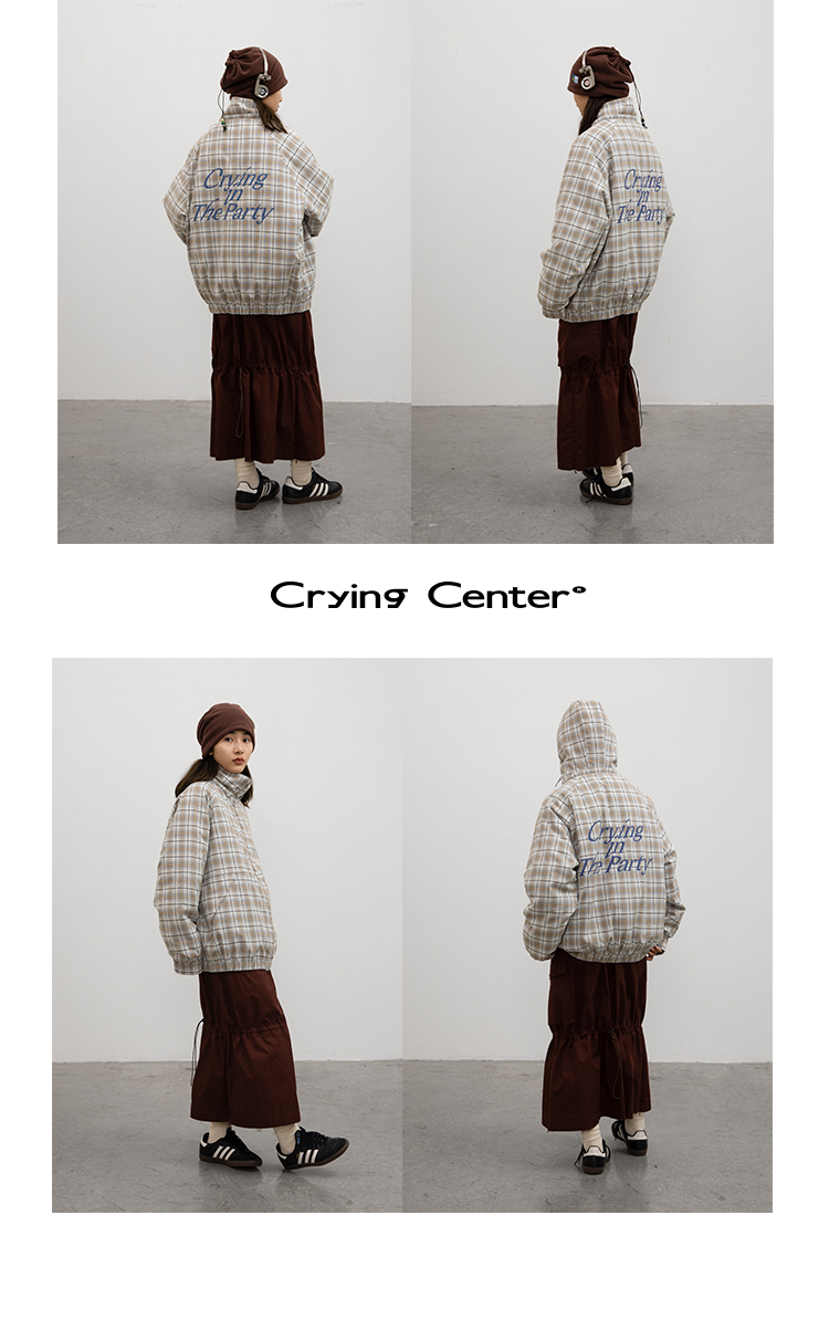 CryingCenter 日系复古格子连帽外套棉服 可拆卸帽子 哭喊中心