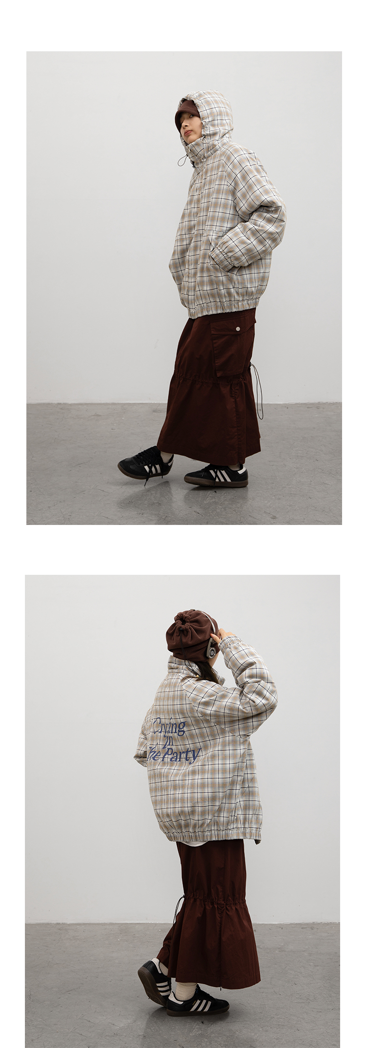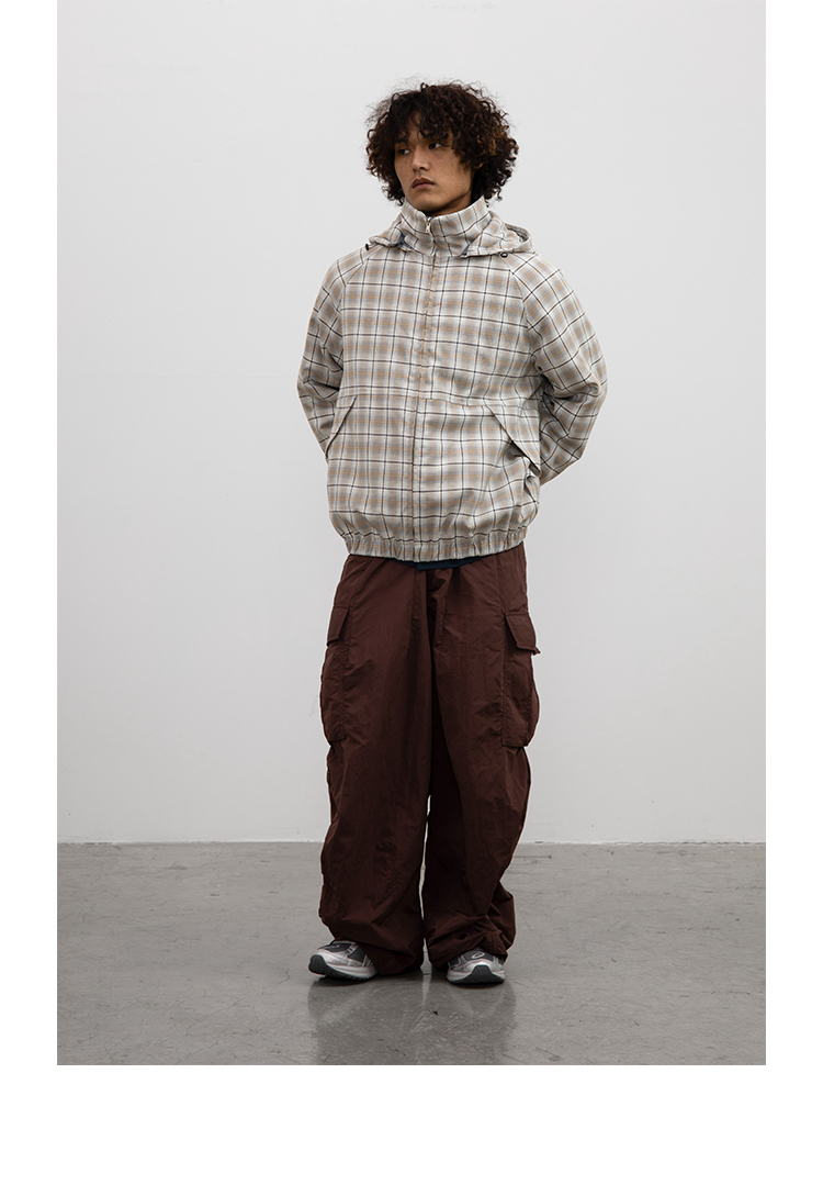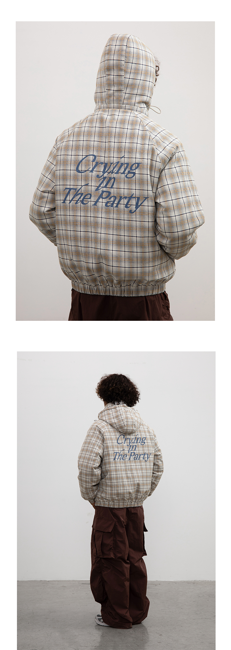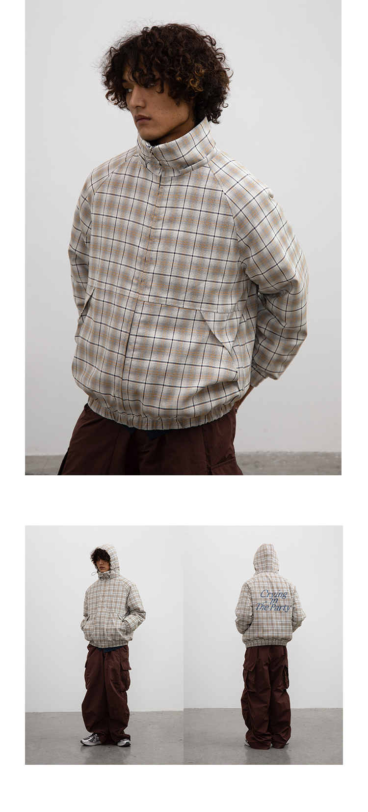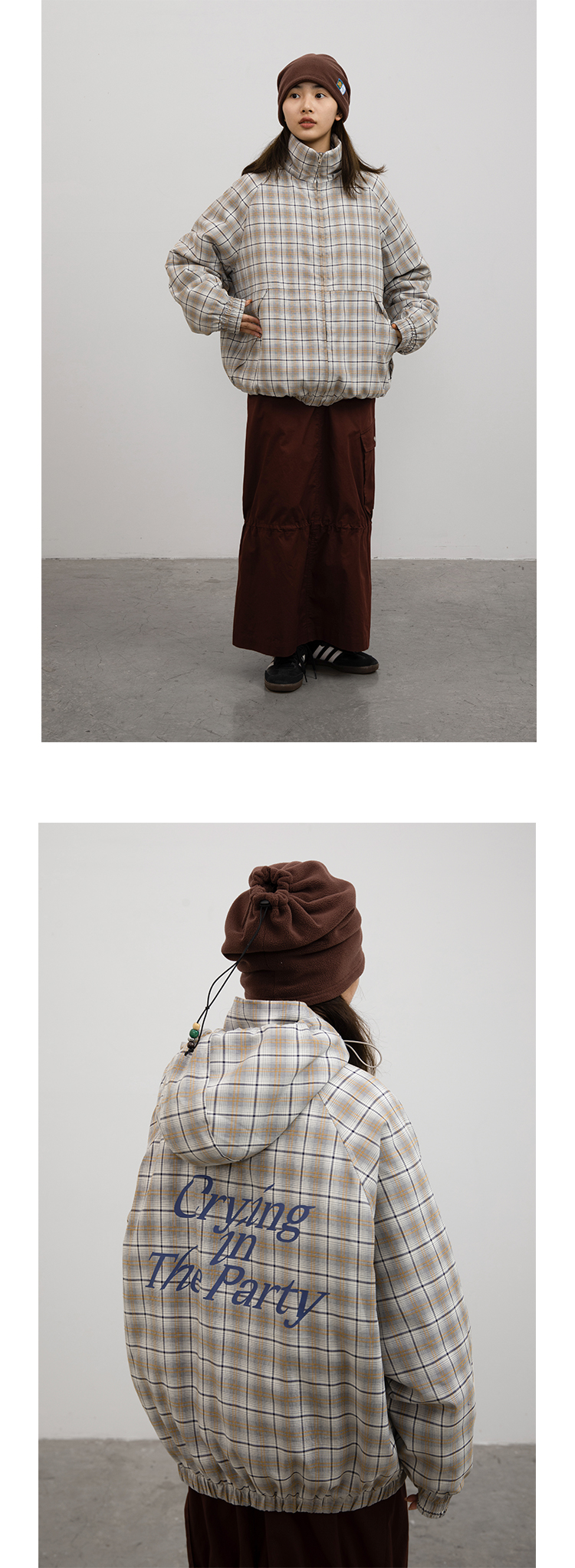 CryingCenter 日系复古格子连帽外套棉服 可拆卸帽子 哭喊中心