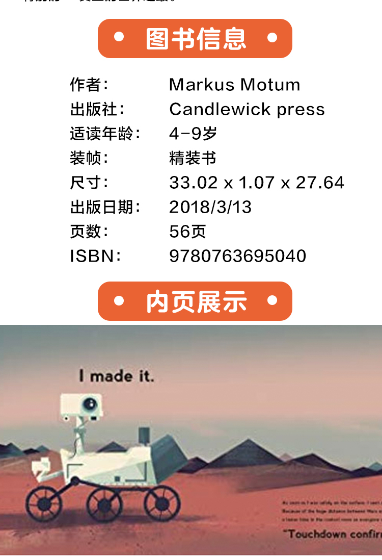 你可能不知道2012年8月6日好奇号探测器在火星岩石表面着陆。这本既翔实又现代的图画书将介绍好奇号从构思到生产的过程以及它的使命:探索火星,寻找生命证据。 好奇号的名字是怎么来的?它利用什么工具来完成任务?好奇号将以第一视角讲述它为什么跨越3.5亿英里去探索人类从未到访的星球以及它在那里都做了什么。