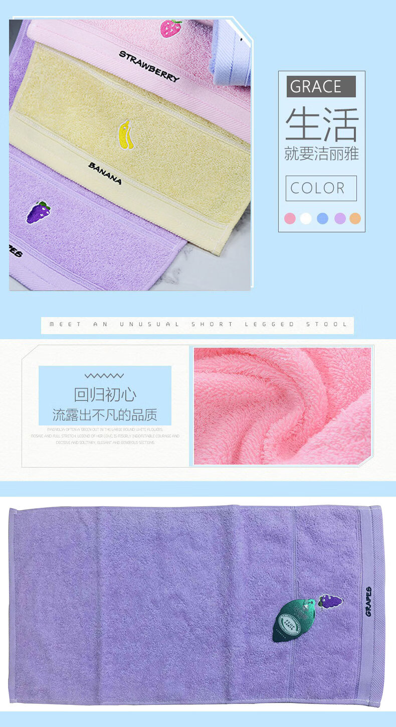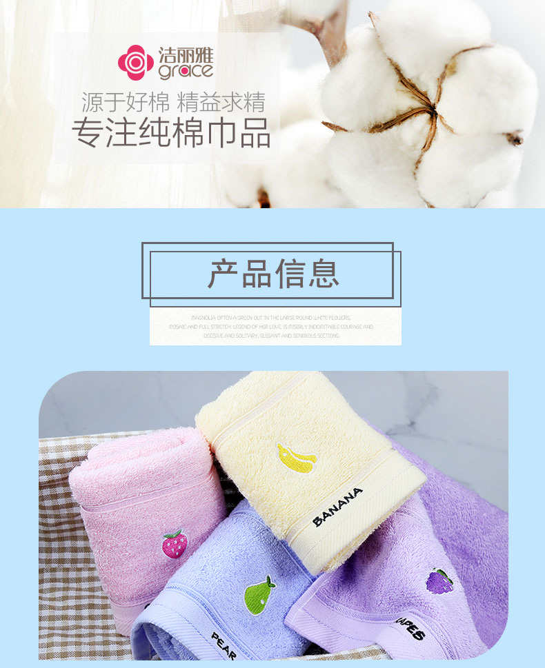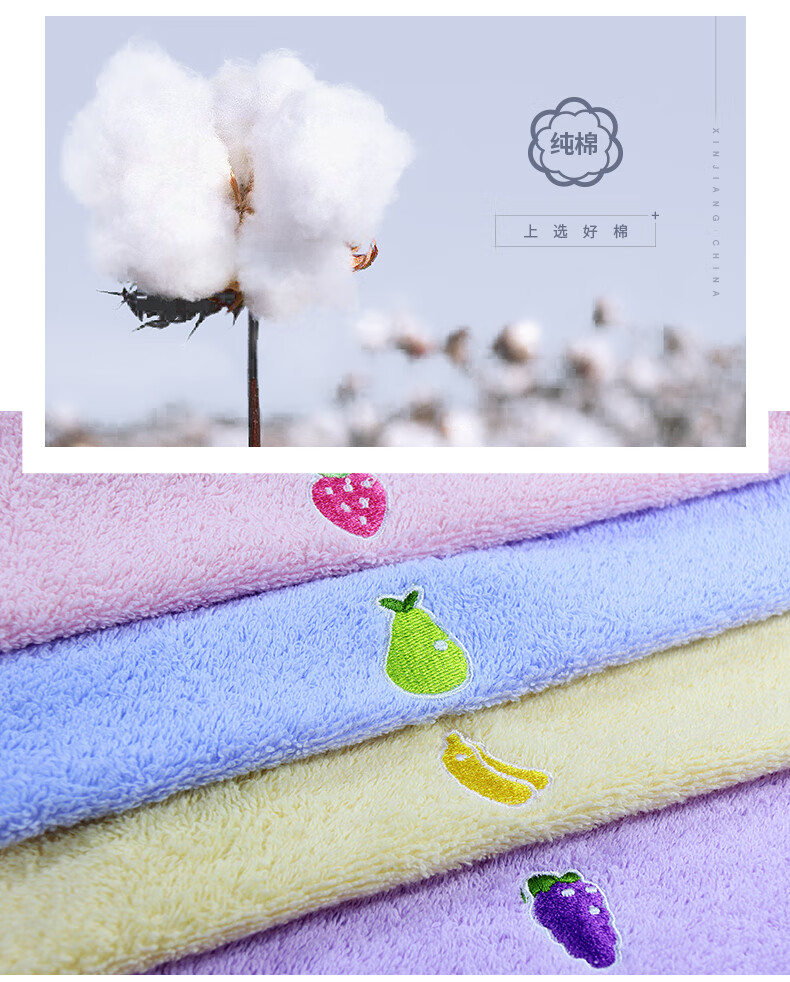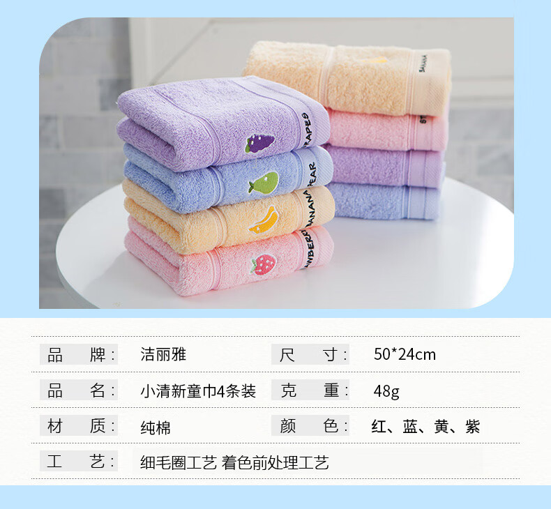 洁丽雅 刺绣卡通纯棉童巾4条装E3113(颜色随机)