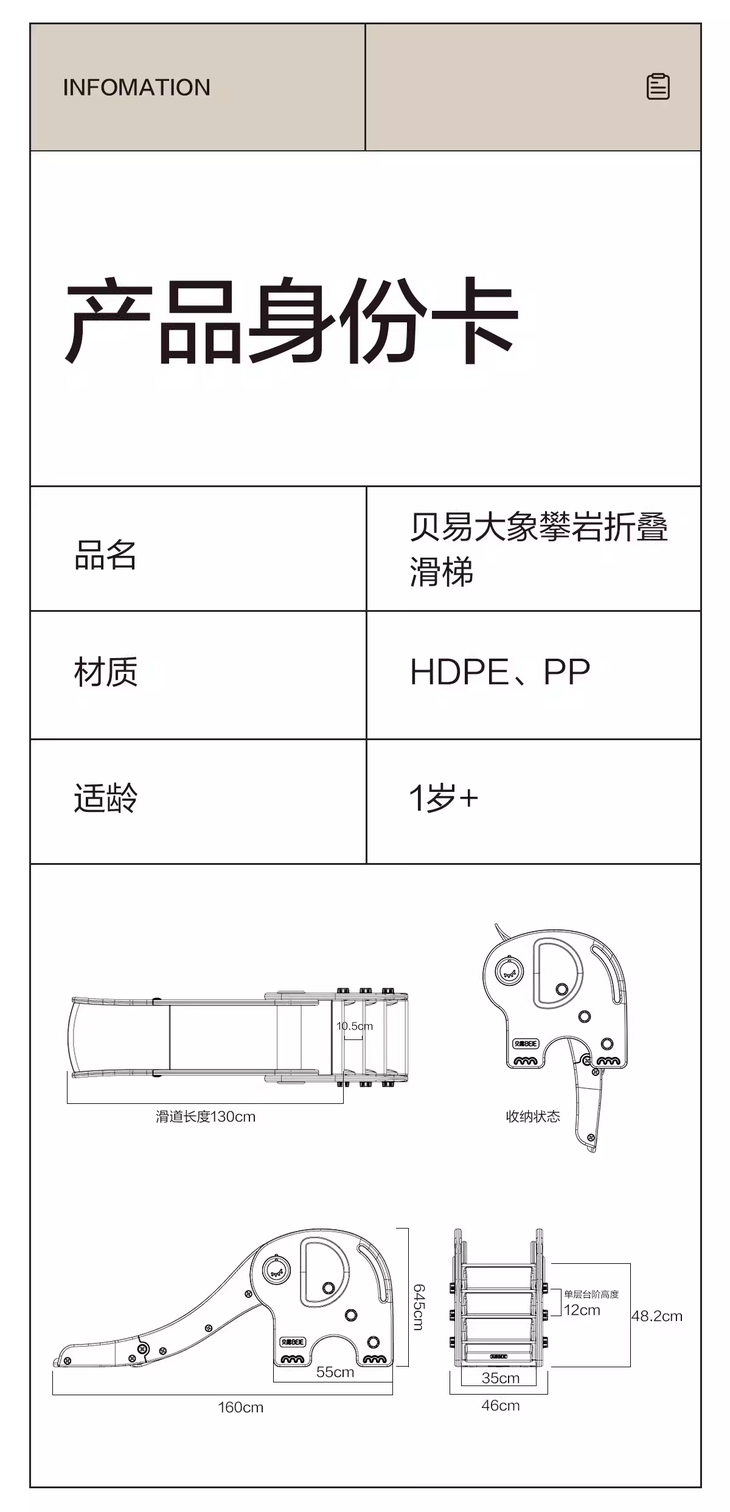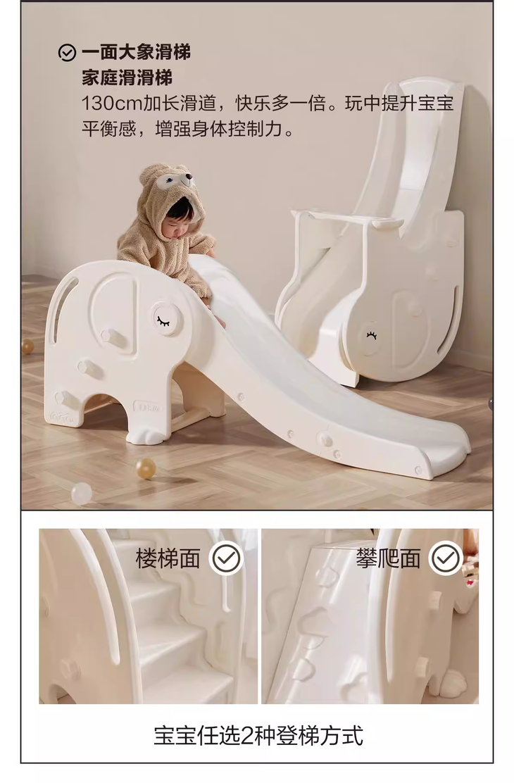 贝易大象滑滑梯室内家用儿童宝宝1-2-3玩具折叠攀爬架儿童乐园