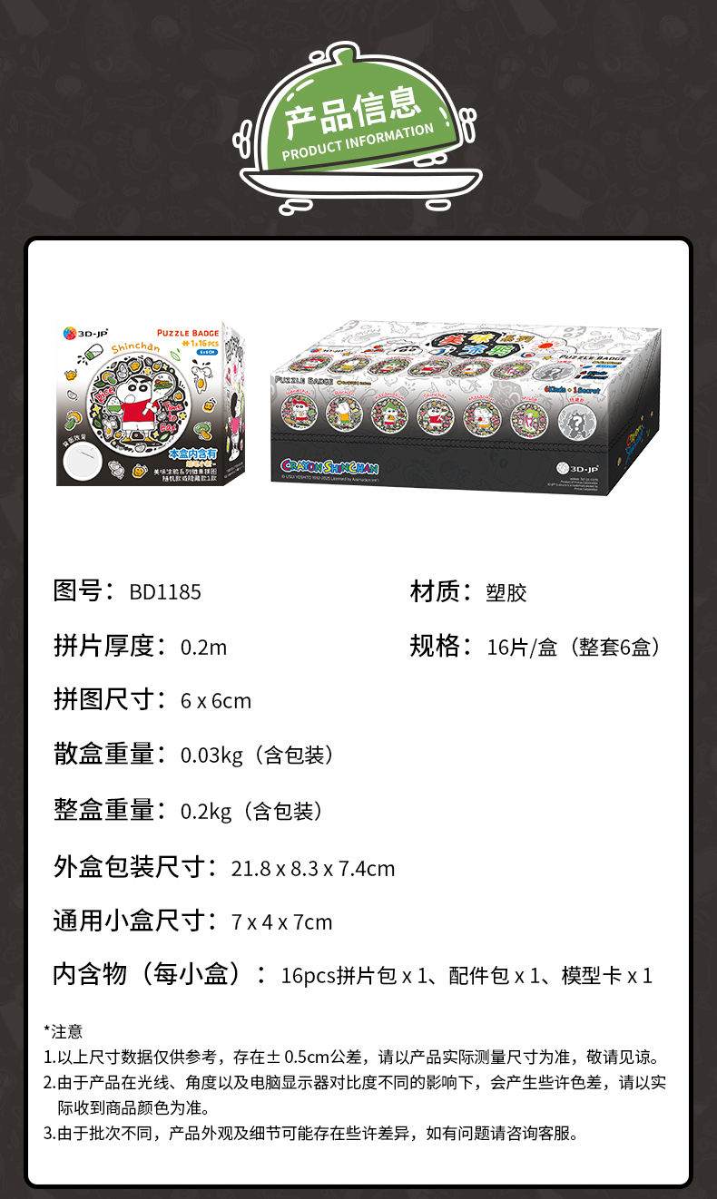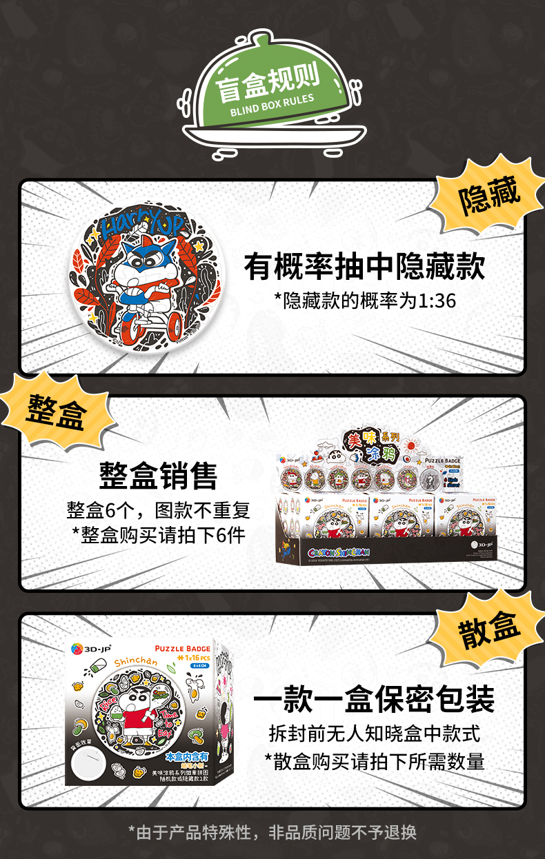16片 徽章盲盒拼图 BD1185 蜡笔小新-美味涂鸦系列