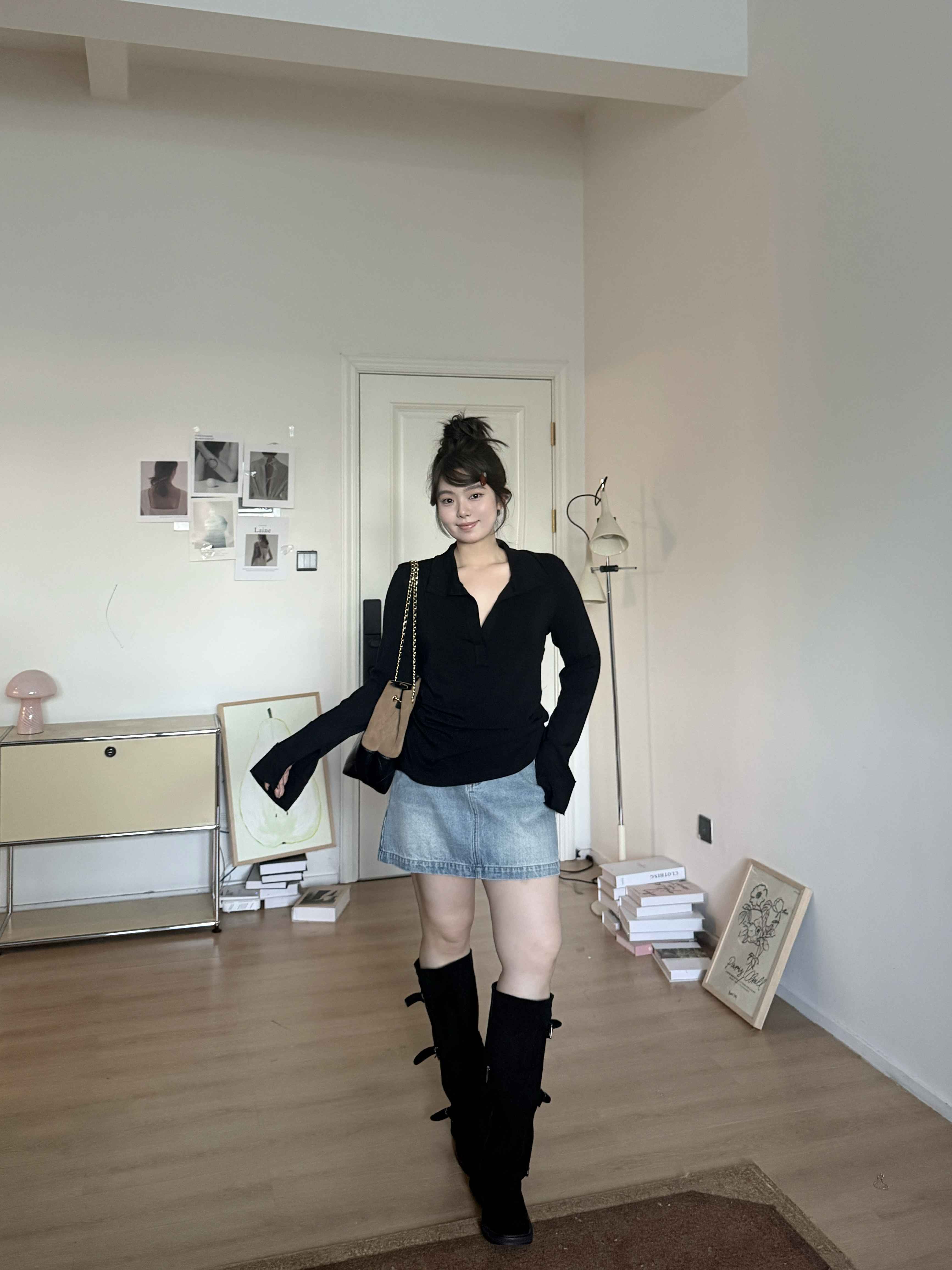 25AW上新 软软同款【空气衫】简约百搭修身收腰腰部捏褶大翻领T恤