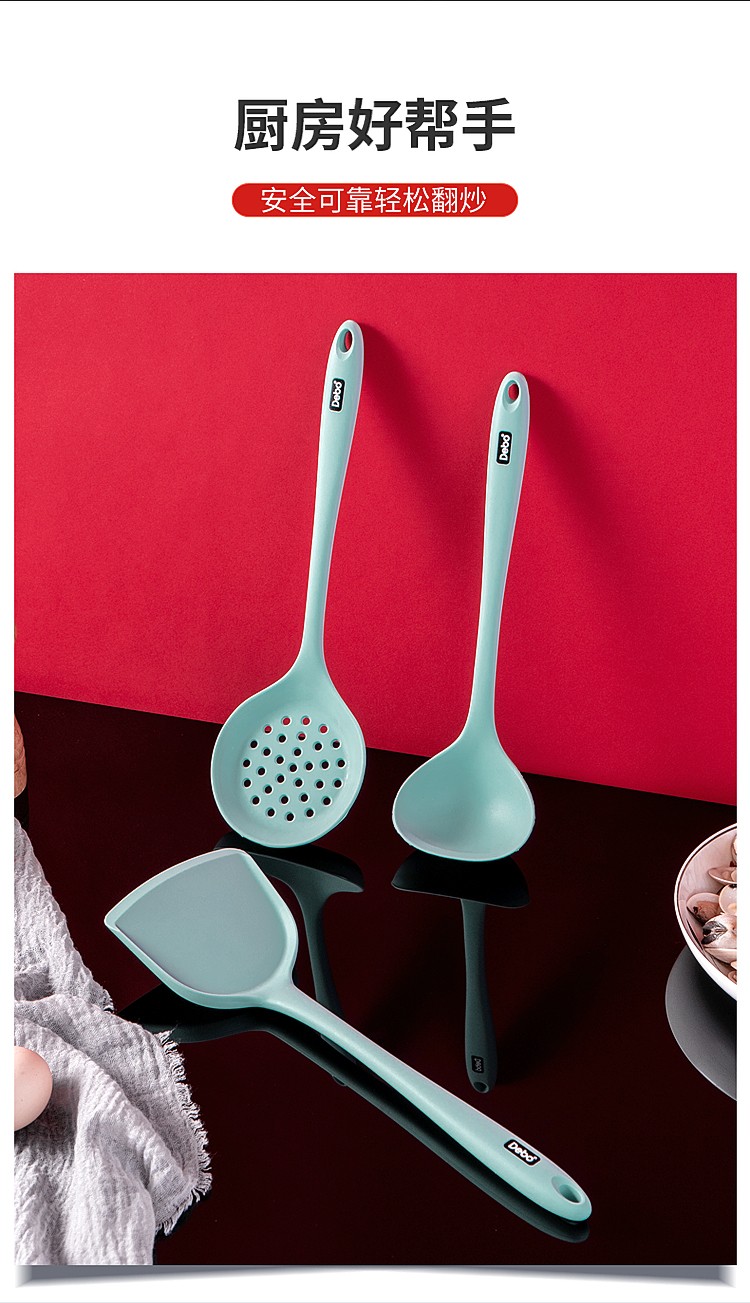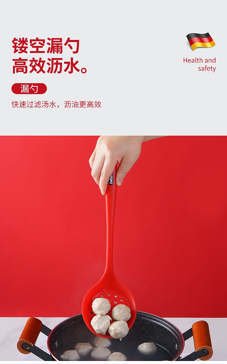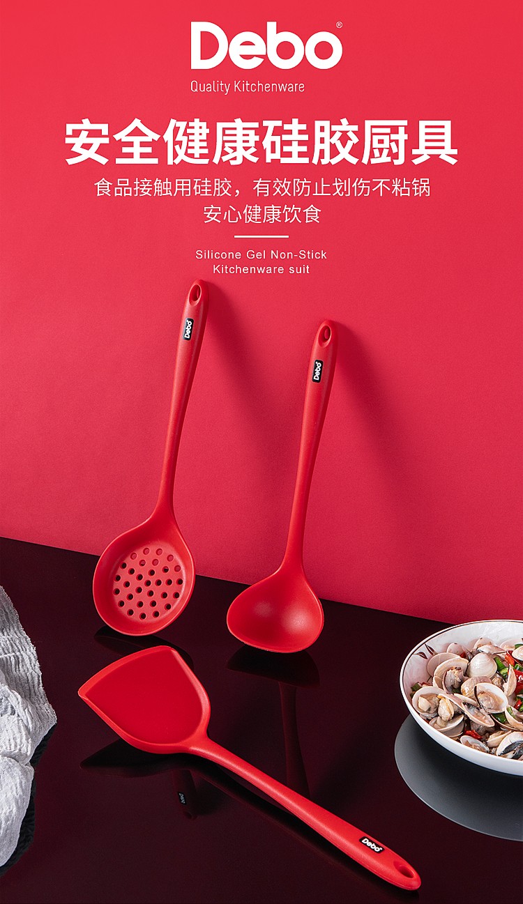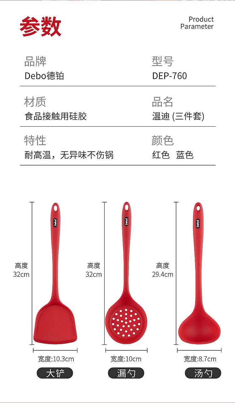 Debo德铂温迪硅胶锅铲漏勺三件套 红色/蓝色