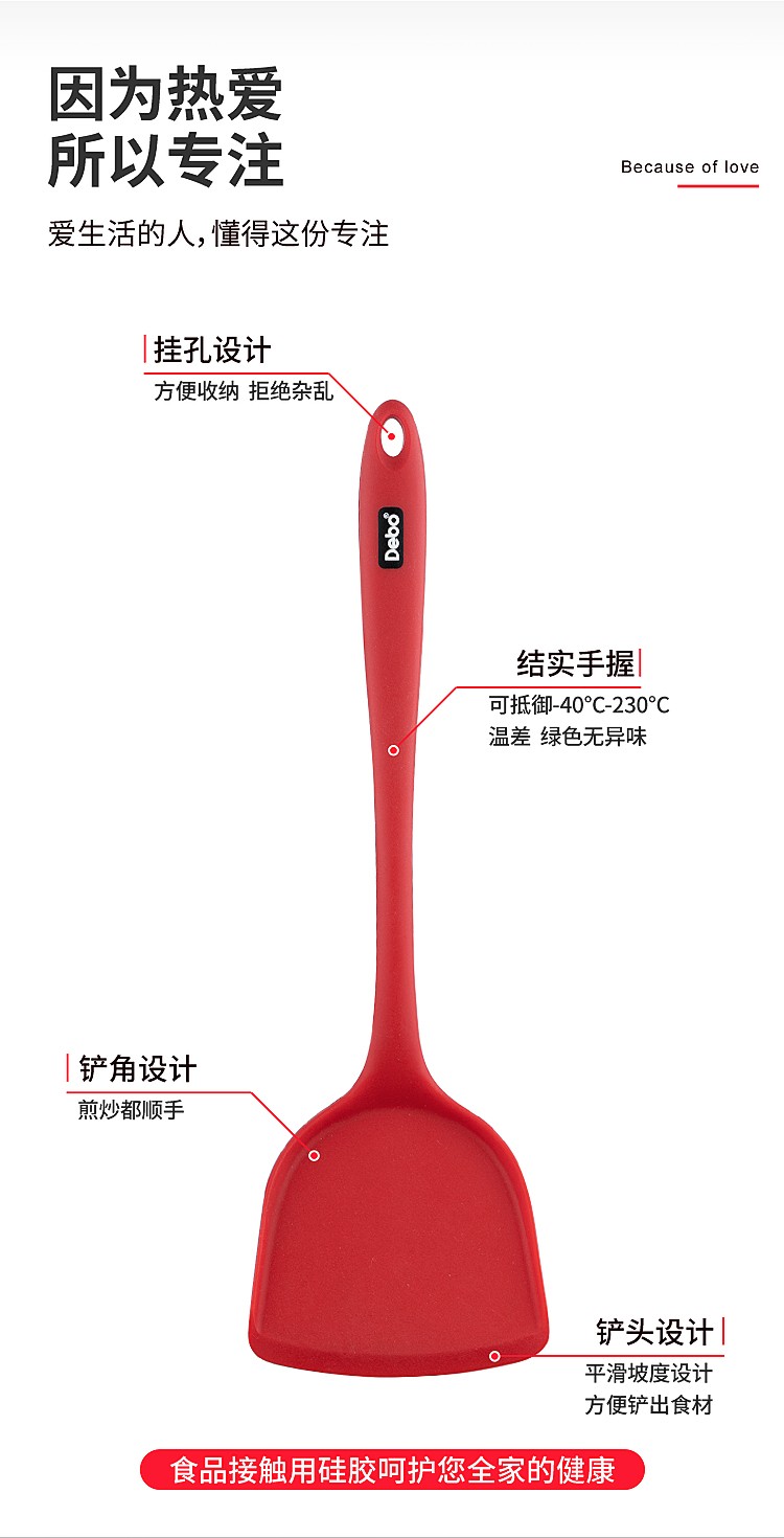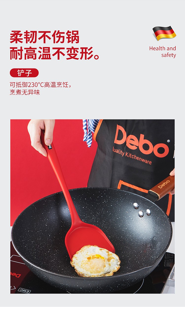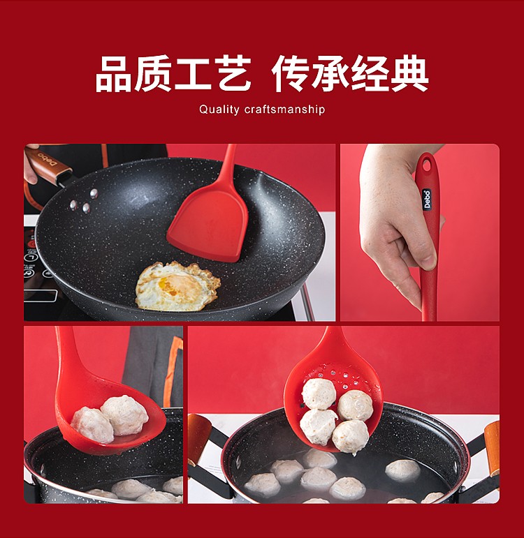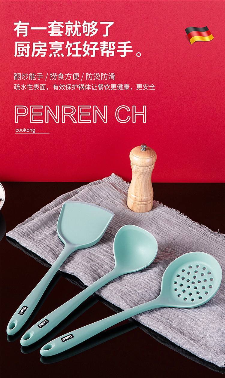 Debo德铂温迪硅胶锅铲漏勺三件套 红色/蓝色
