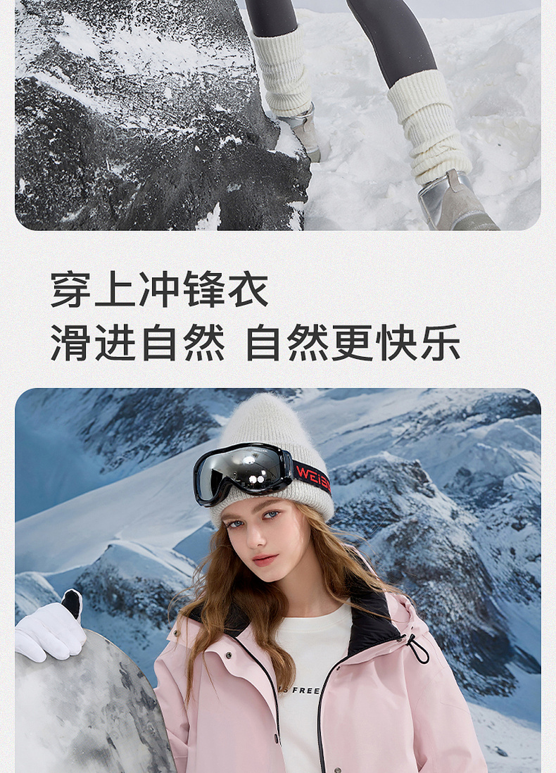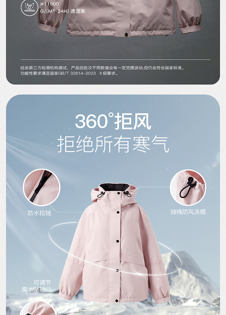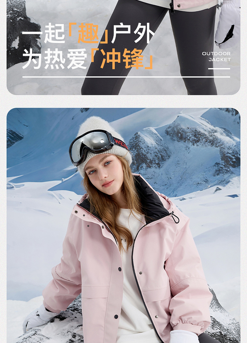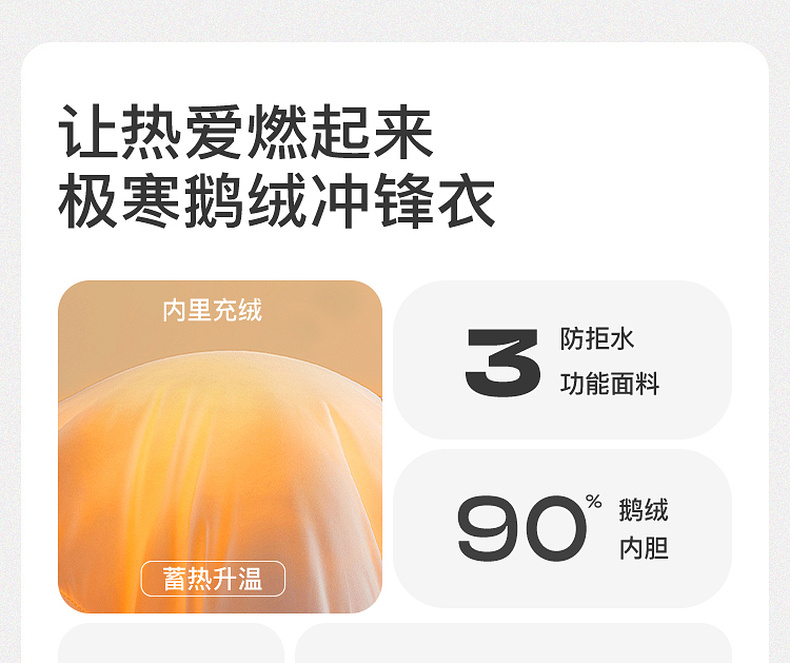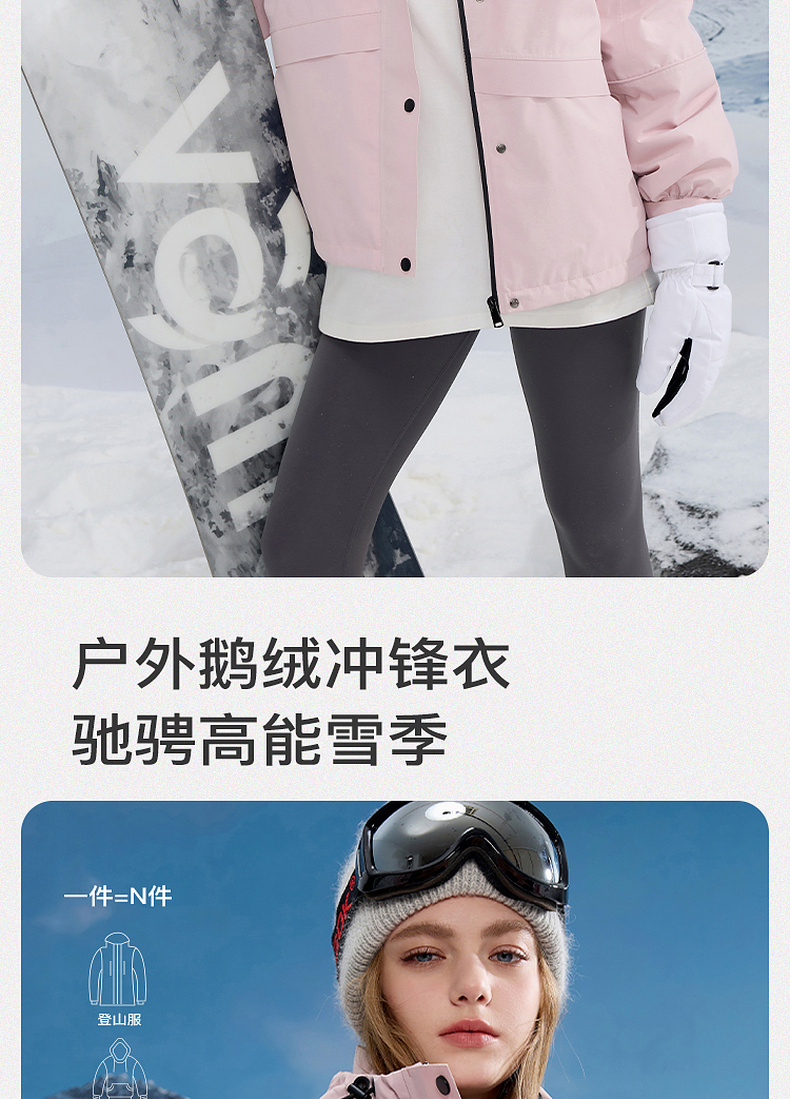 三彩2024冬季新款极寒鹅绒冲锋衣三防连帽白鹅绒外套户外工装女M