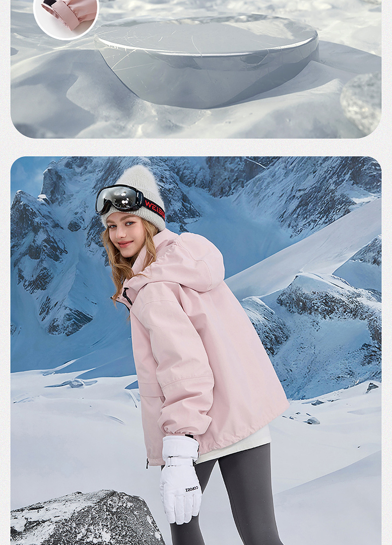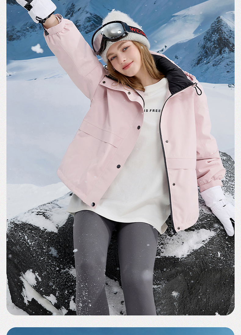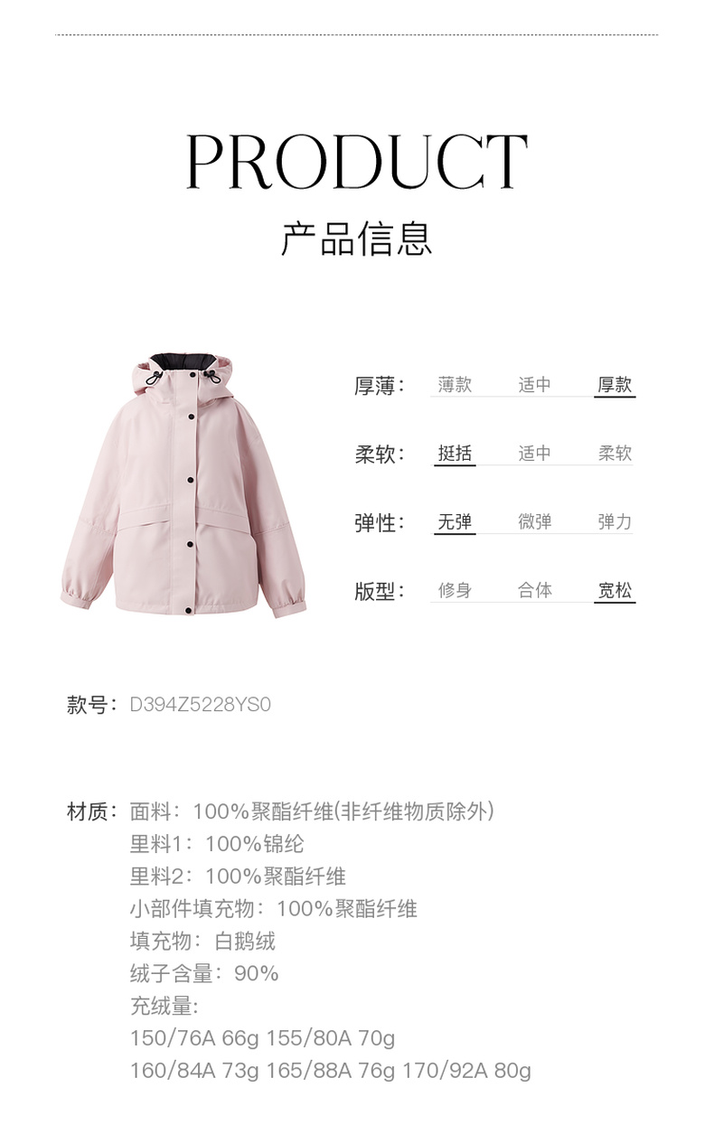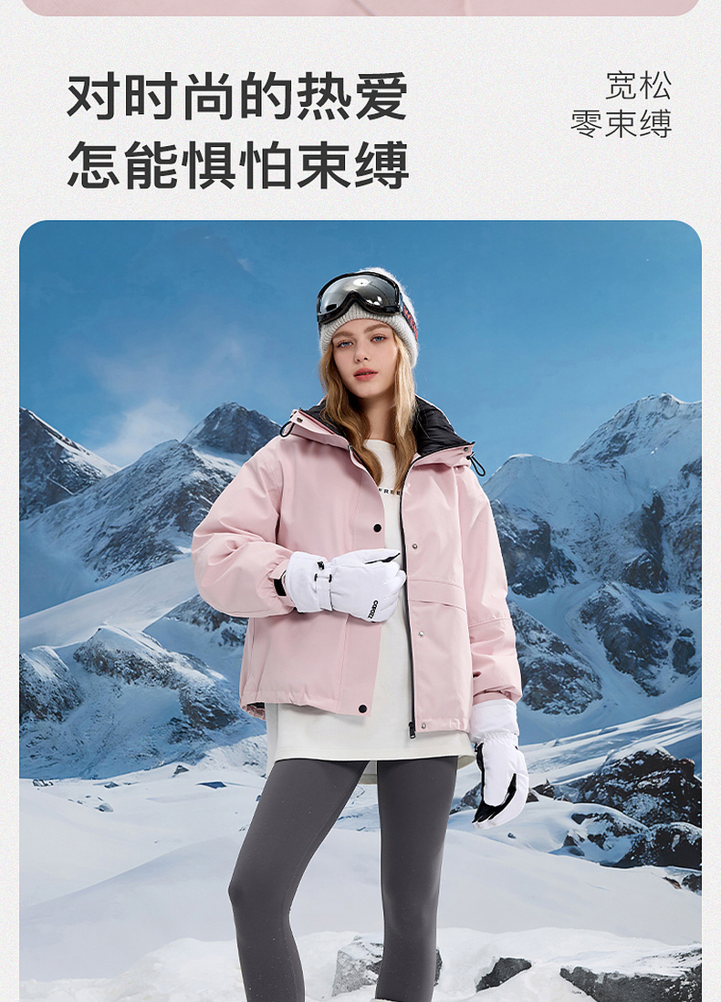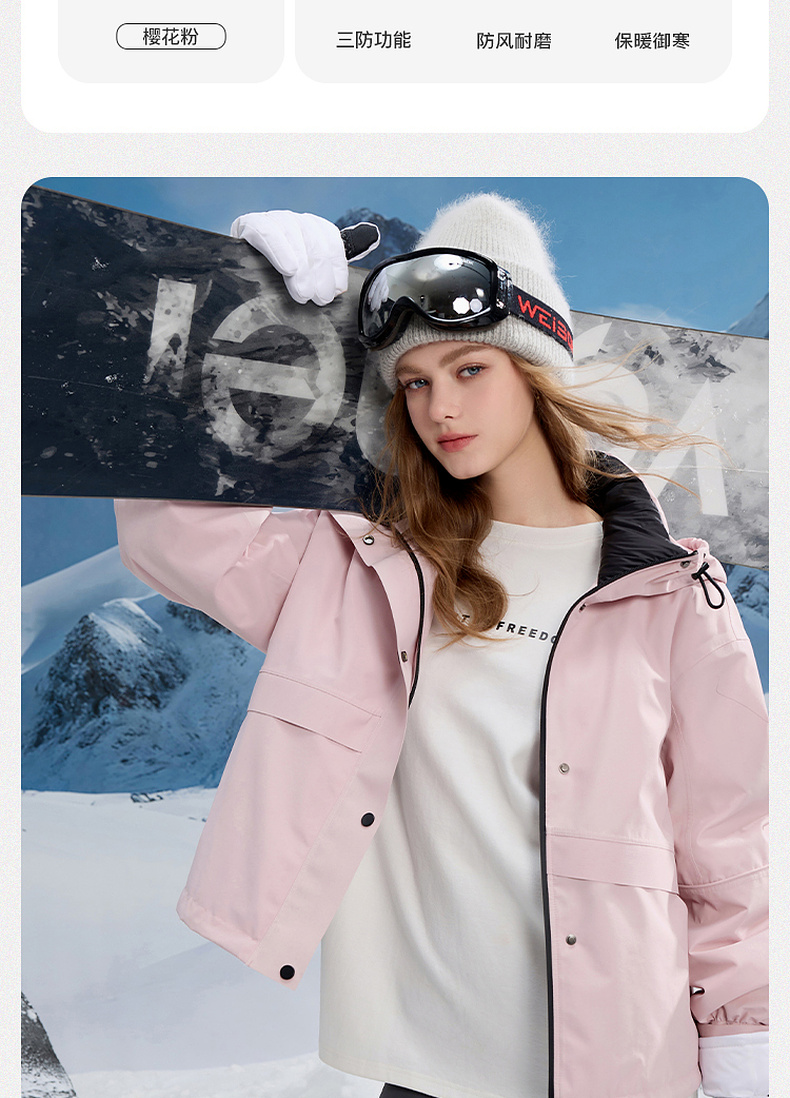 三彩2024冬季新款极寒鹅绒冲锋衣三防连帽白鹅绒外套户外工装女M