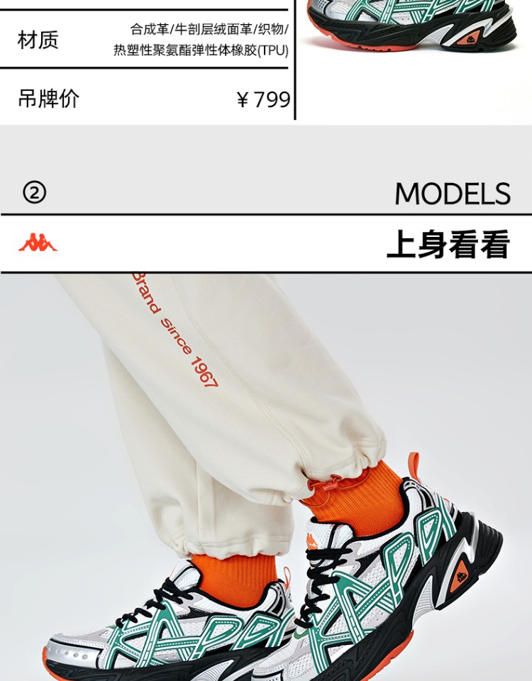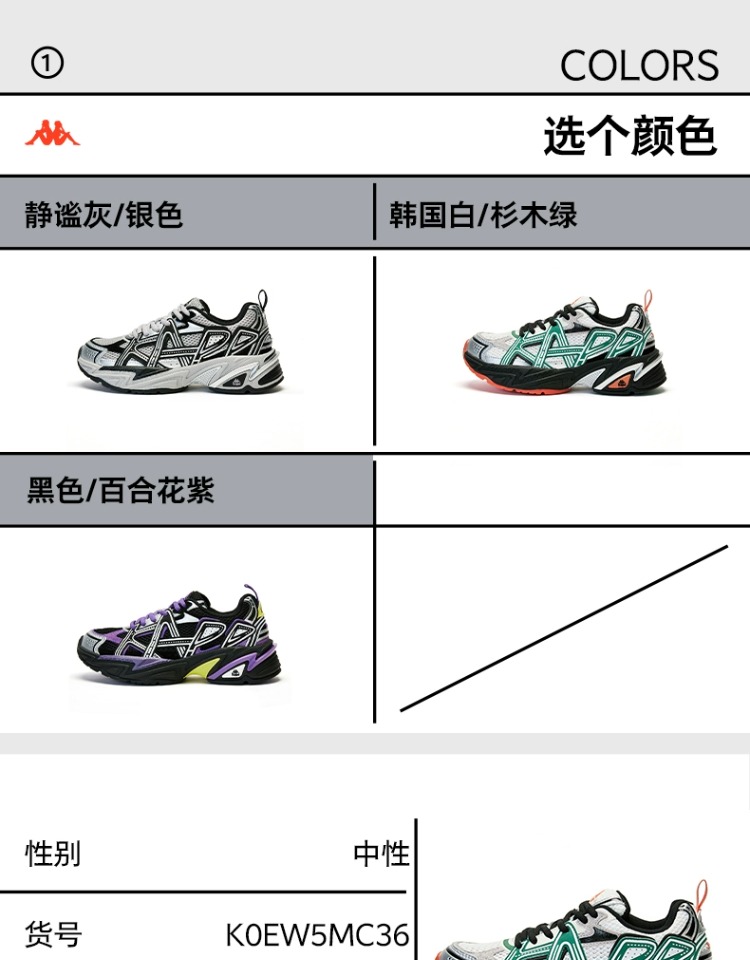 Kappa卡帕潮流跑鞋2024新款男女春时尚老爹鞋运动休闲鞋K0EW5MC36