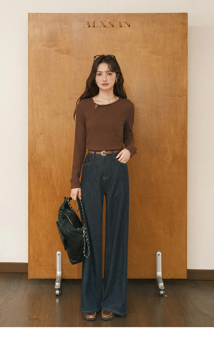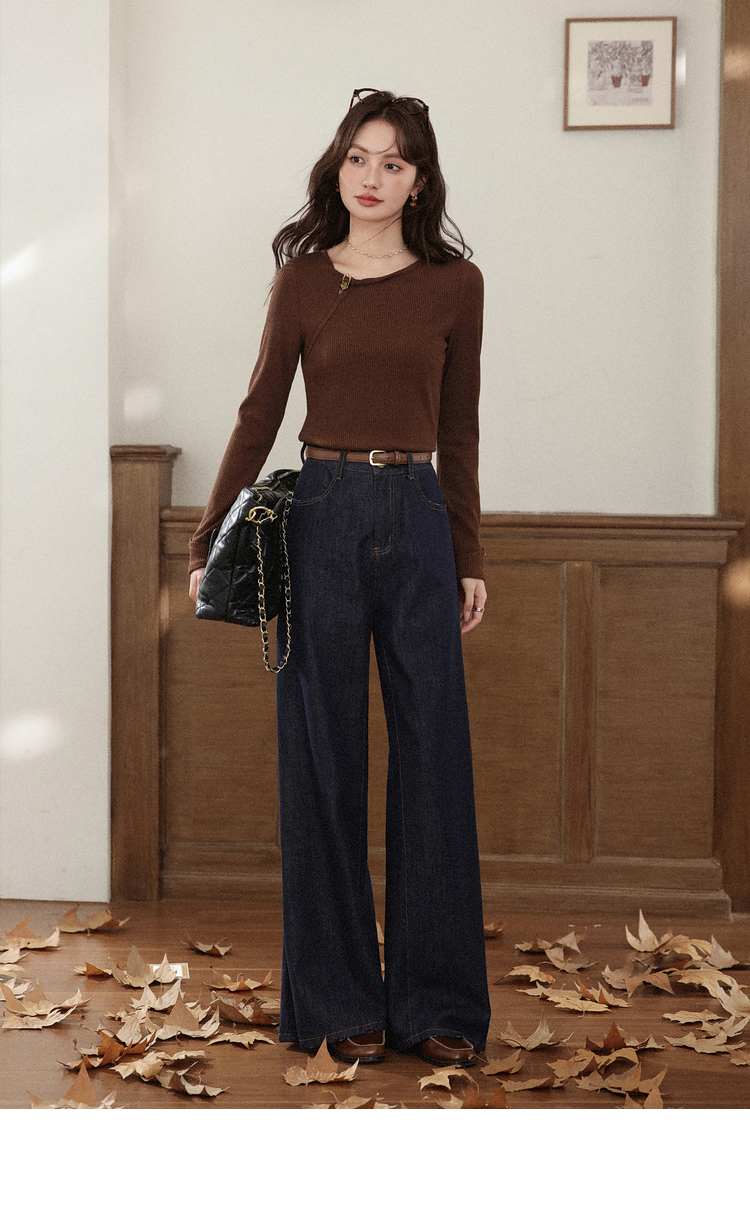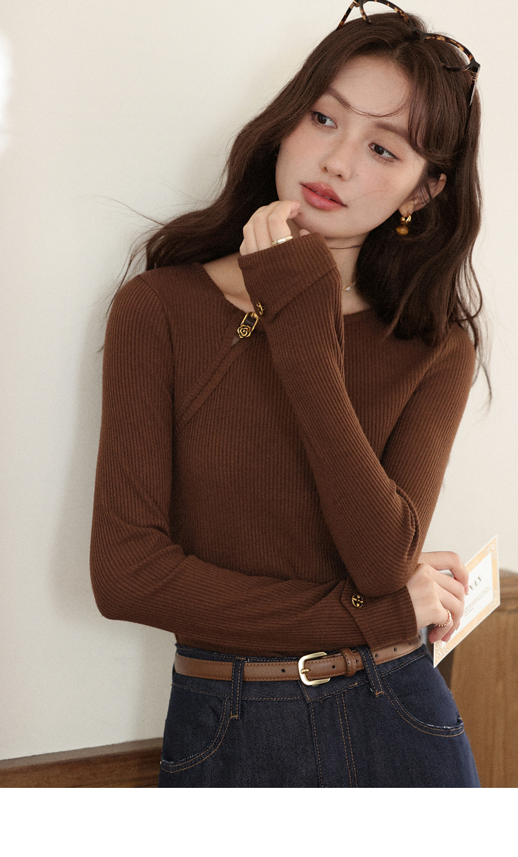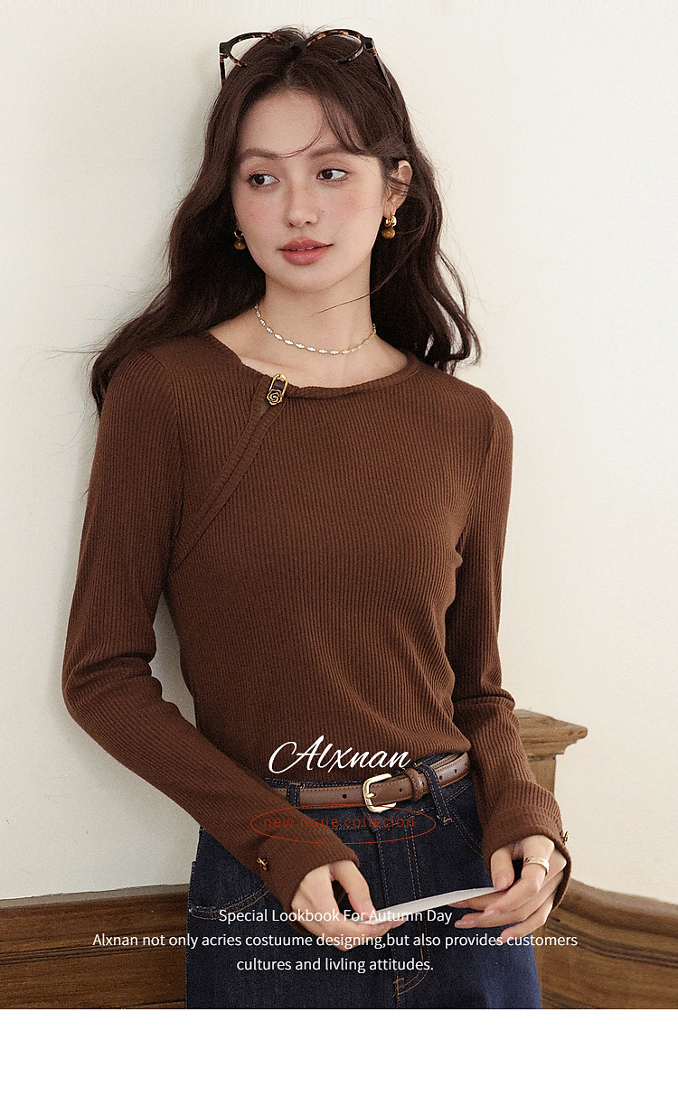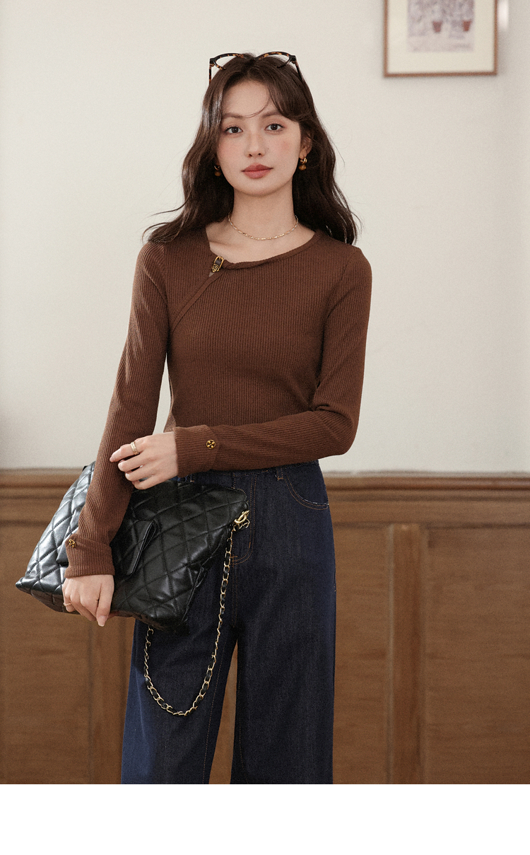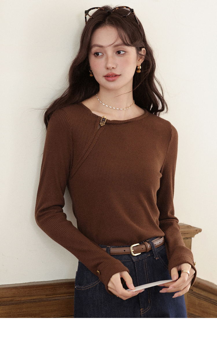 【6折秒杀】鹿向南「秋日咖啡」咖啡棕色长袖T恤女2025秋季新款显瘦内搭上衣