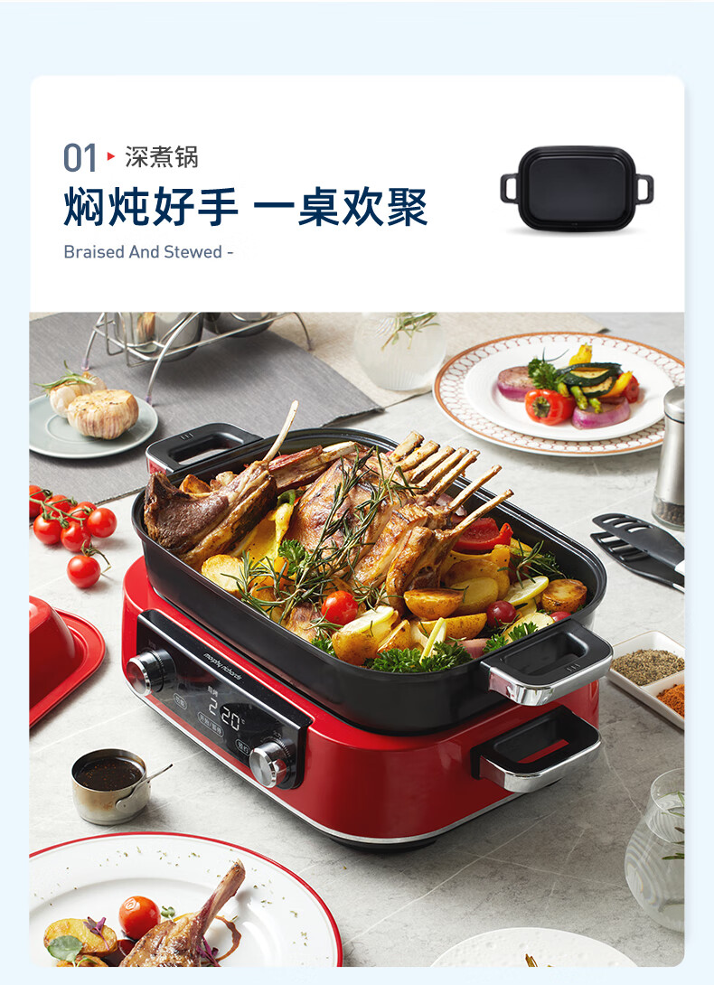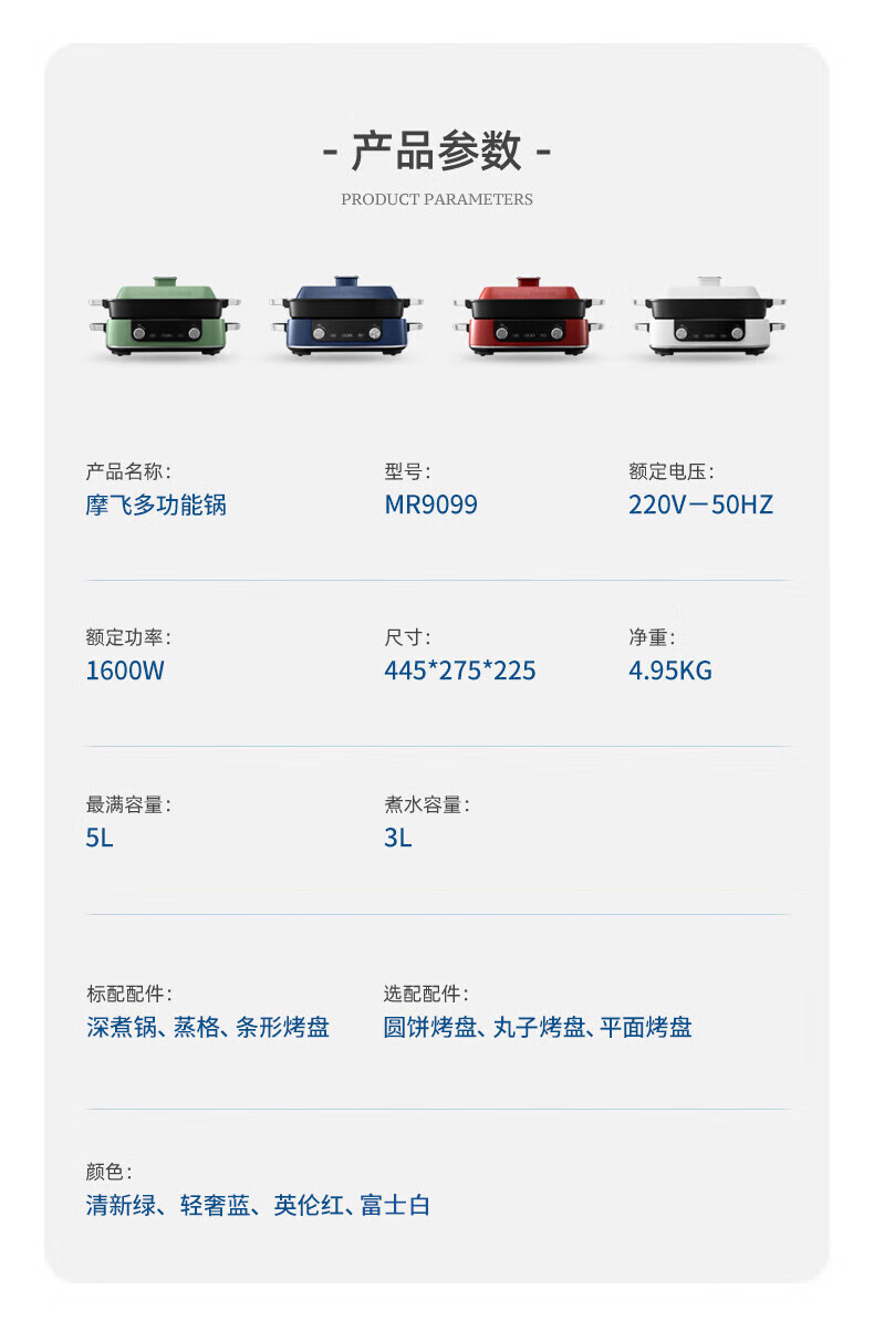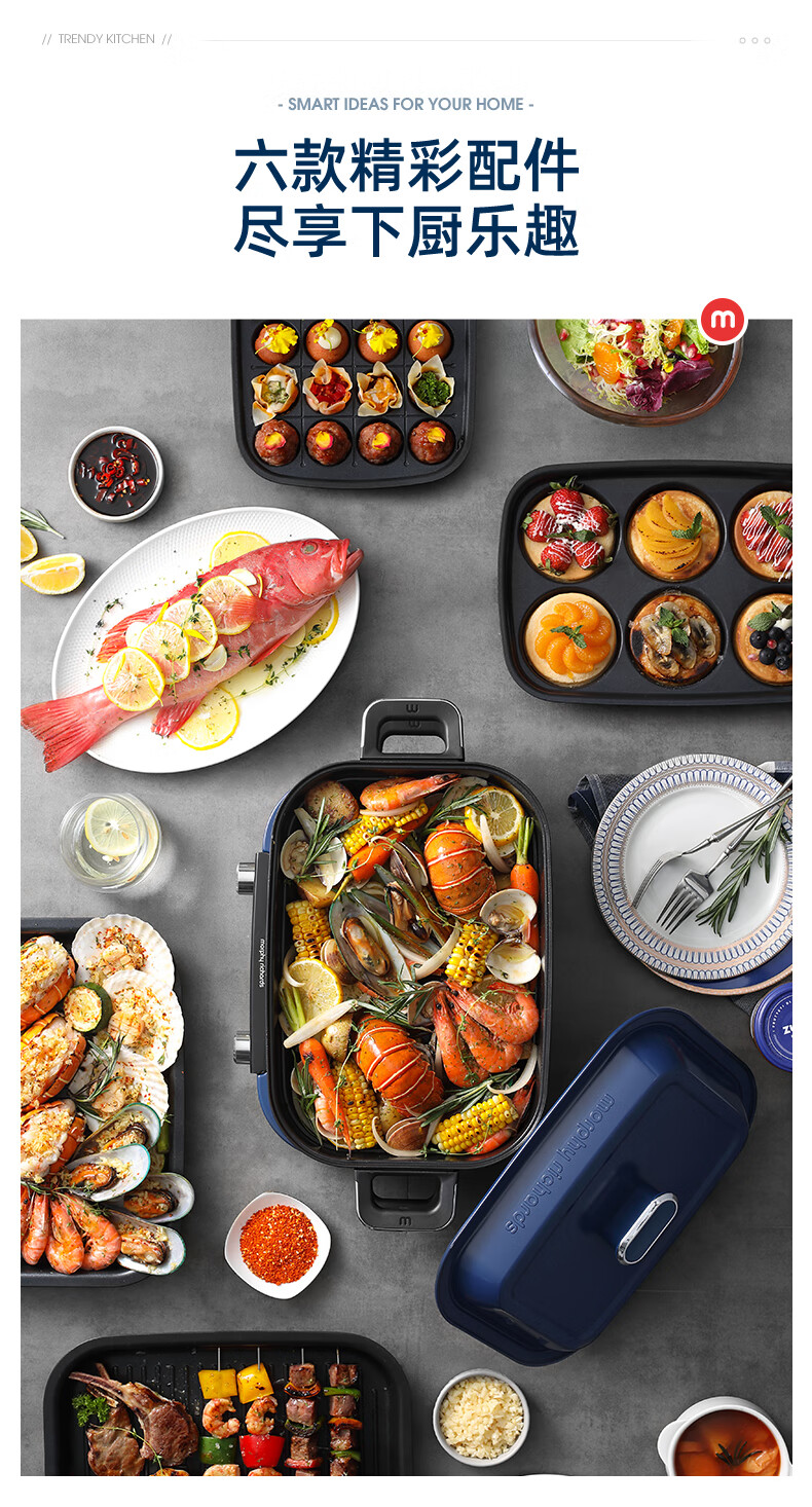 摩飞电器(Morphyrichards)多功能锅 家用电火锅电蒸锅 5升可预约 大功率分体式蒸煮一体不沾煎烤料理锅 MR9099 薄荷绿