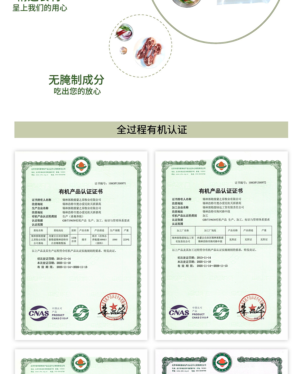 锡盟草原有机单骨羔羊法排400g*2 包邮|基地直发
