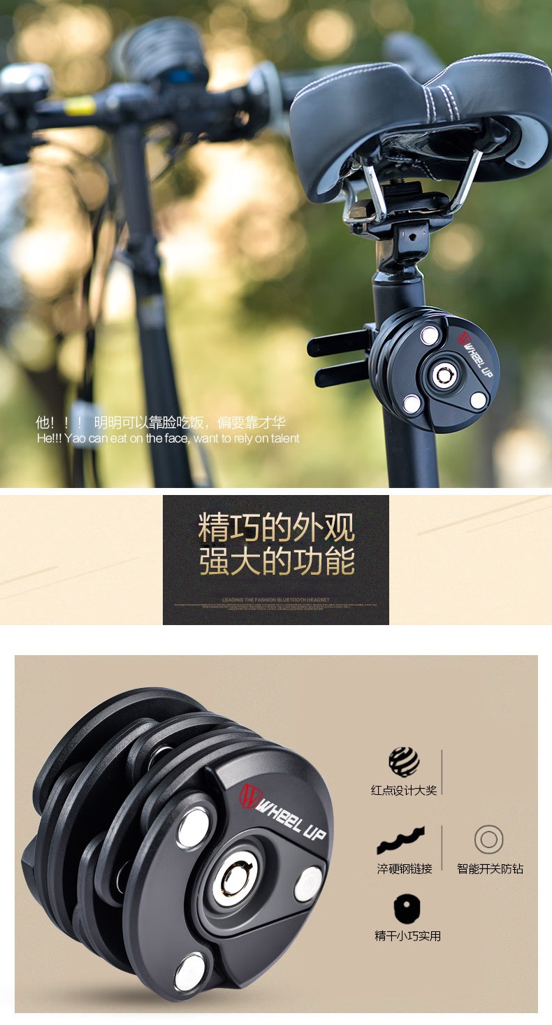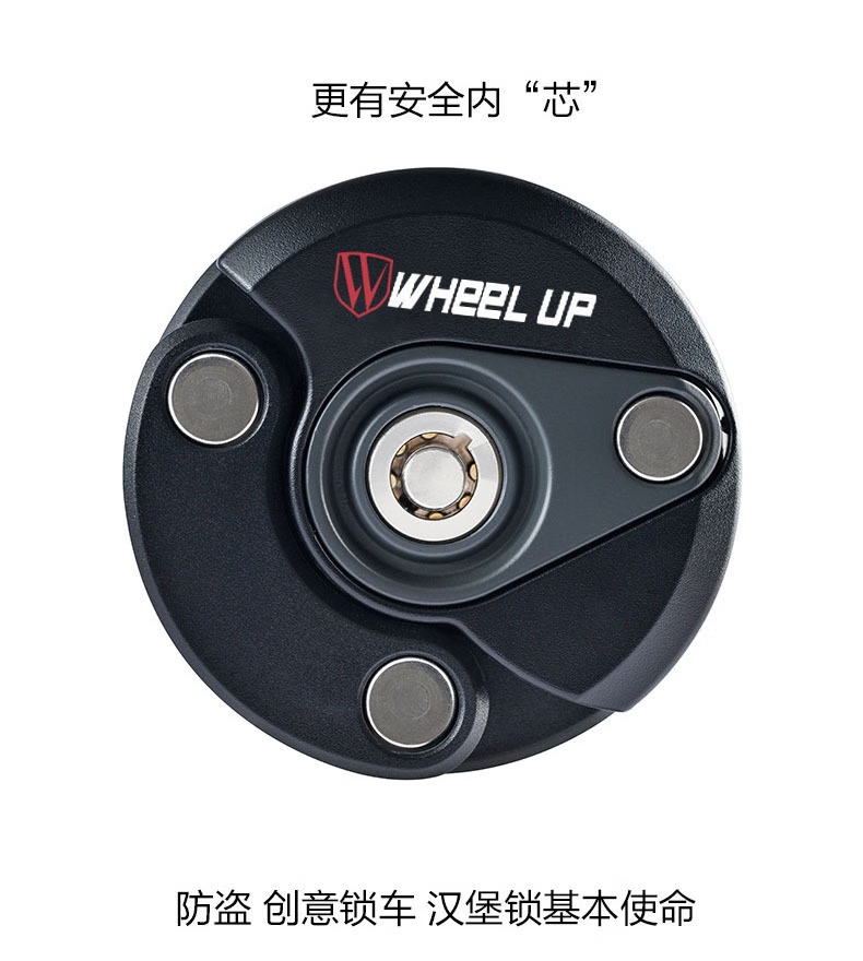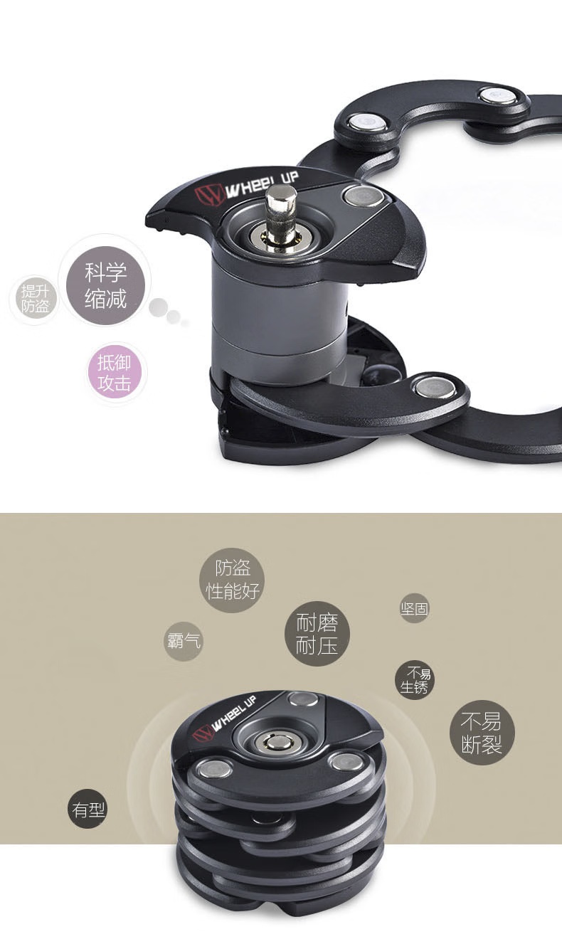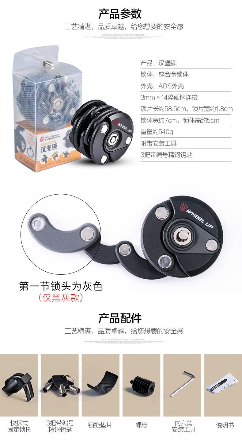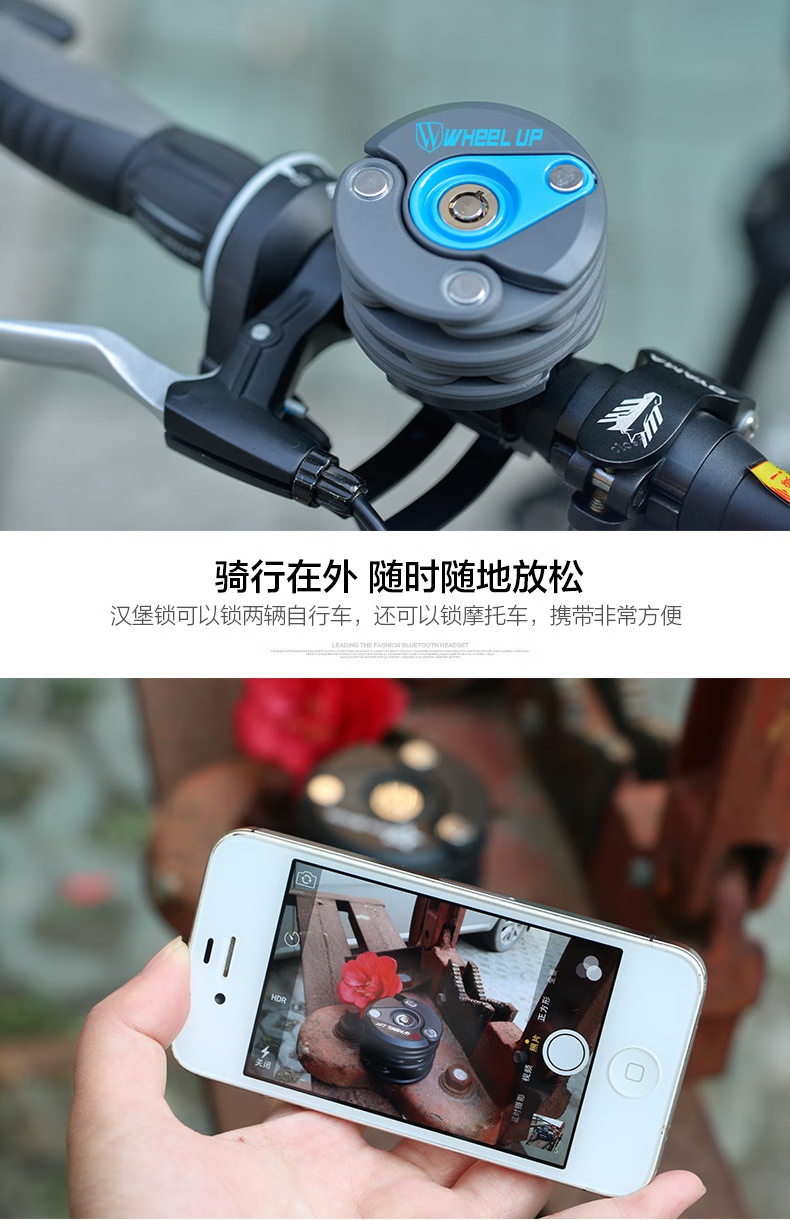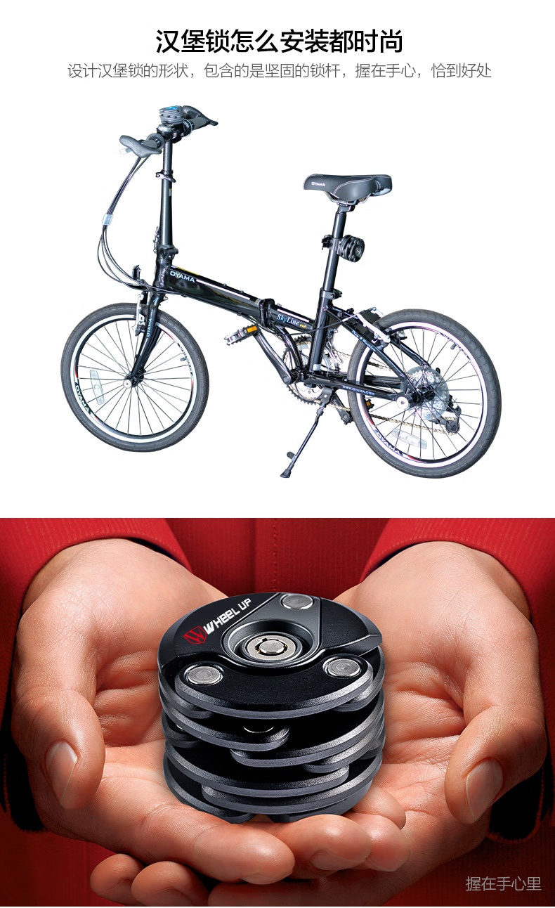 WHeeL UP 自行车锁防盗链条汉堡锁 迷你单车配件折叠锁【含汉堡锁+钥匙+锁架】黑灰款