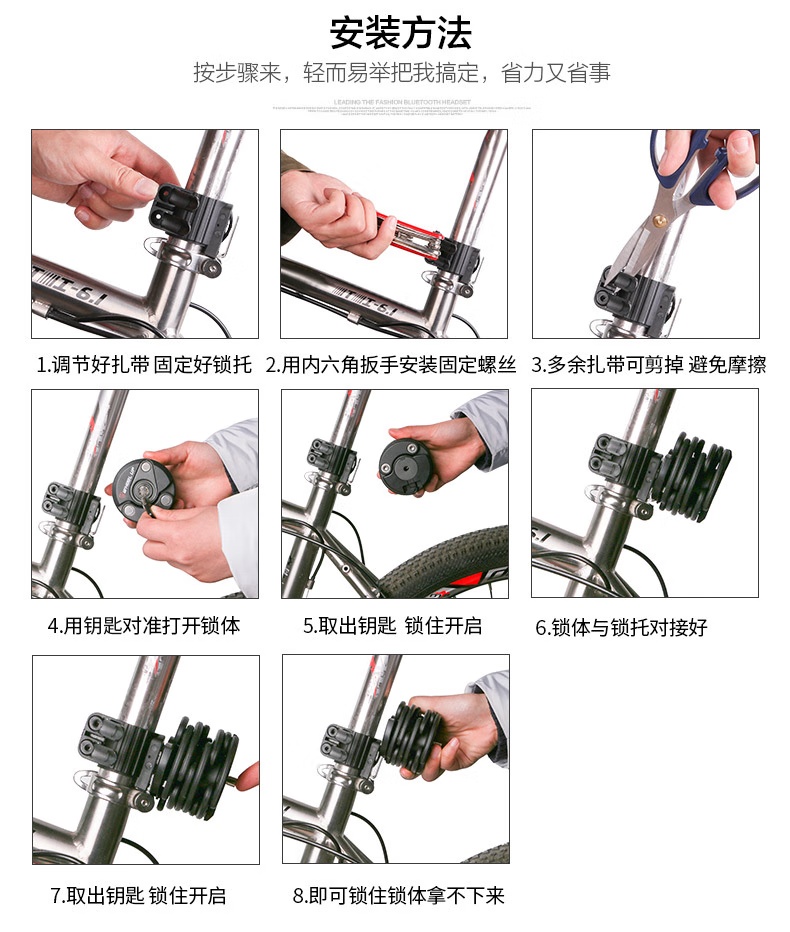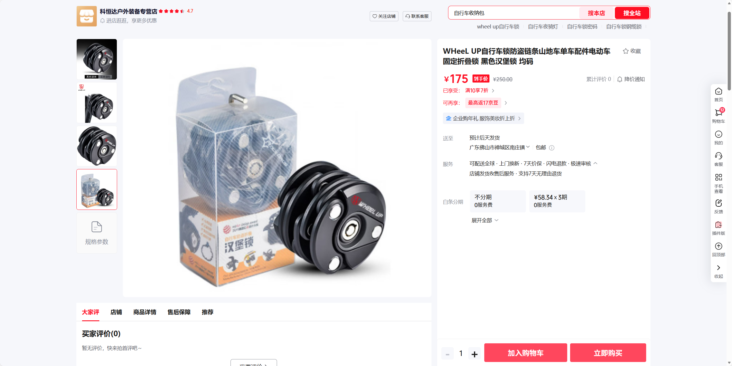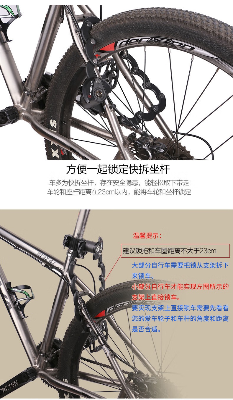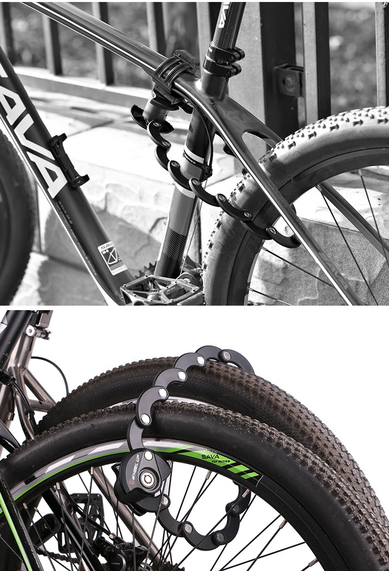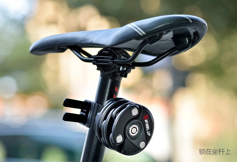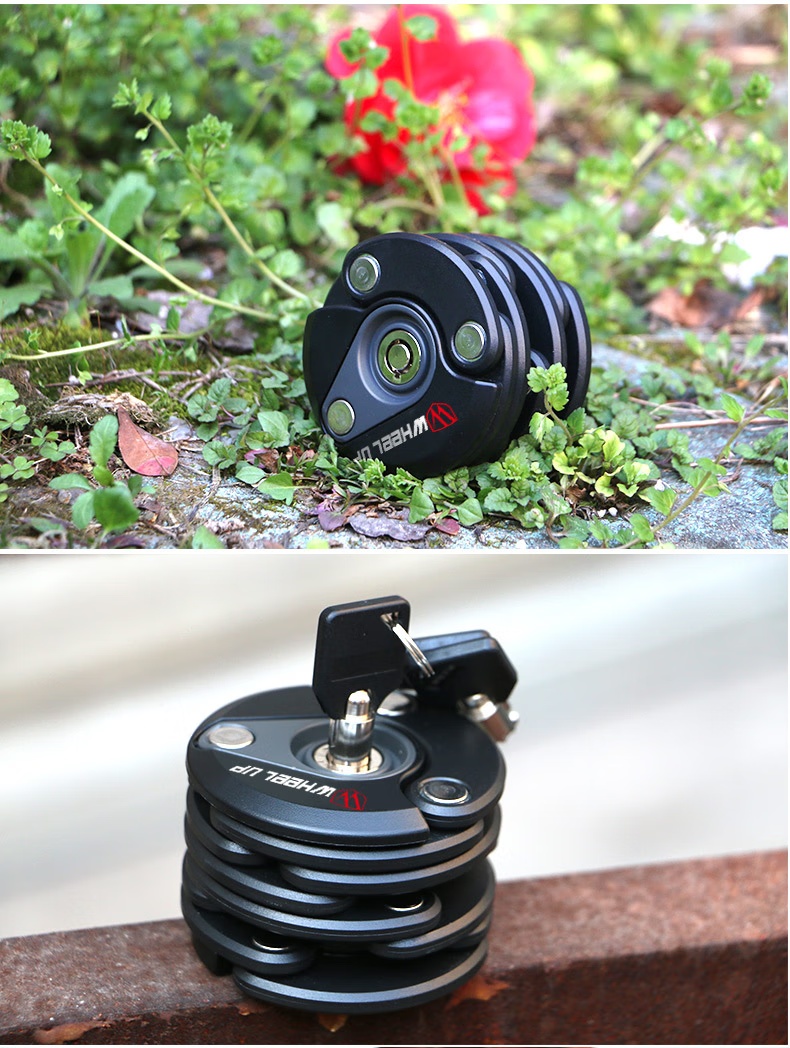 WHeeL UP 自行车锁防盗链条汉堡锁 迷你单车配件折叠锁【含汉堡锁+钥匙+锁架】黑灰款