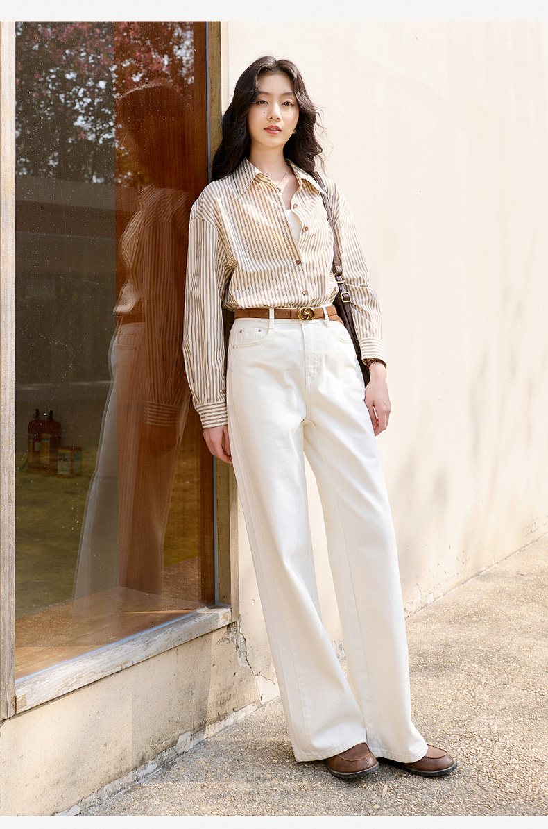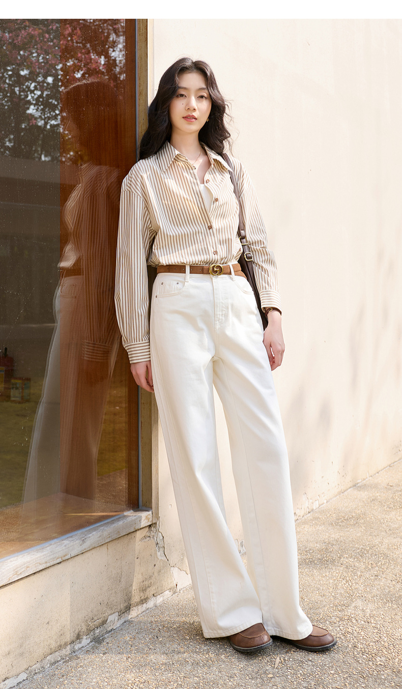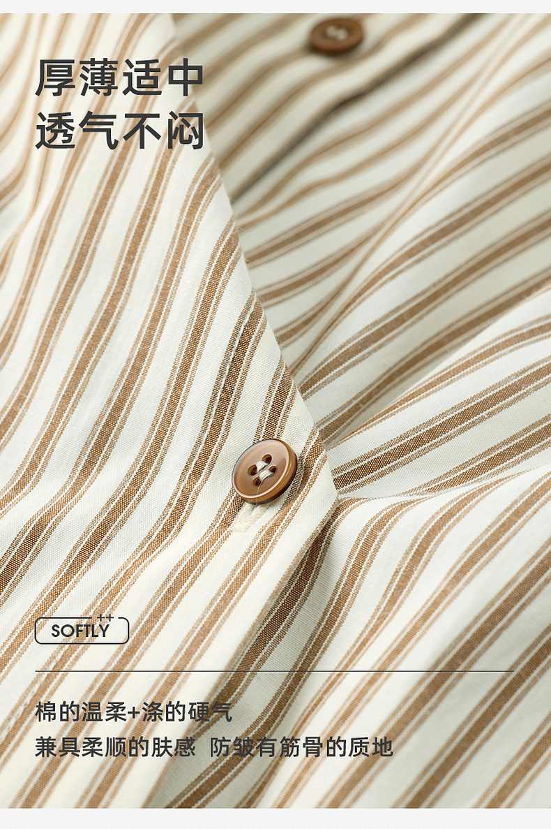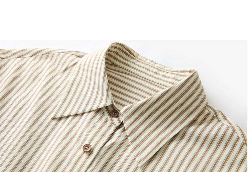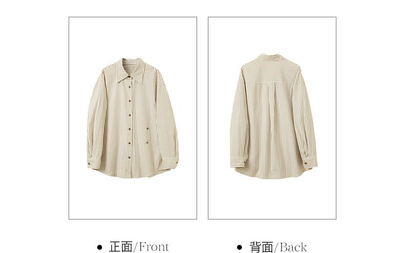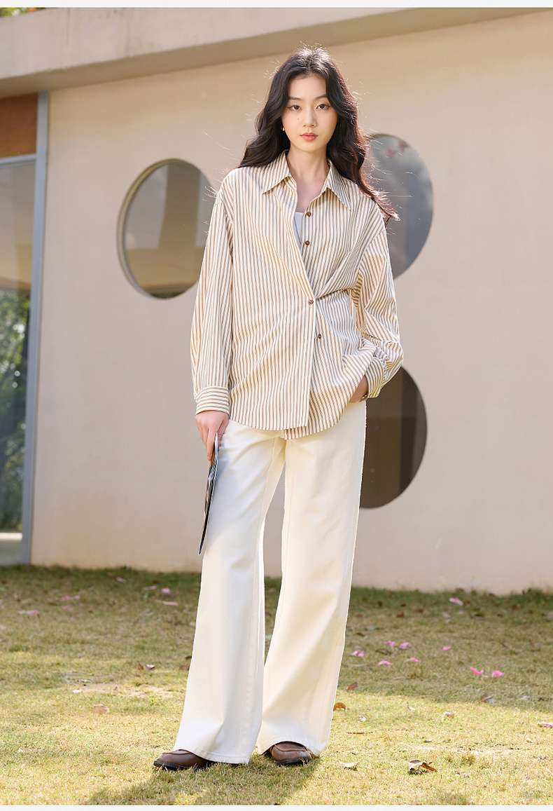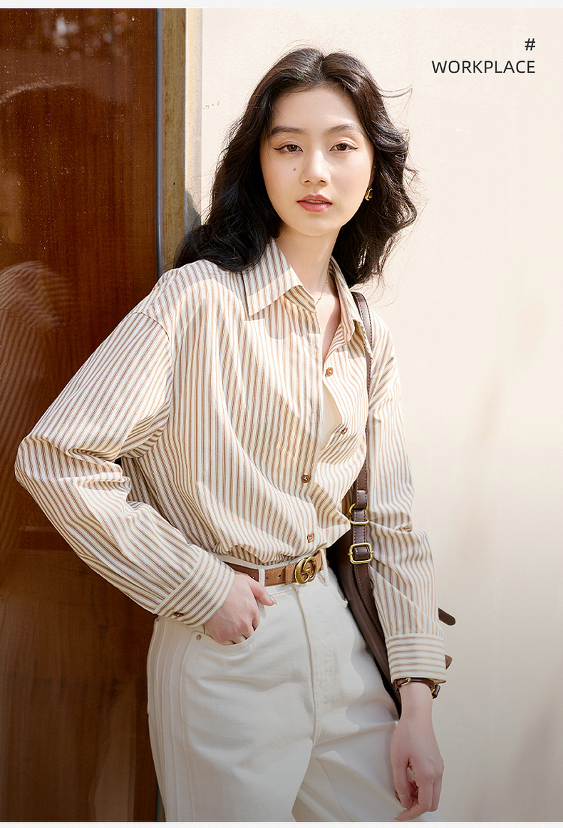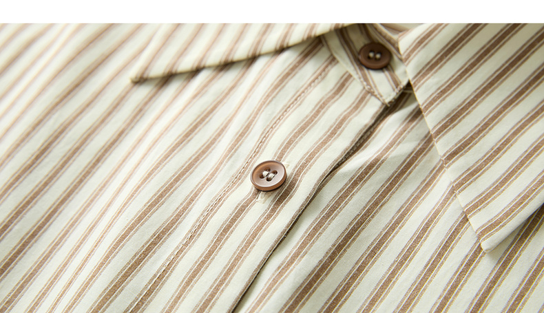 三彩2026春季新款翻领条纹衬衣宽松中长衬衫小衫气质上衣通勤S