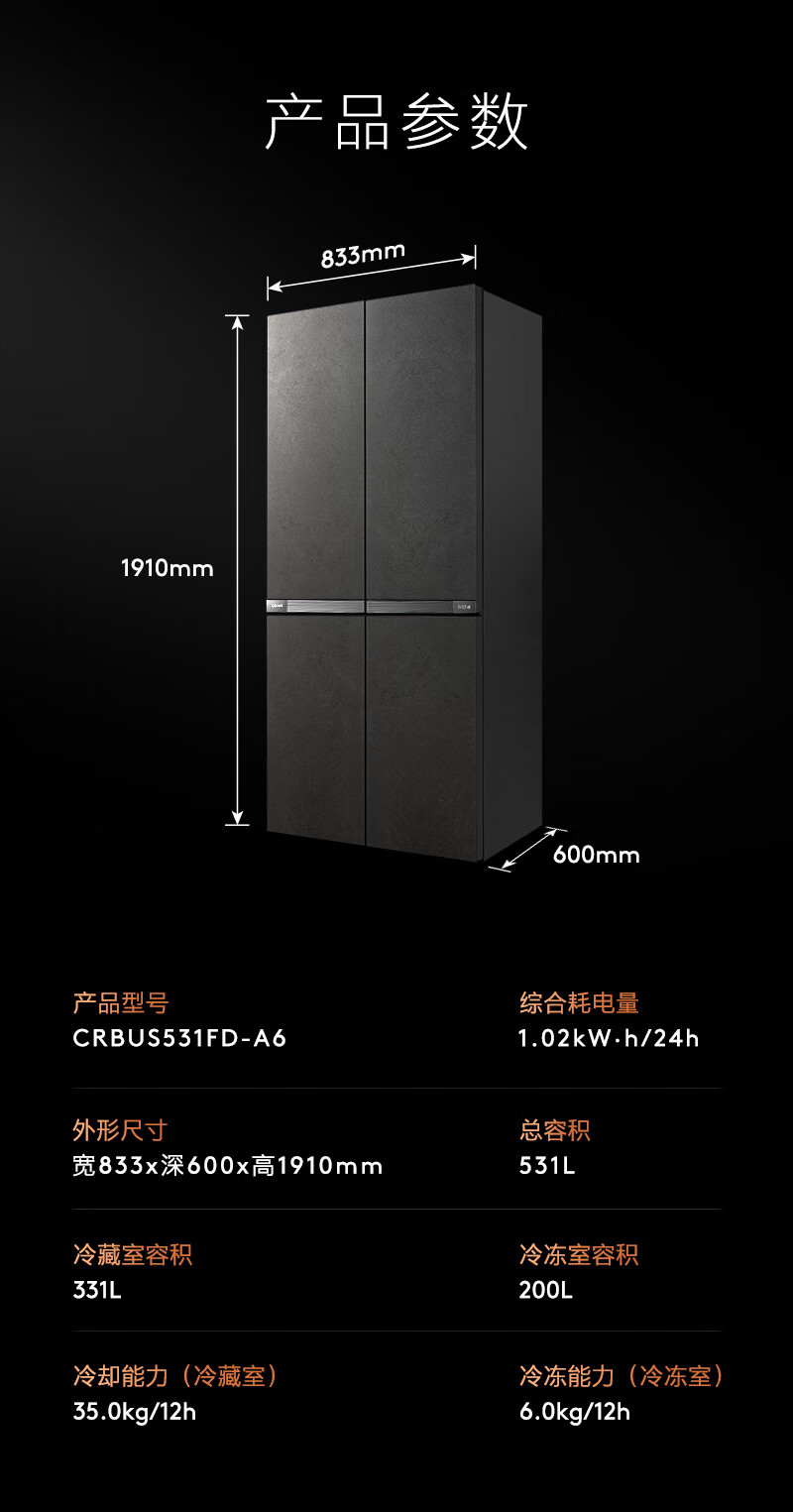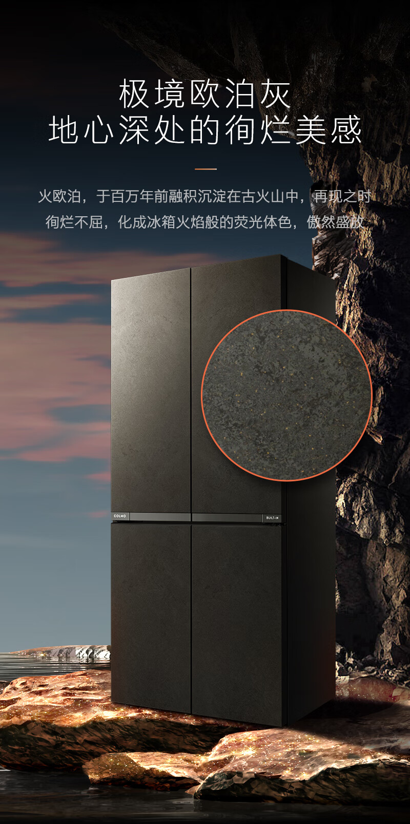 COLMO冰箱531升十字对开四门超薄纯平全嵌变频一级能效智能高端冰箱CRBUS531FD-A6欧泊灰