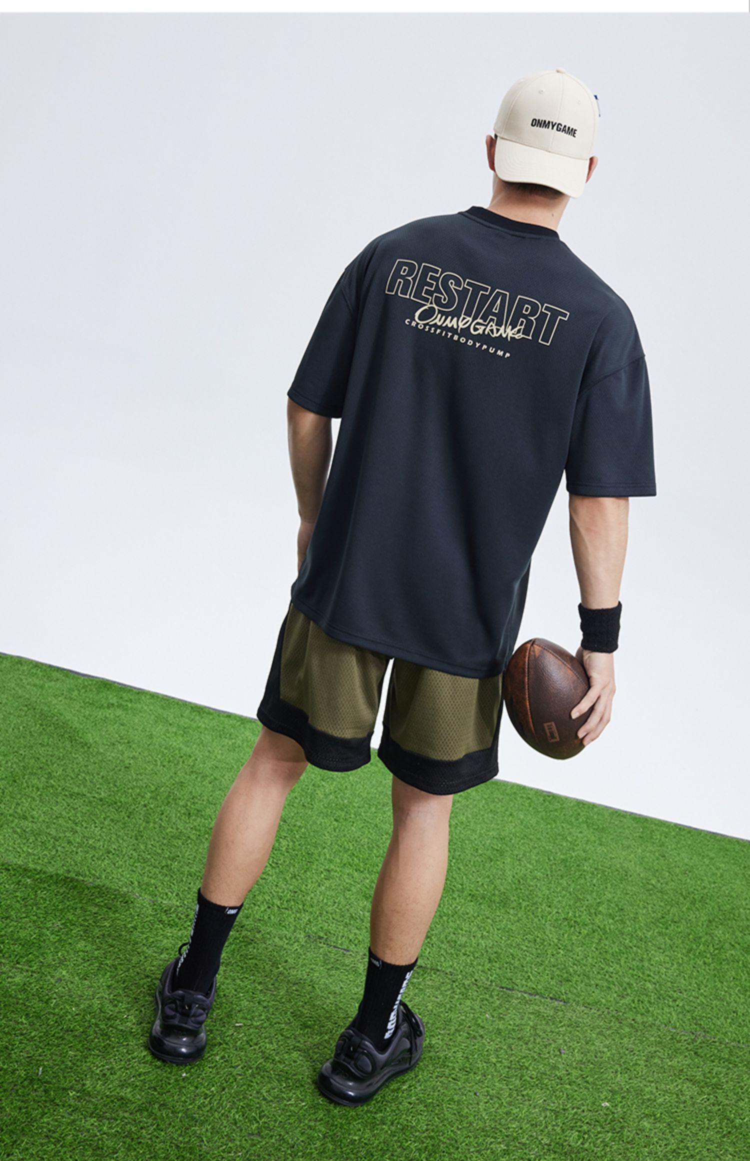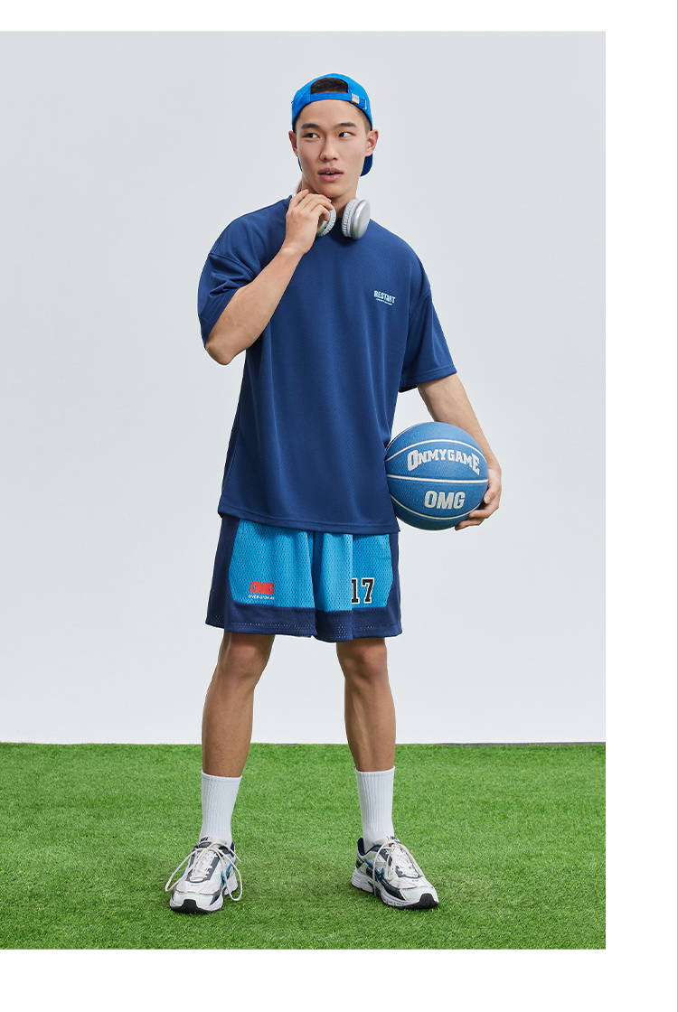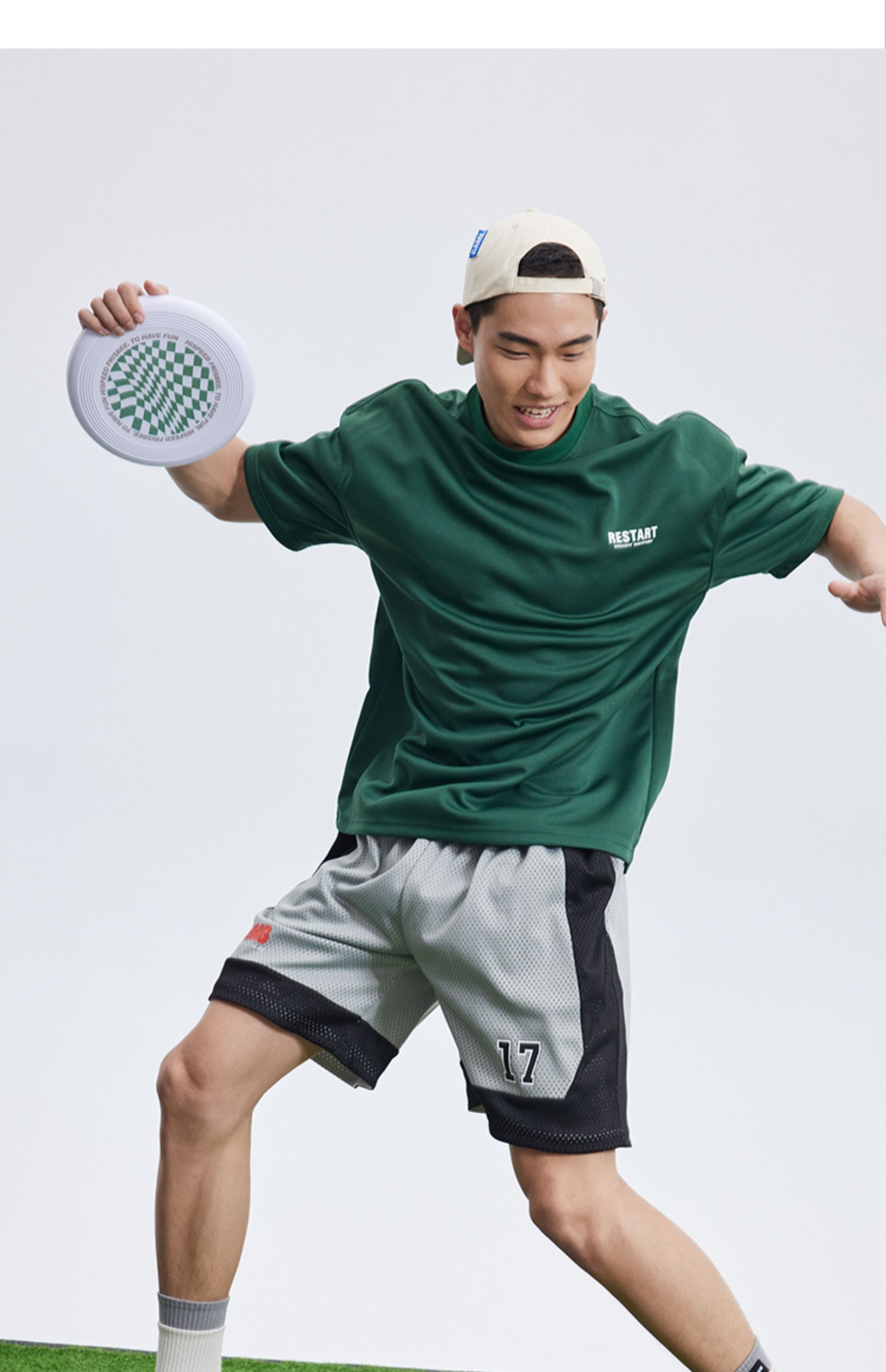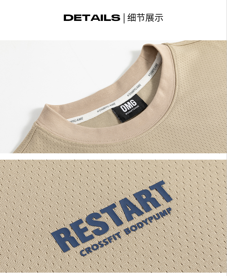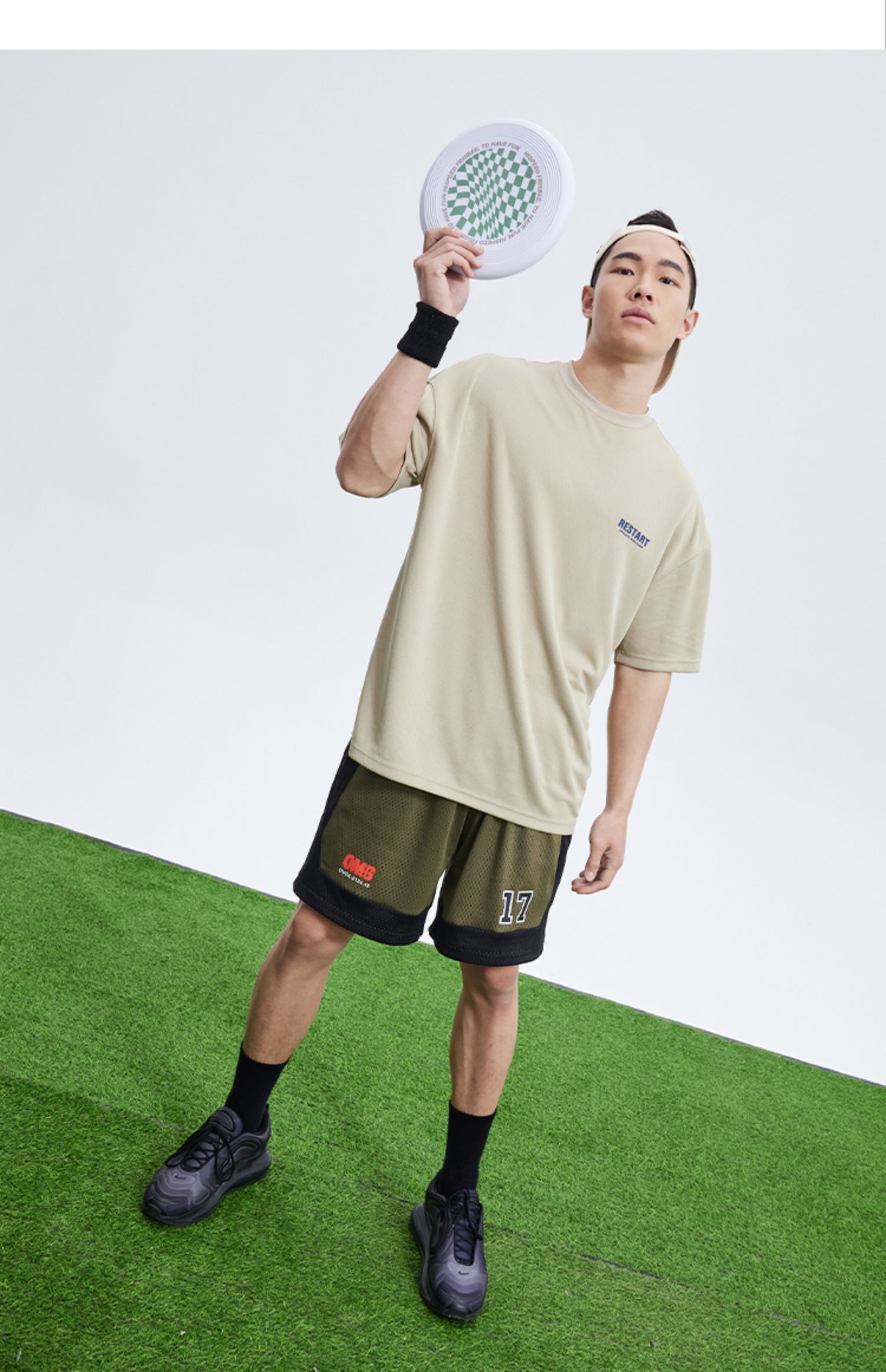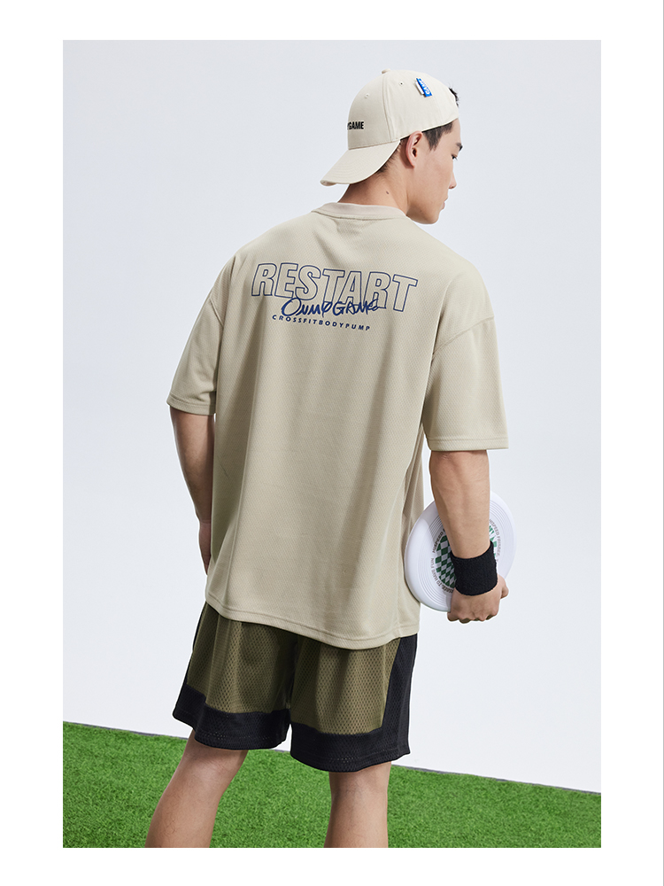 OMG运动 夏季透气T恤男宽松网孔短袖训练速干篮球服飞盘衣服半袖