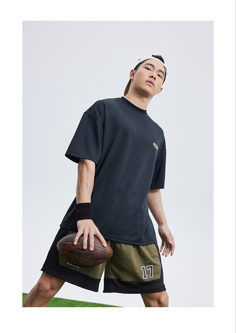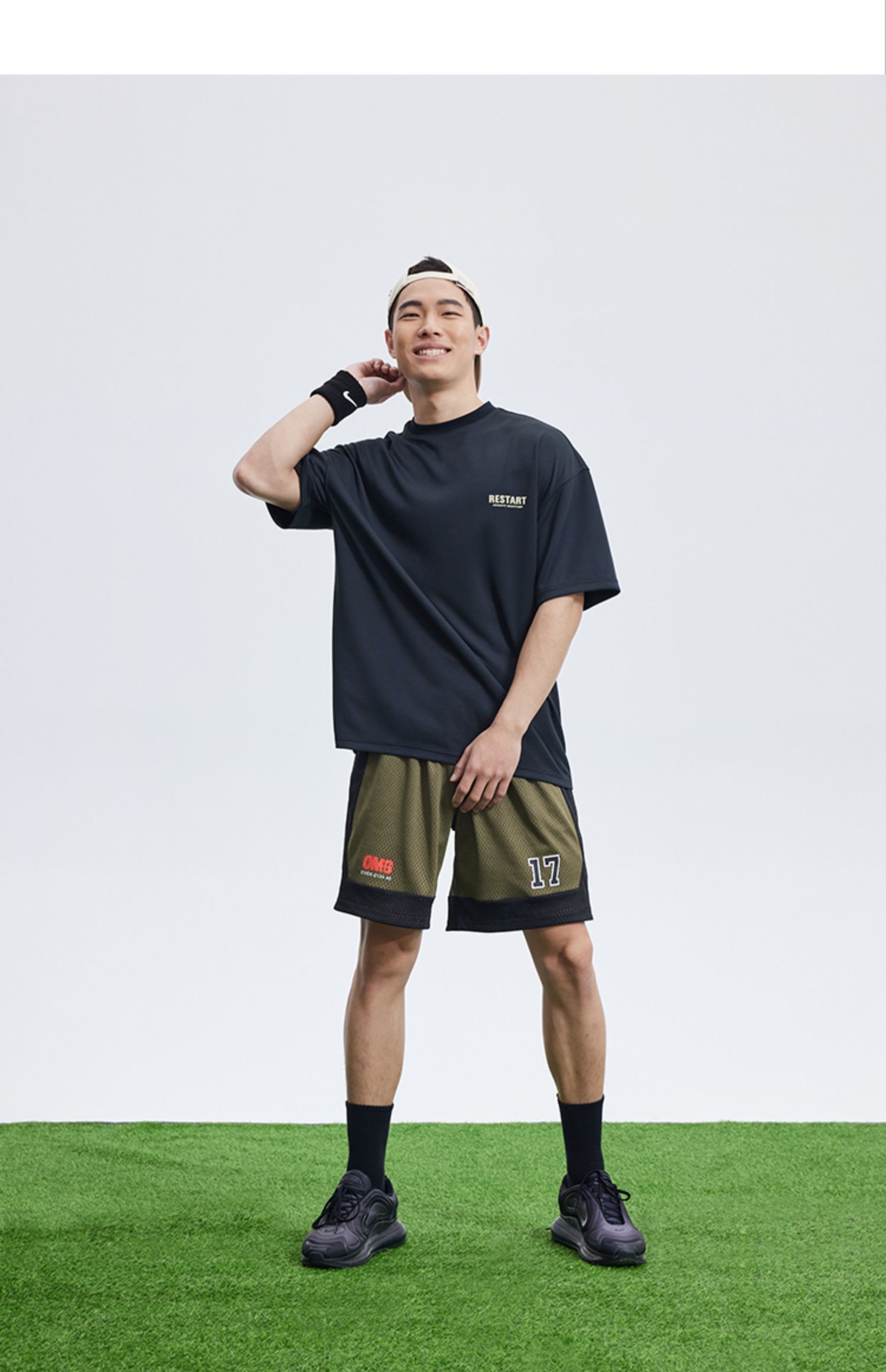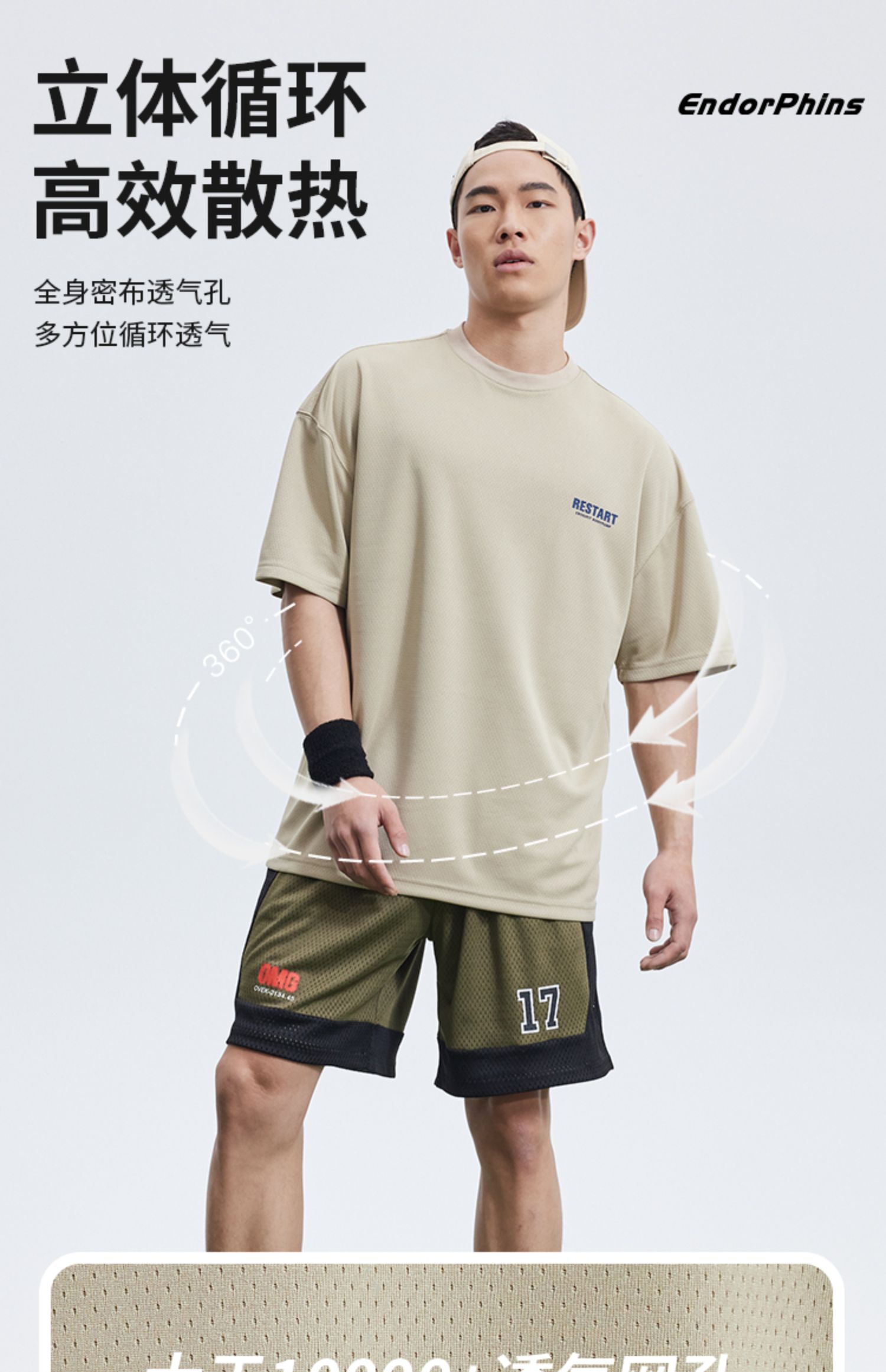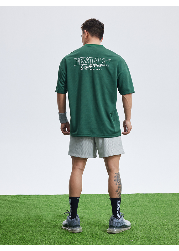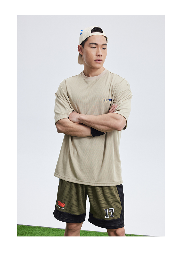 OMG运动 夏季透气T恤男宽松网孔短袖训练速干篮球服飞盘衣服半袖