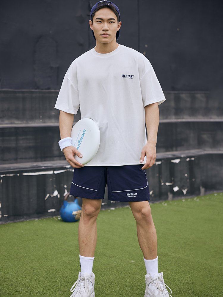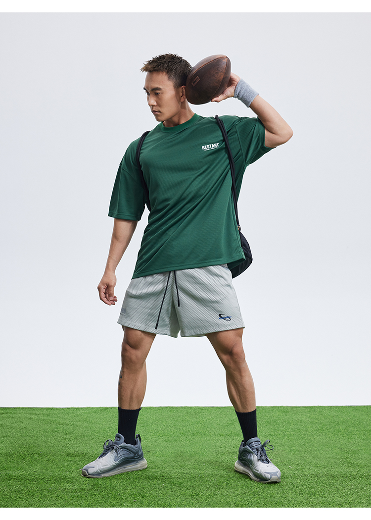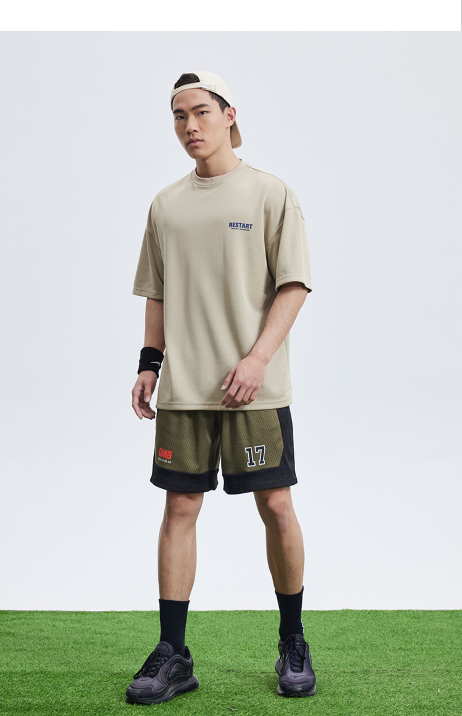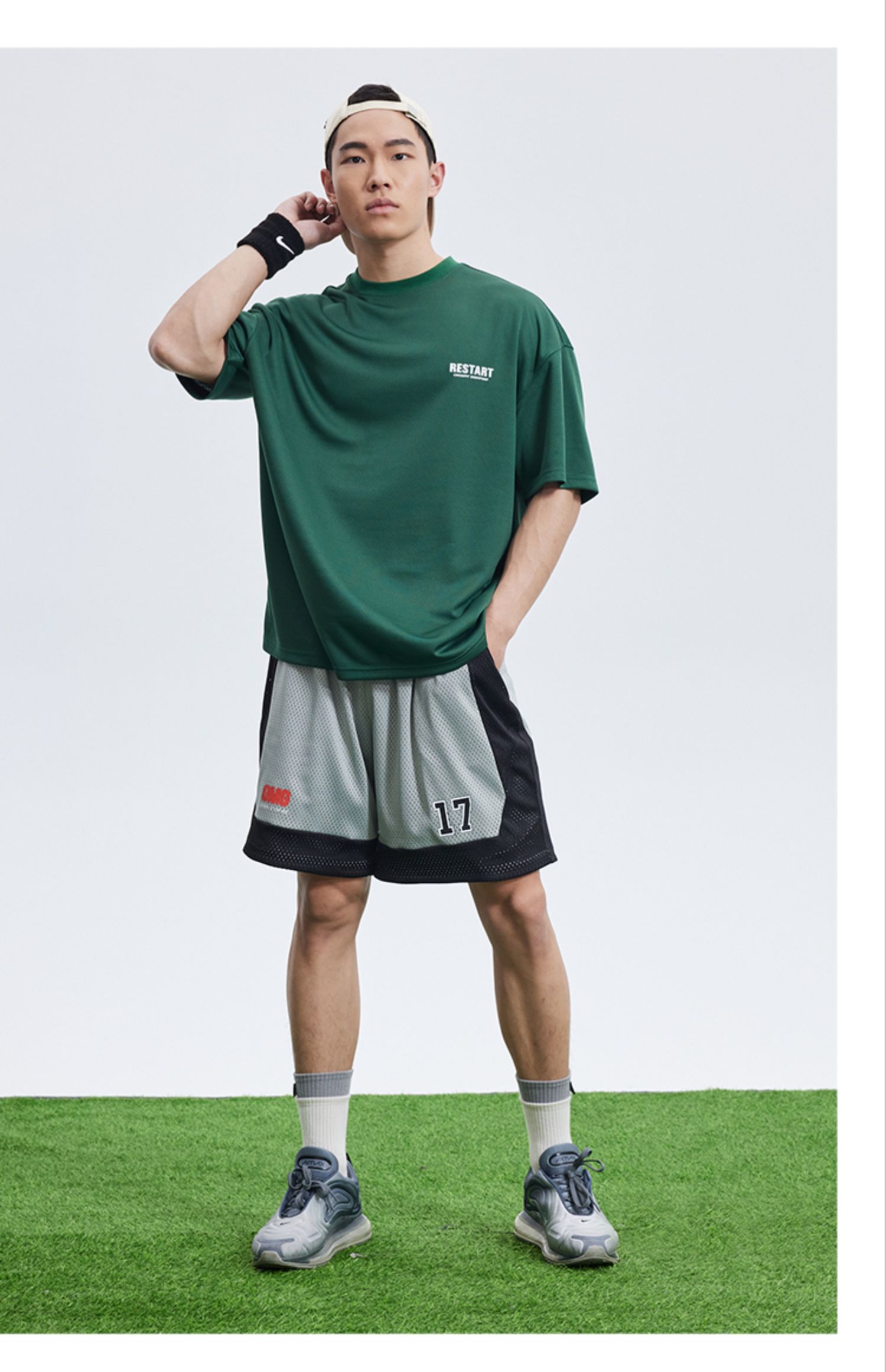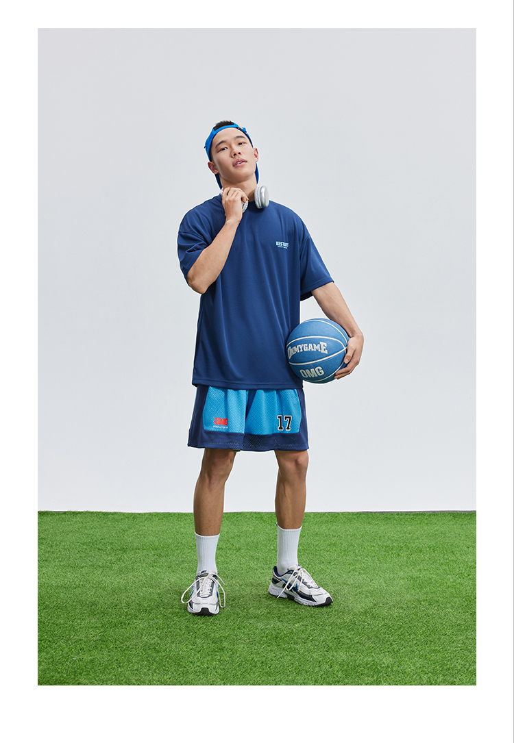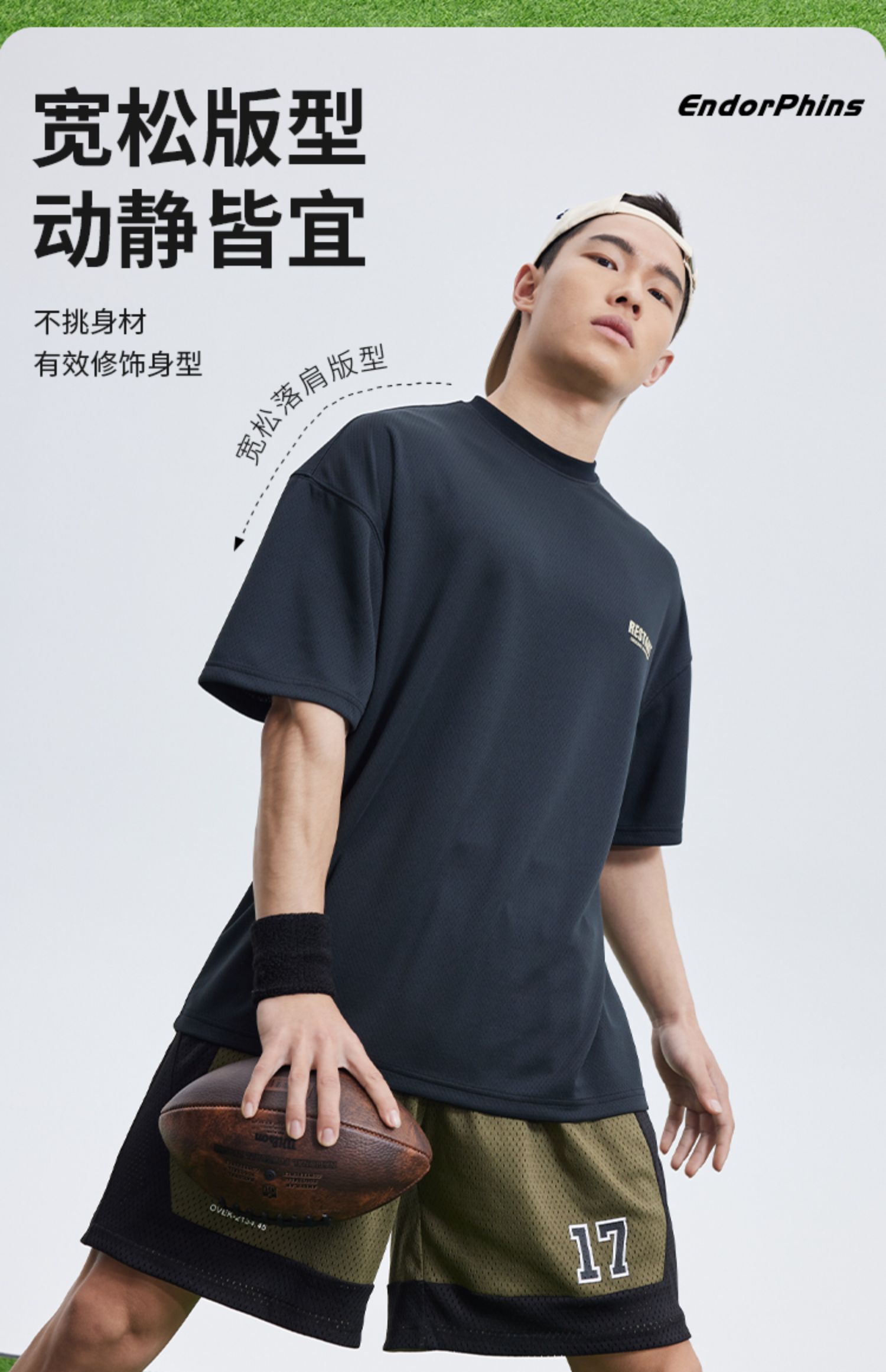 OMG运动 夏季透气T恤男宽松网孔短袖训练速干篮球服飞盘衣服半袖