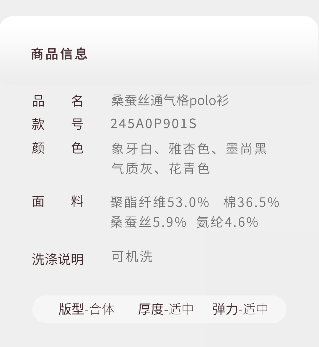【龙鳞春羽】5A桑蚕丝鳞息凉感Polo衫255X0P921S[T]