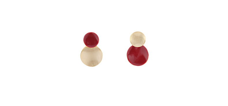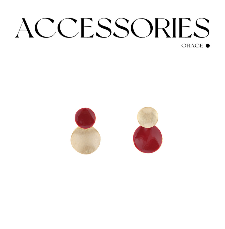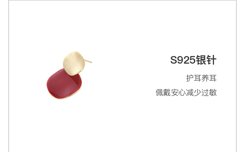 三彩2025新款法式安可拉红不对称耳环S925银针简约圆片拉丝优雅