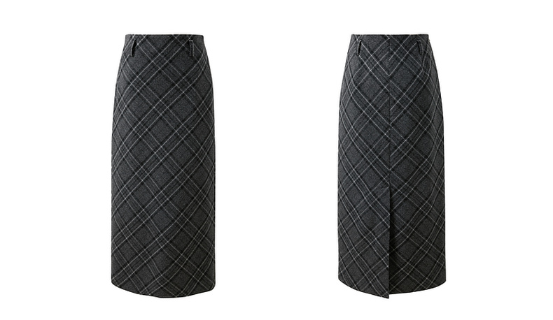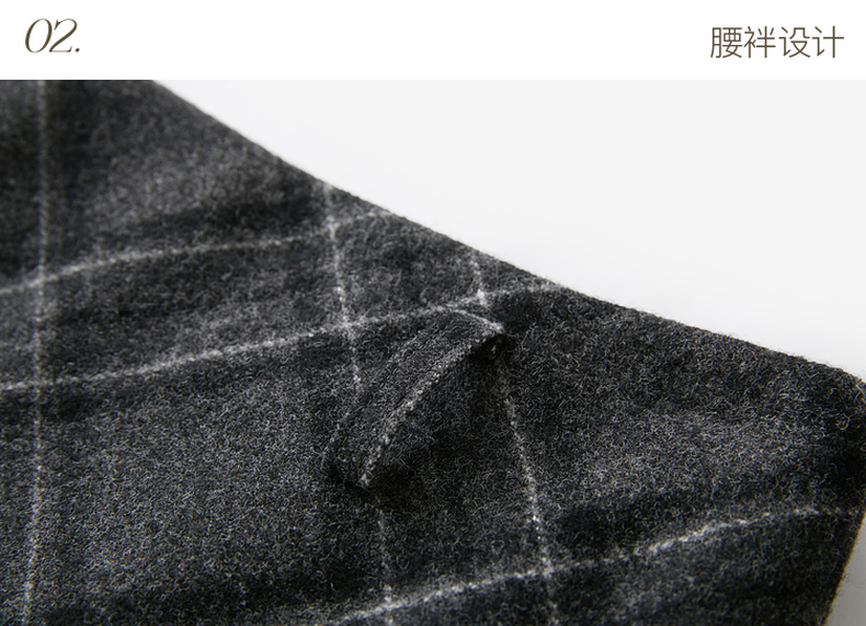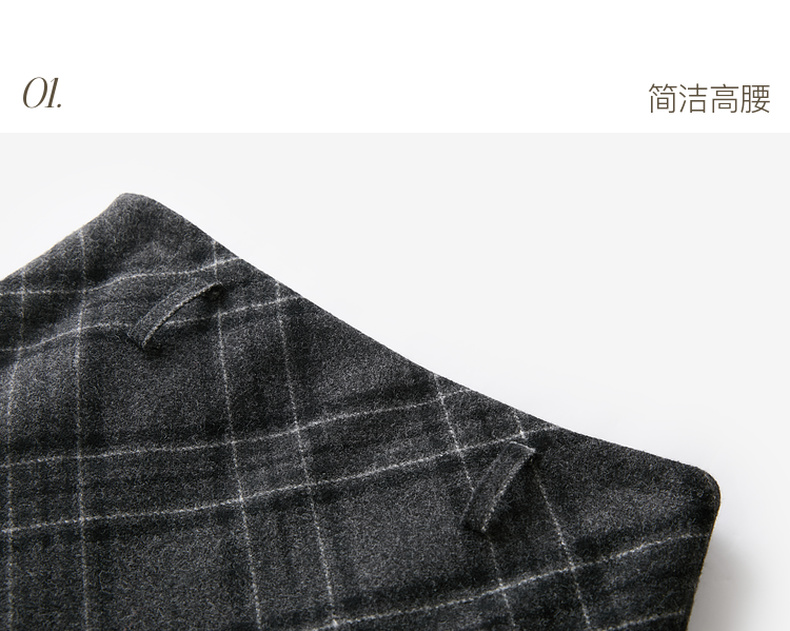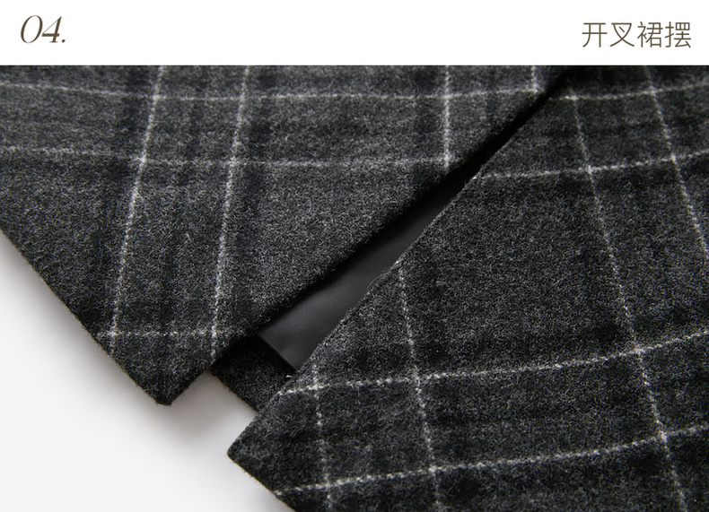 三彩2025冬季新款高腰半身裙直筒裙复古格纹毛呢长裙开叉简约M