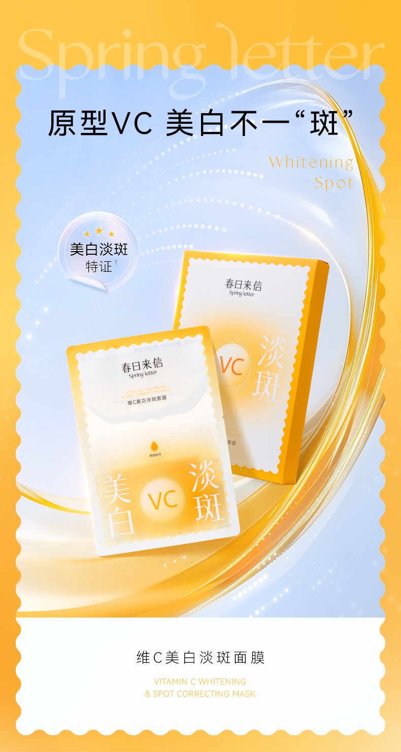 【春日来信】VC美白淡斑面膜,原型VC美白淡斑面膜,7天色斑痘印淡下去。