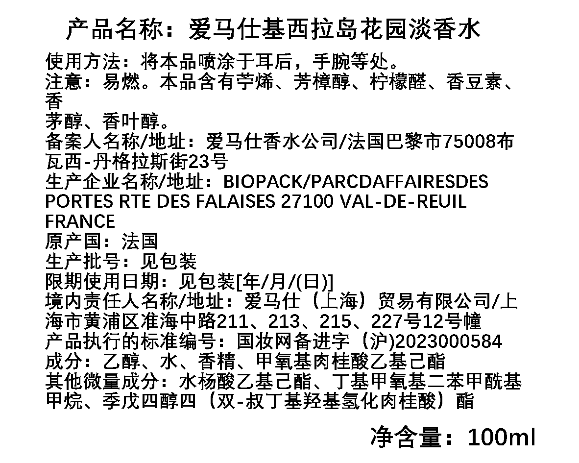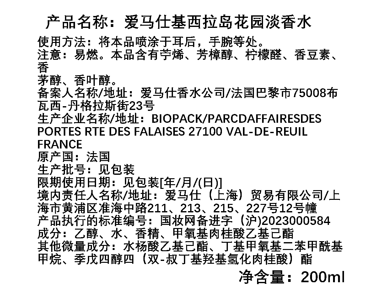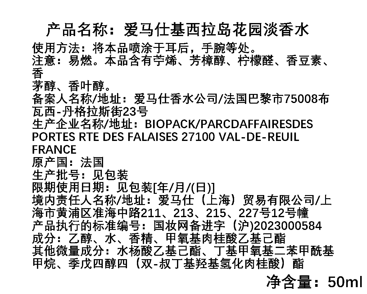 Hermes爱马仕 基西拉岛/西苔岛花园香水
