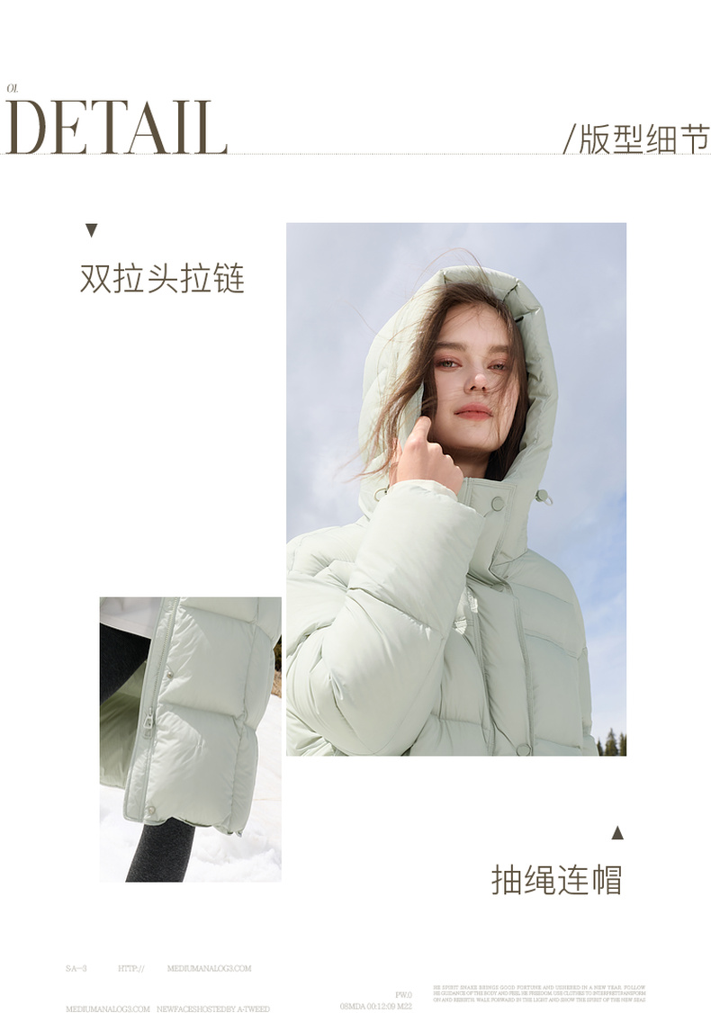 【防水易打理】三彩2025冬季新款90白鸭绒羽绒服宽松长款被子服M