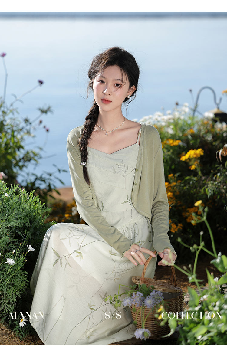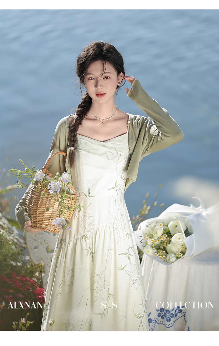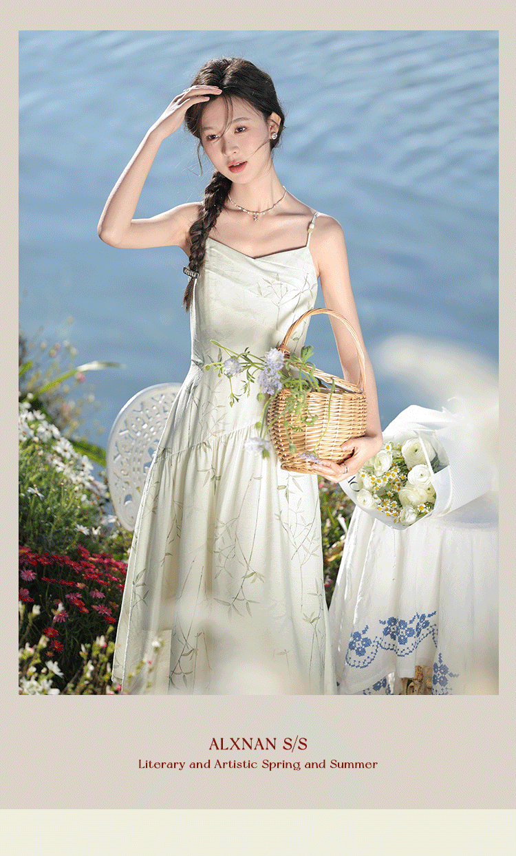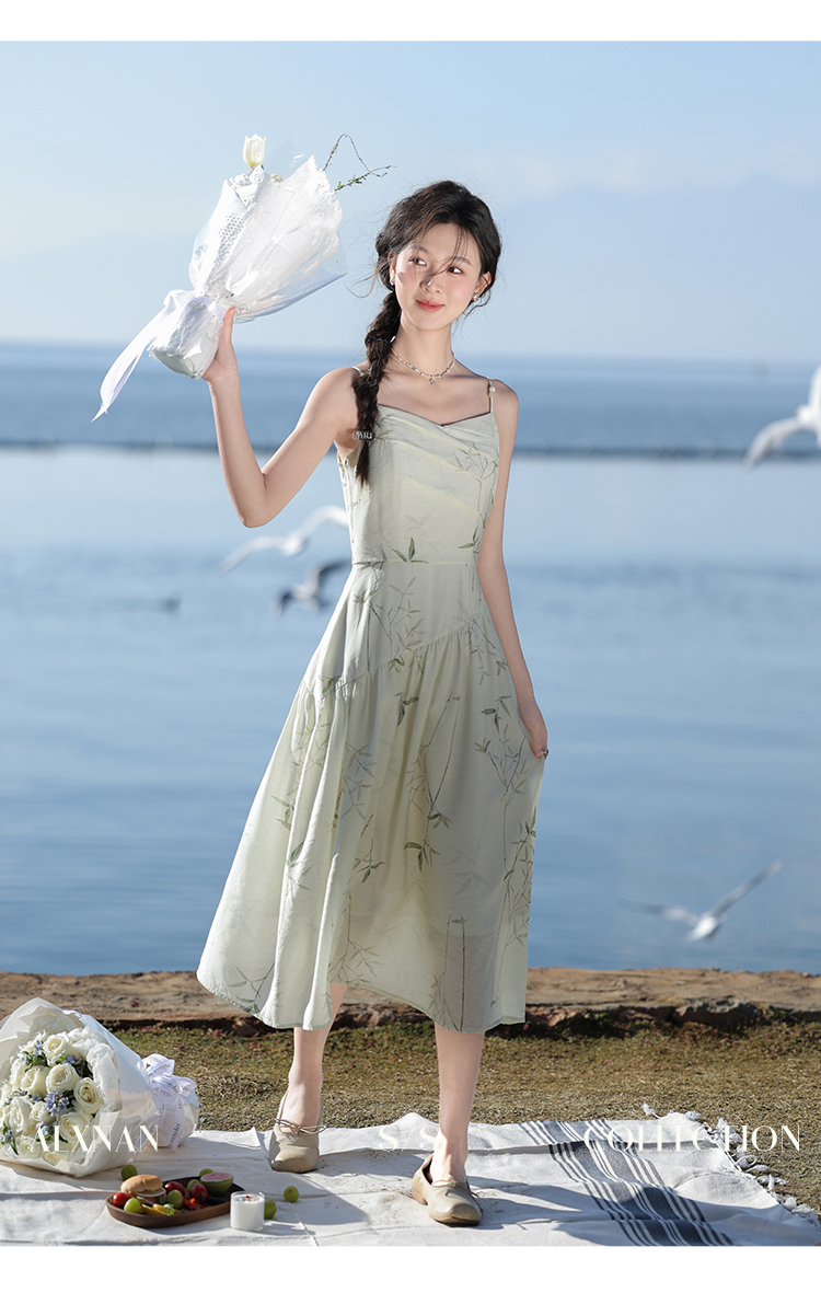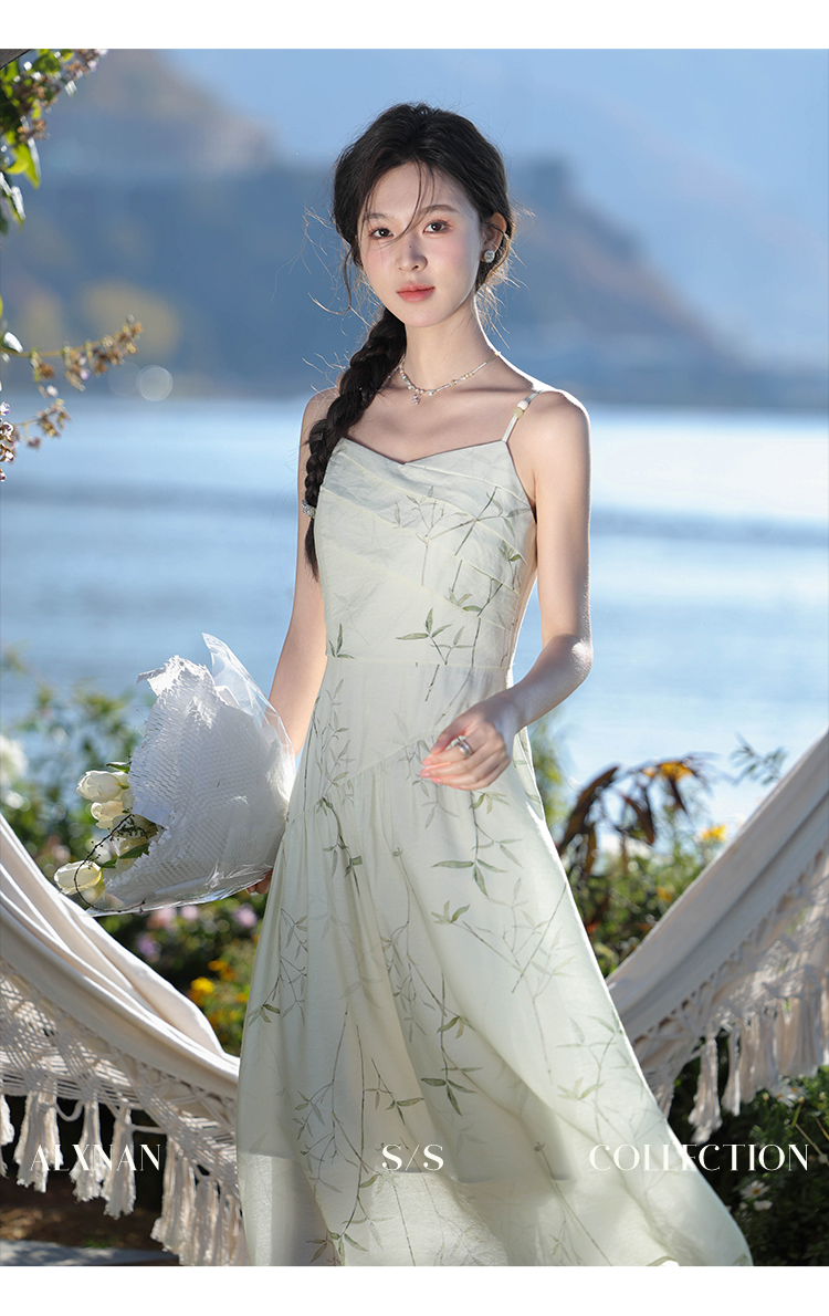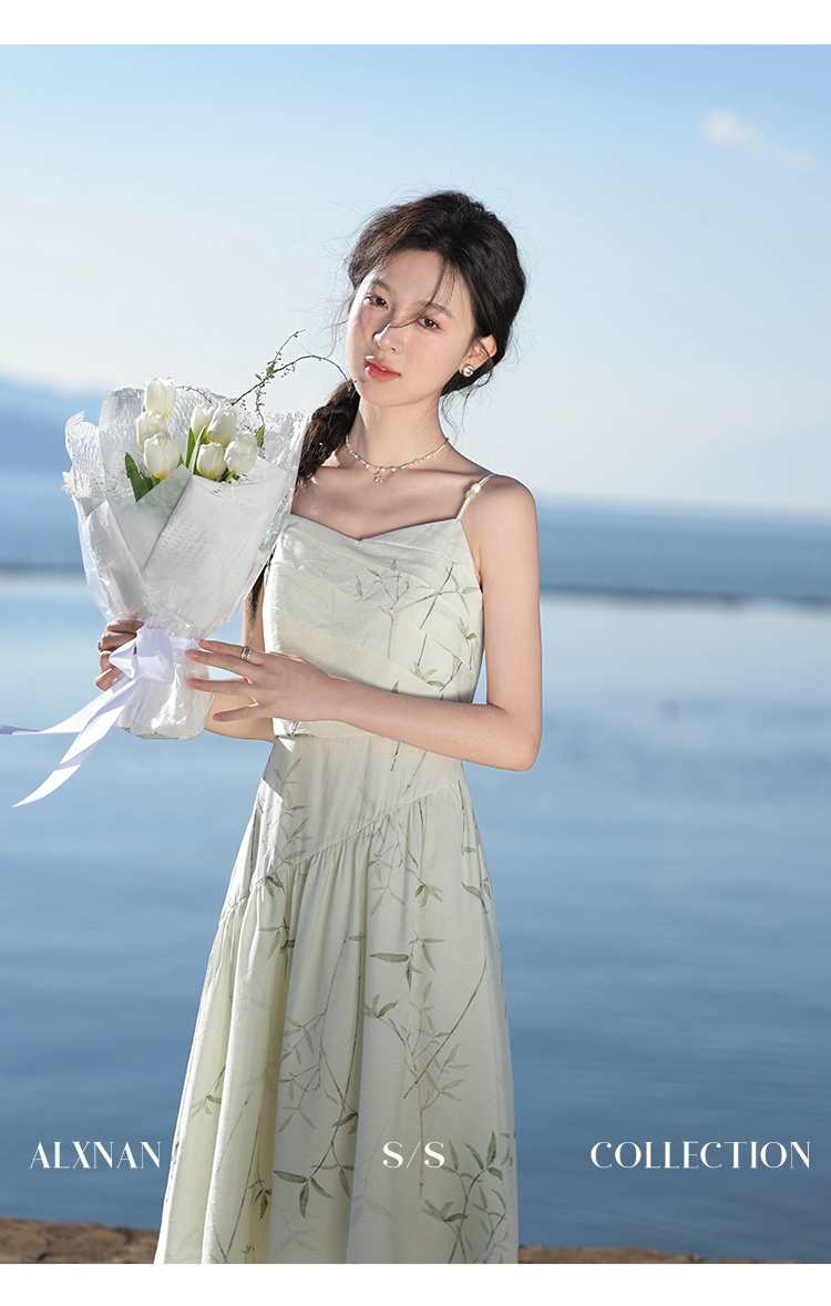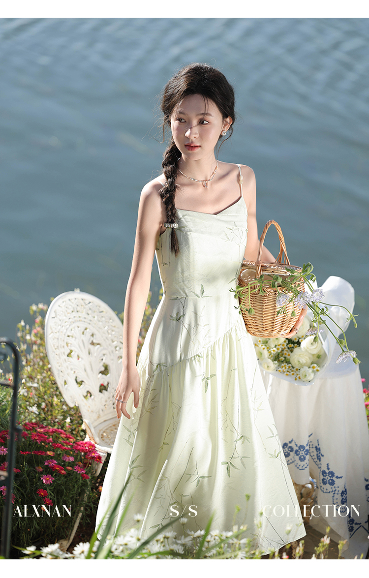 【6折秒杀】鹿向南《青竹翠林》法式气质连衣裙女早春新款洋气漂亮吊带裙L33702