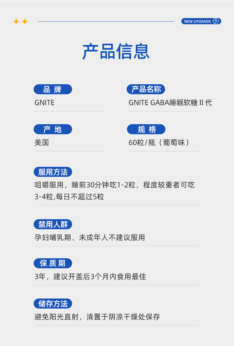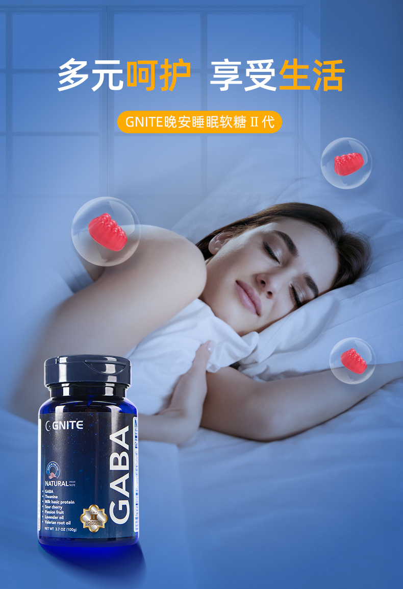 严选 | 美国GNITE GABA 睡眠软糖2代 60粒/瓶 葡萄味 100mg GABA/粒
