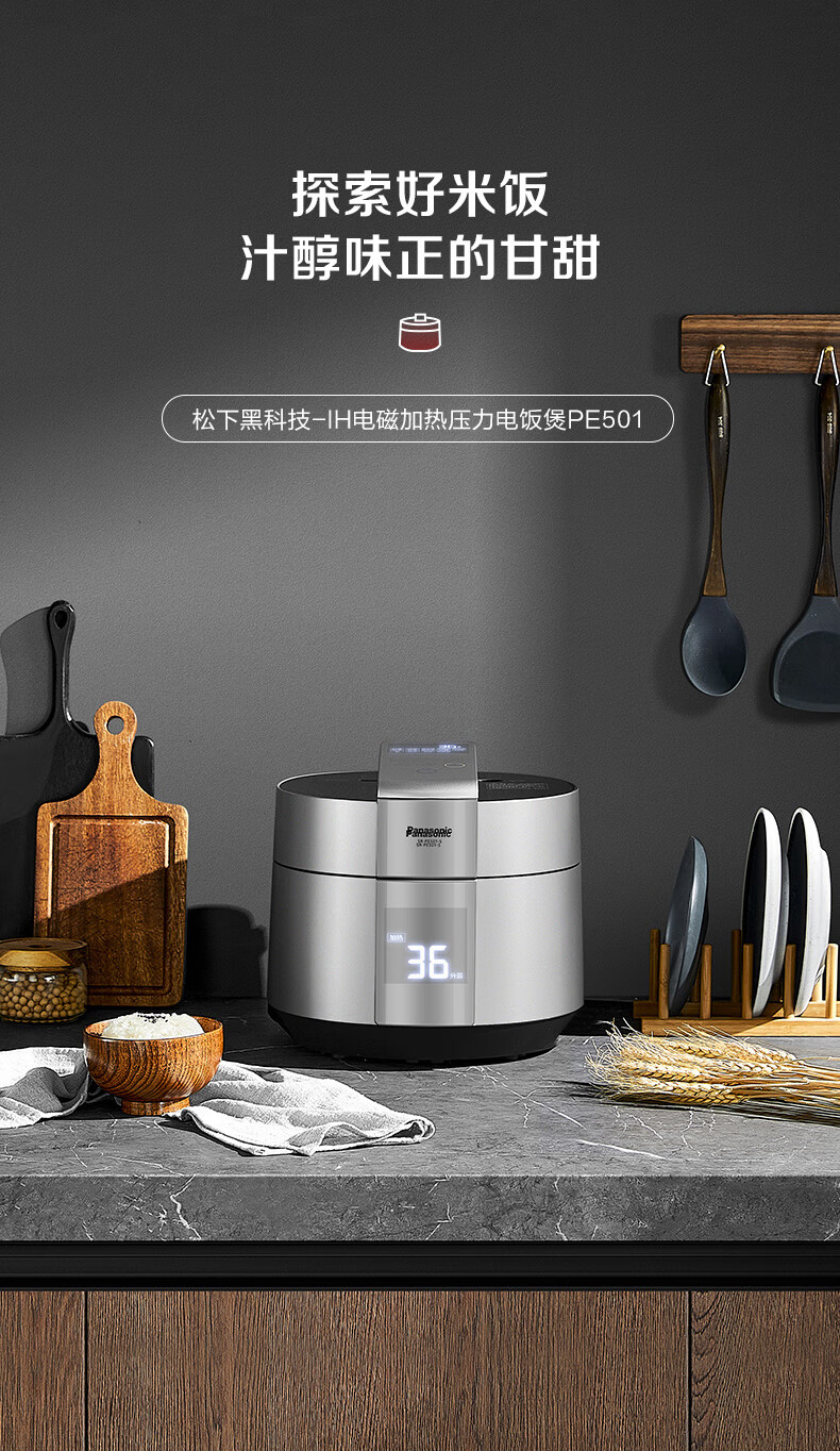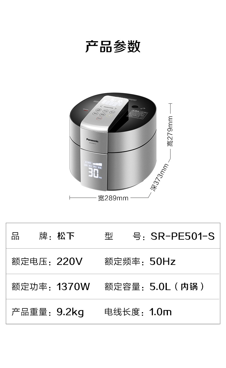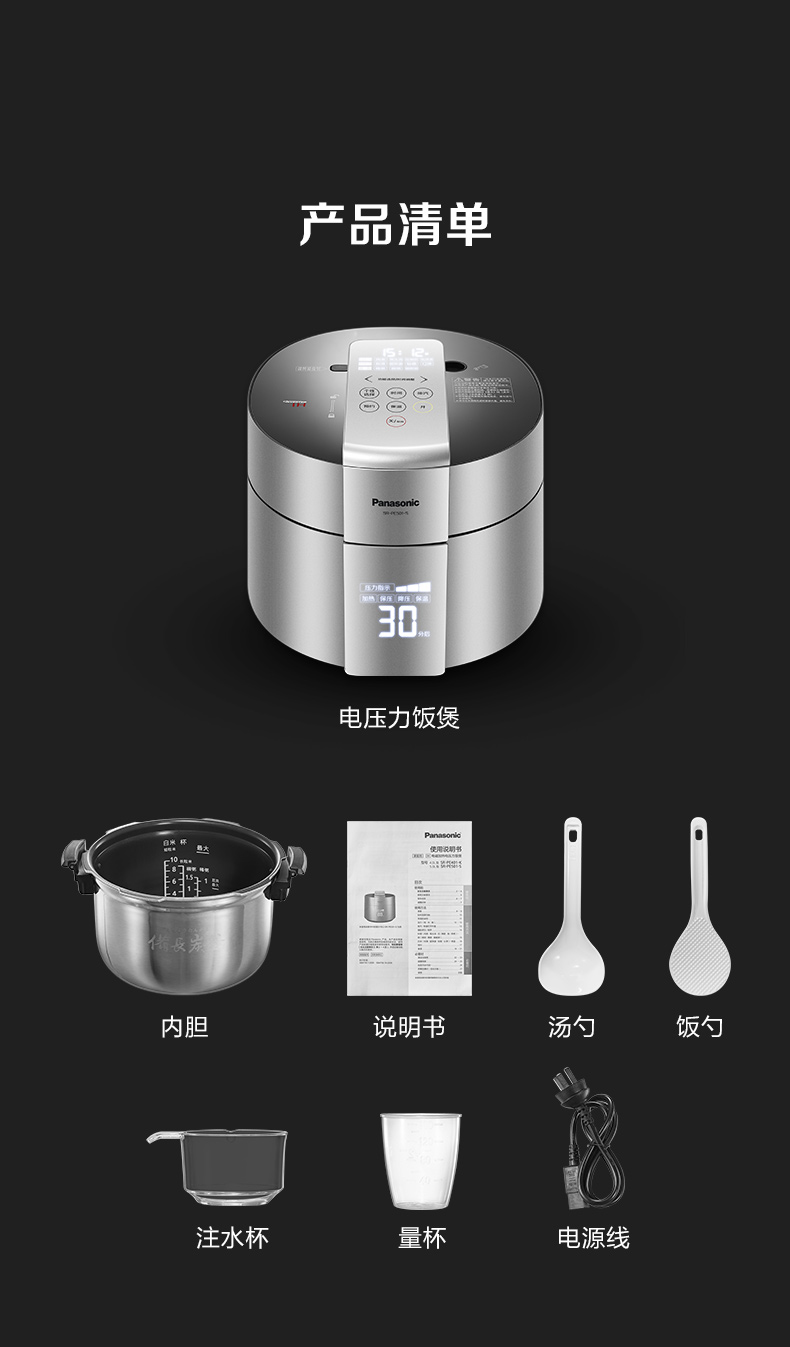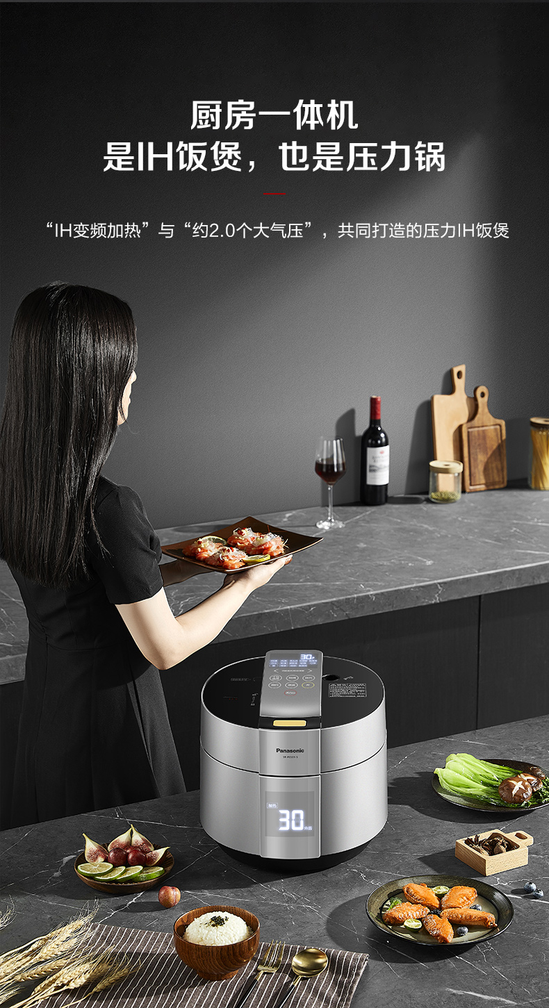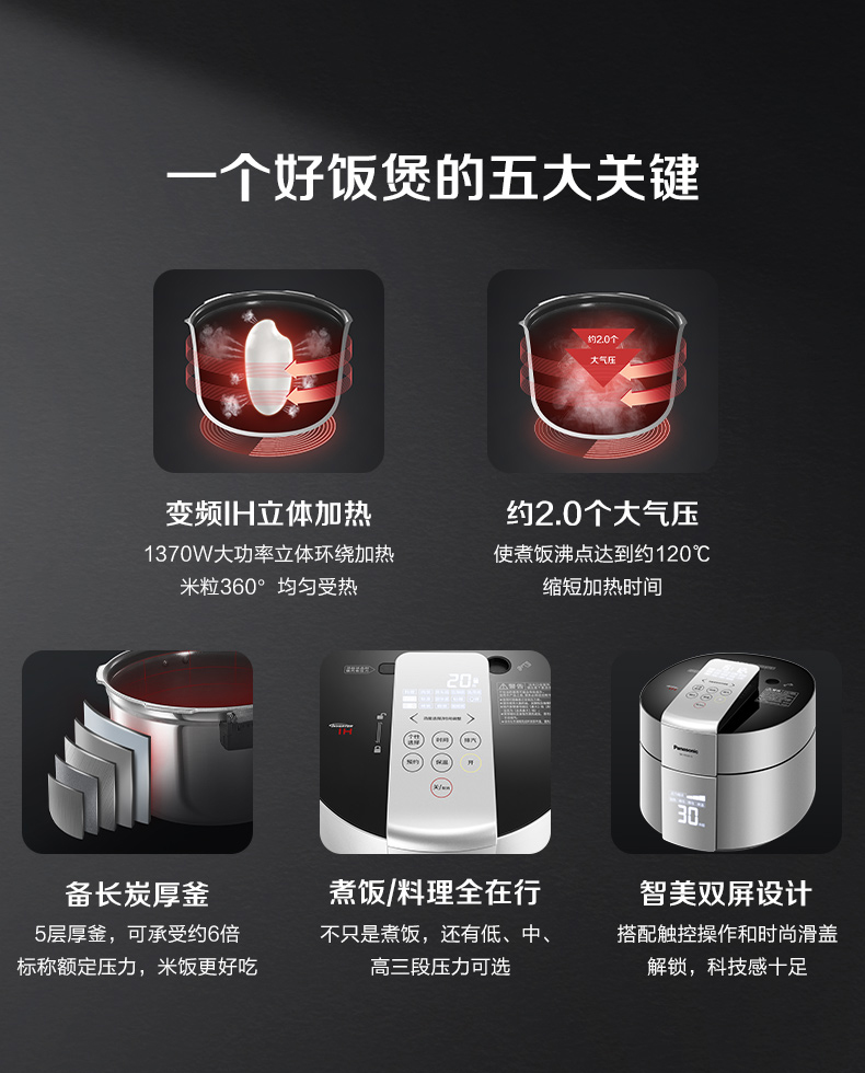 松下(Panasonic)5L电饭煲 家用IH电饭锅 智能米量判定 三段压力可选 24H可预约 SR-PE501-S