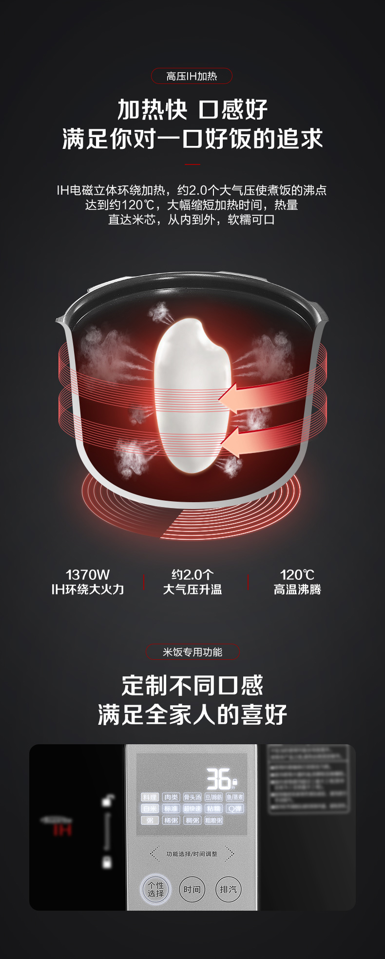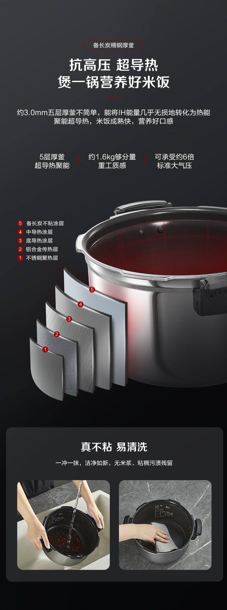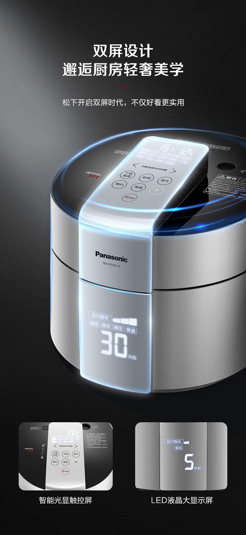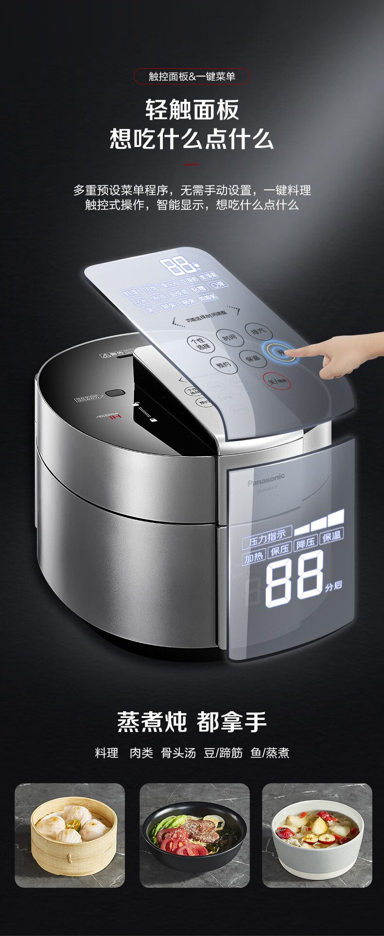松下(Panasonic)5L电饭煲 家用IH电饭锅 智能米量判定 三段压力可选 24H可预约 SR-PE501-S