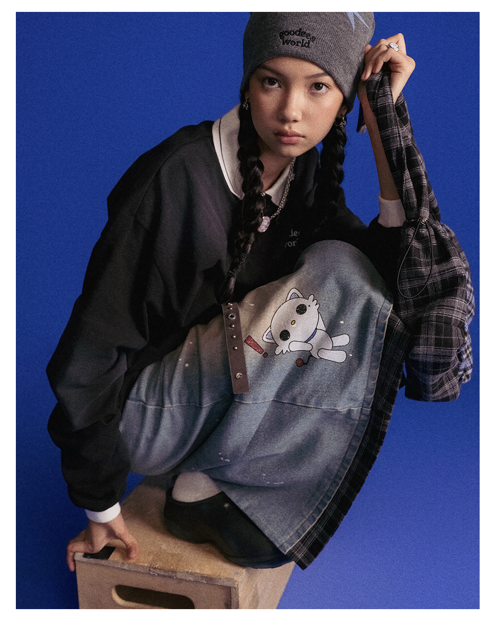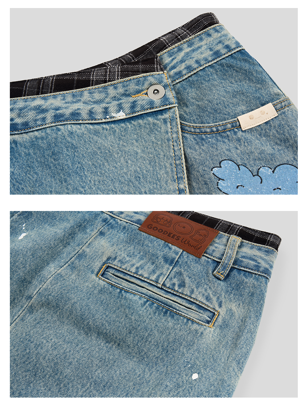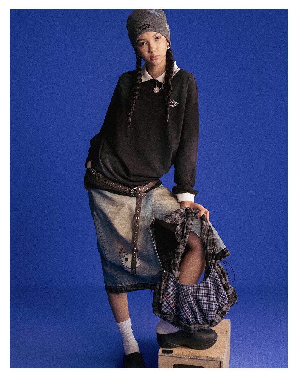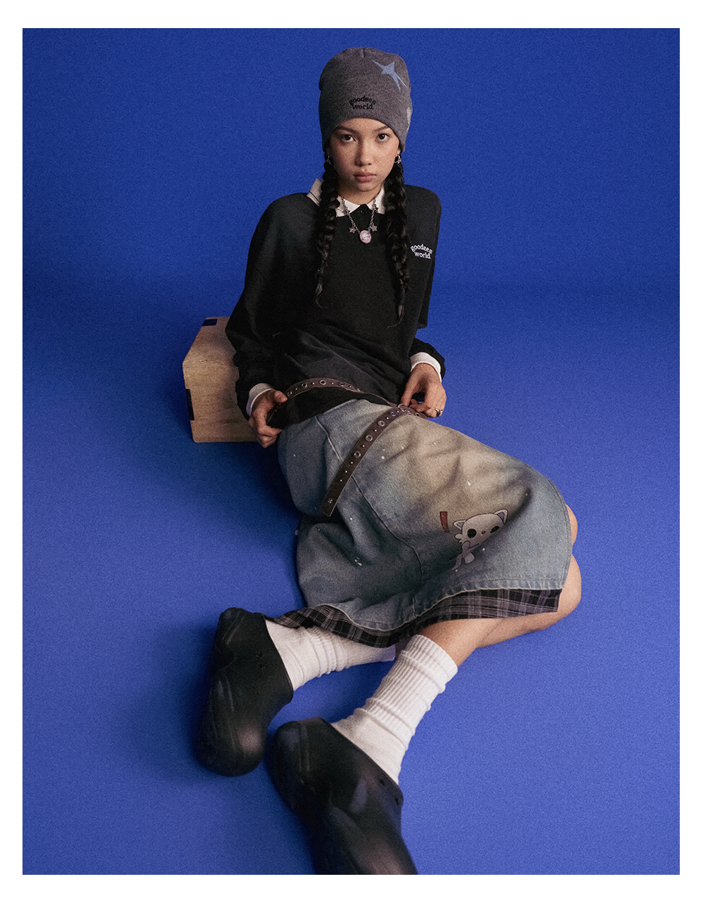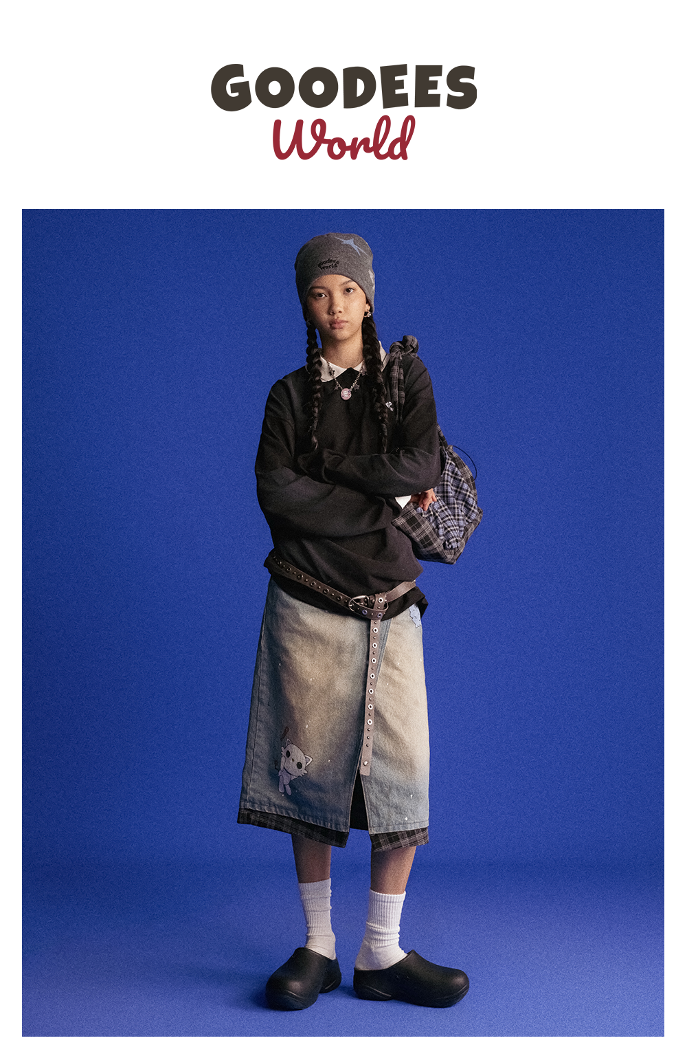 GOODBAI GOODEES 撞色拼接开衩不规则半裙