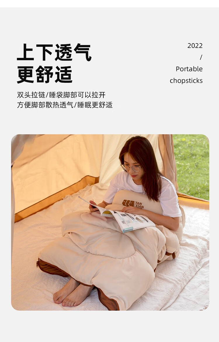 探险者睡袋 成人户外露营四季通用加厚保暖信封式2.3KG