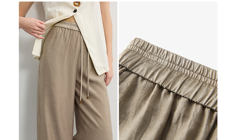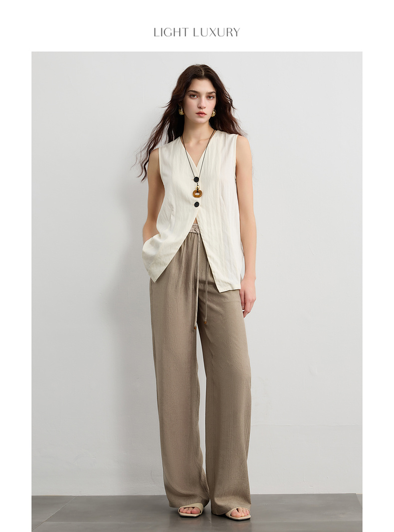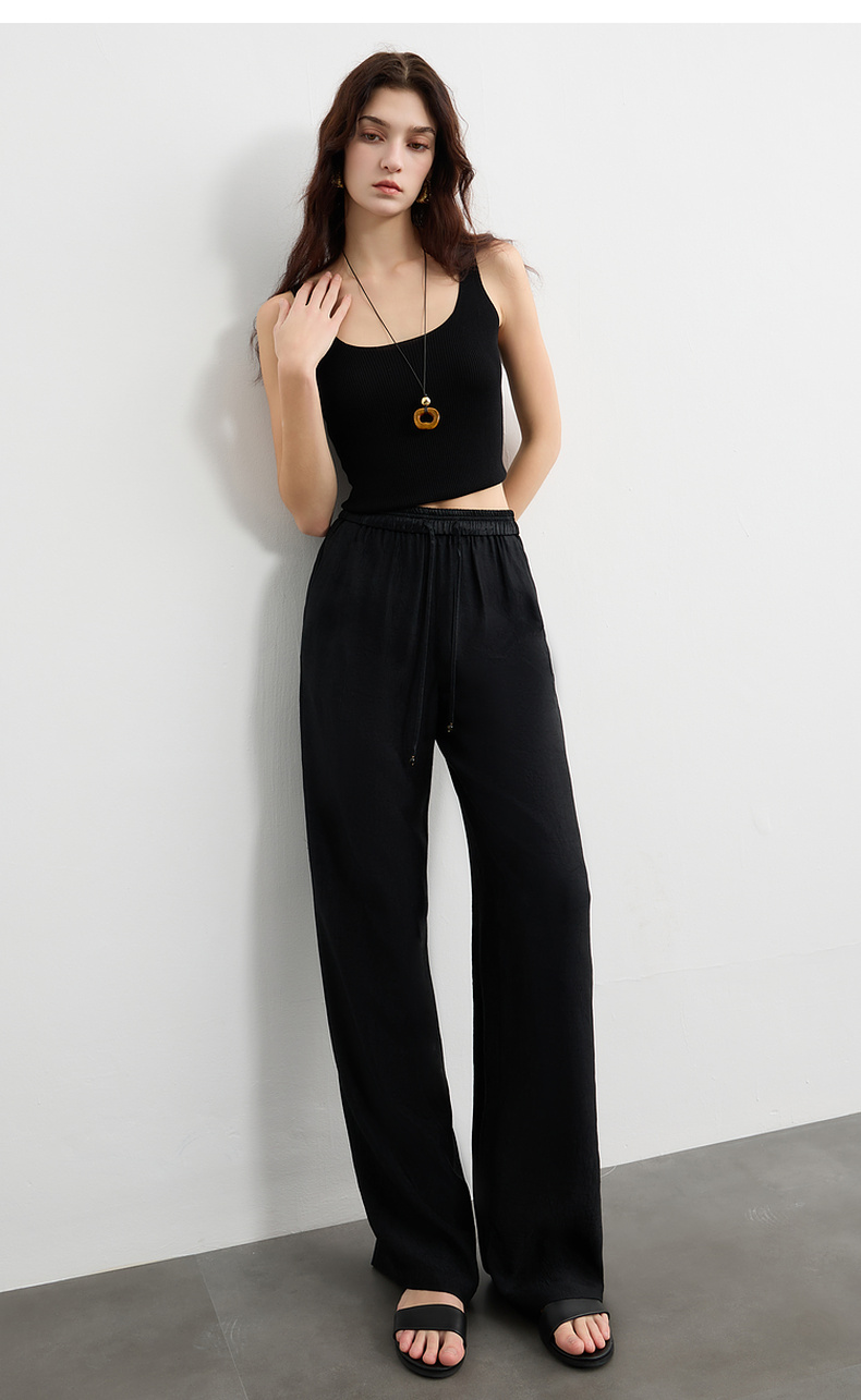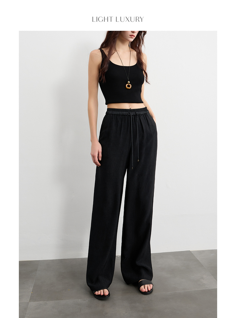 三彩2025春季新款轻奢醋酸禅意裤松紧高腰长裤宽松直筒裤显瘦S