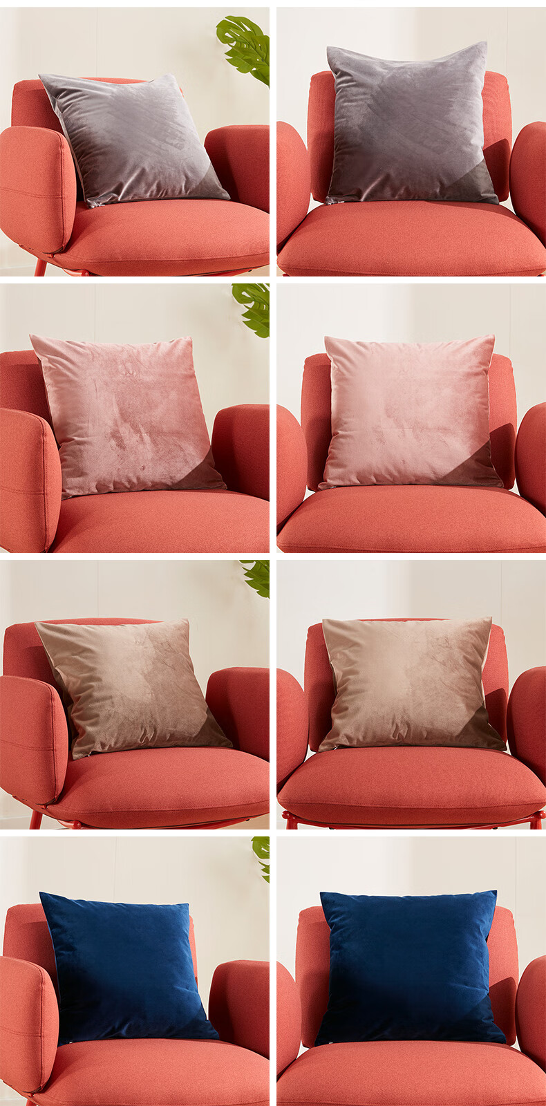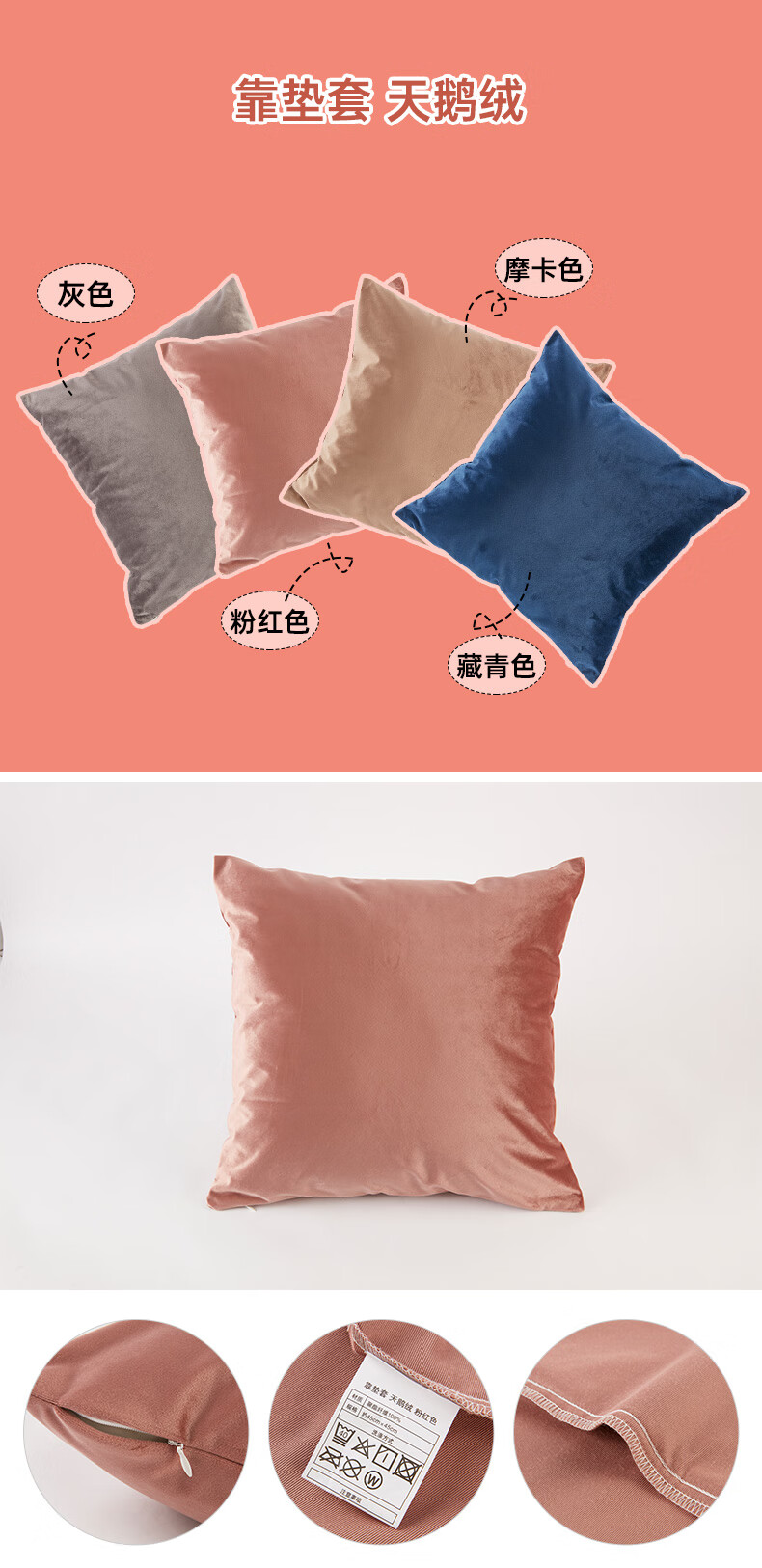 靠垫套 天鹅绒 灰色/粉红色/摩卡色/藏青色