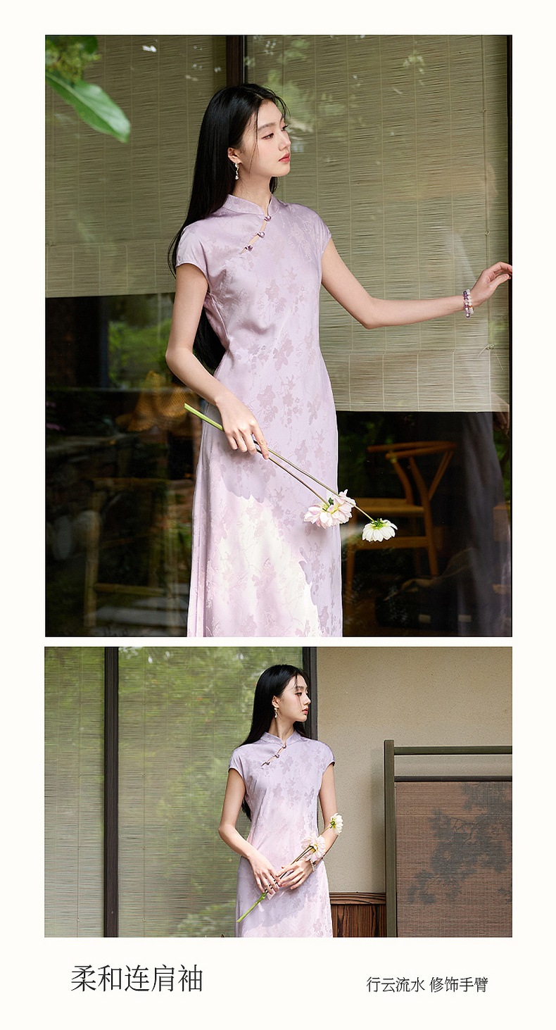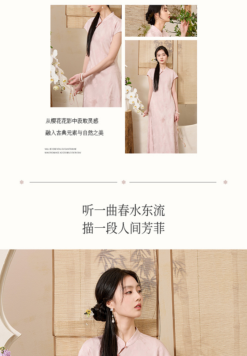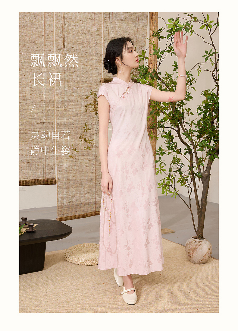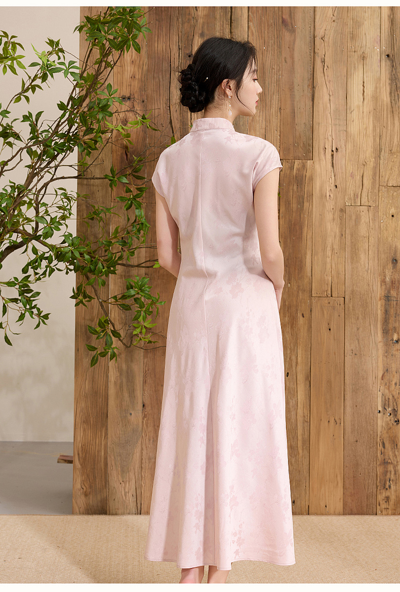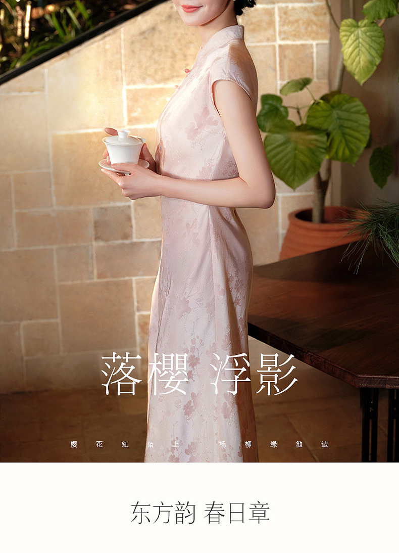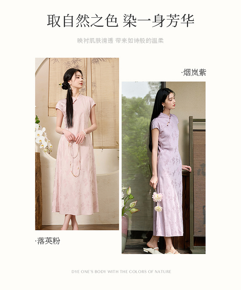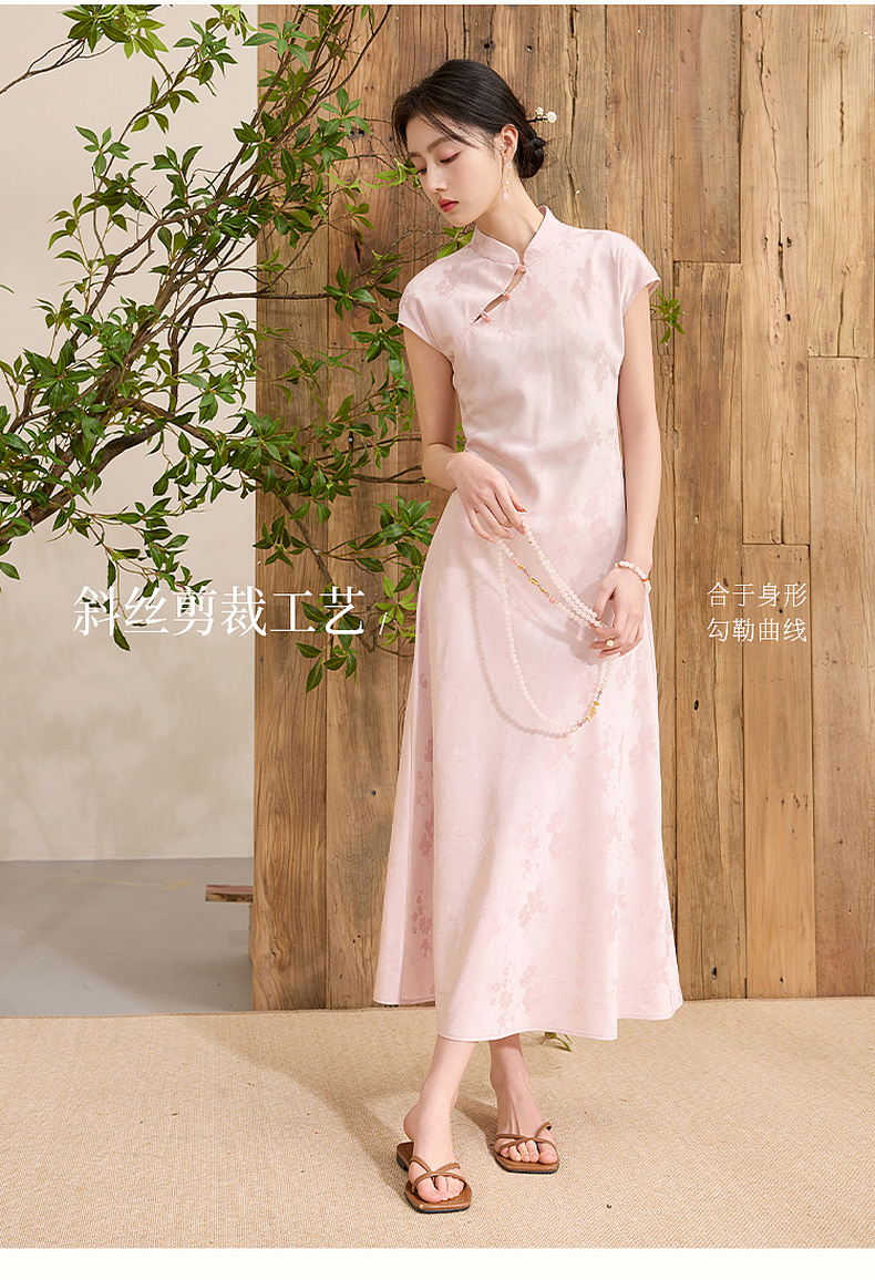 三彩【落樱浮影】2026春季新款新中式连衣裙提花A字裙长裙C